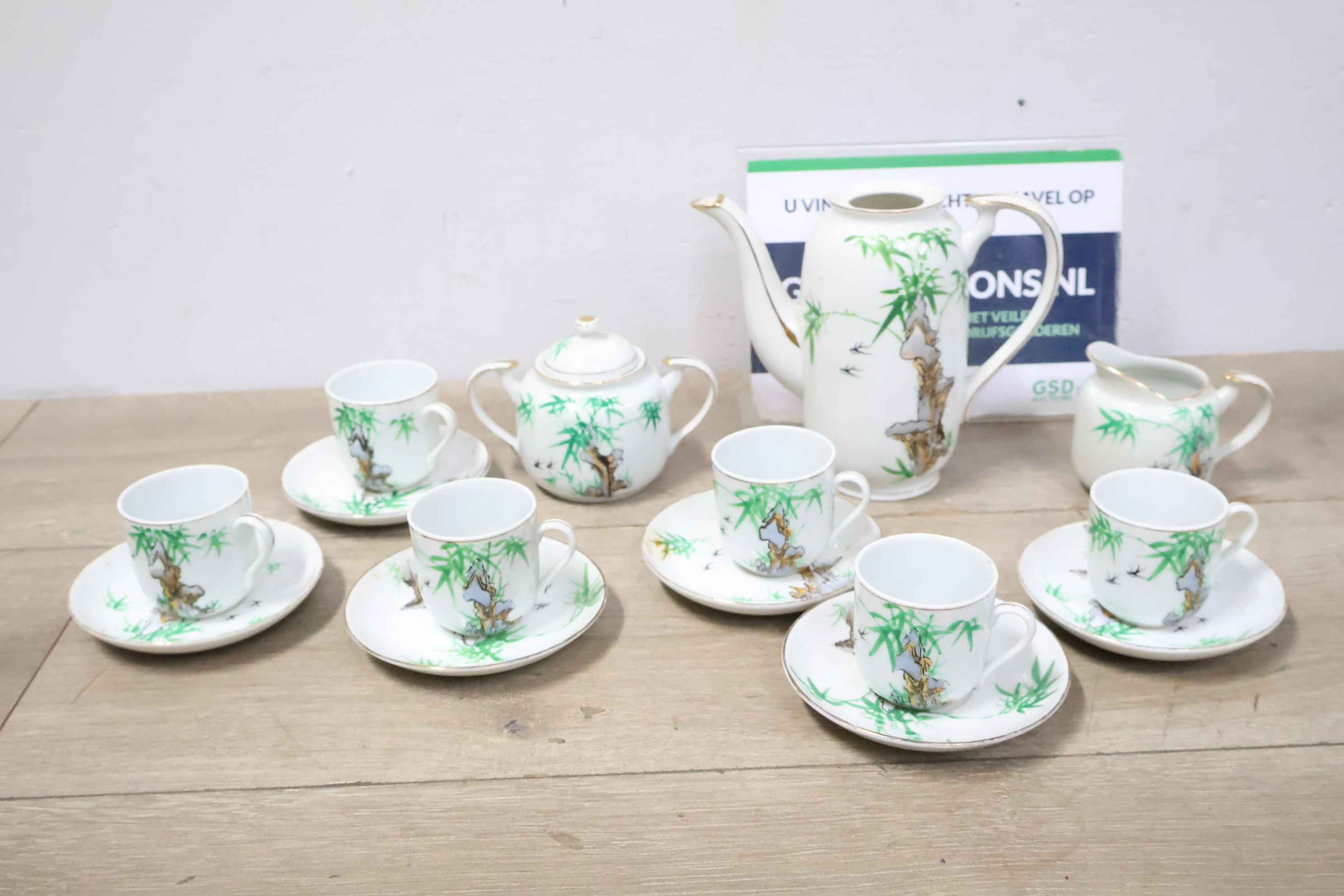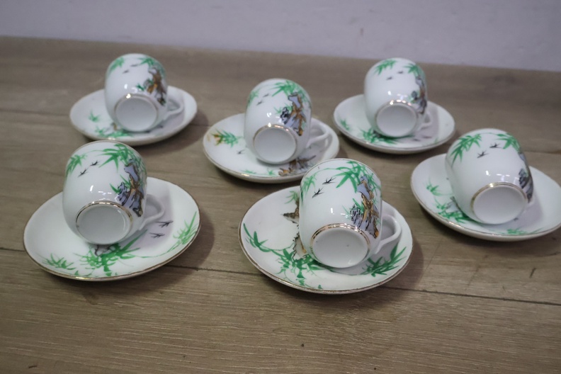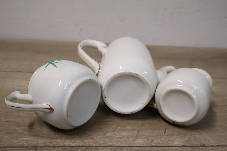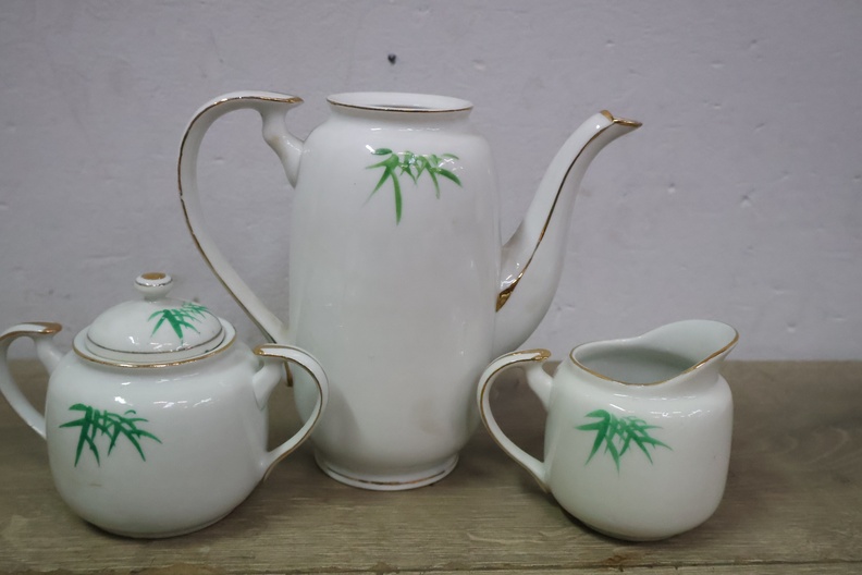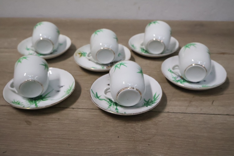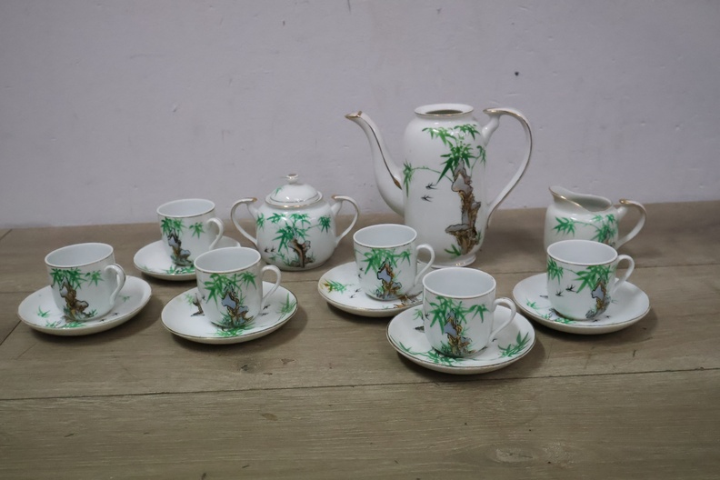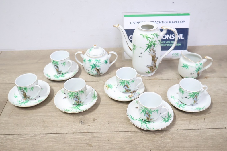 Vintage Servies met Theekan, kopjes en schotels''