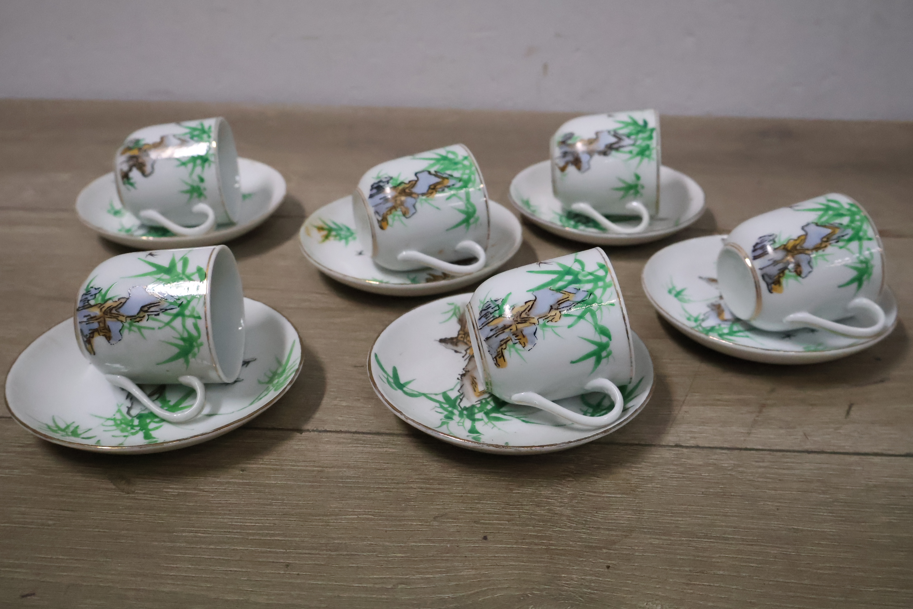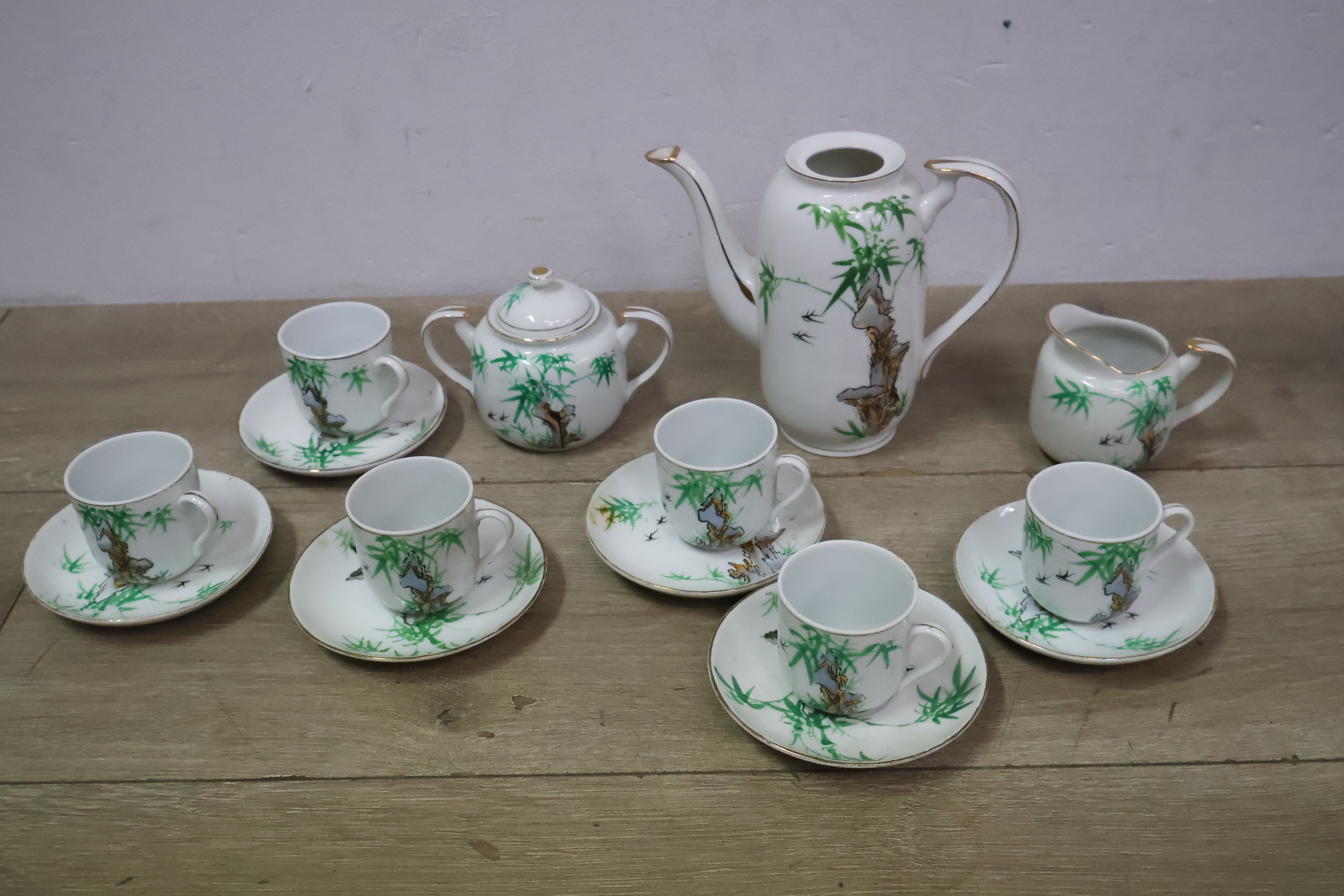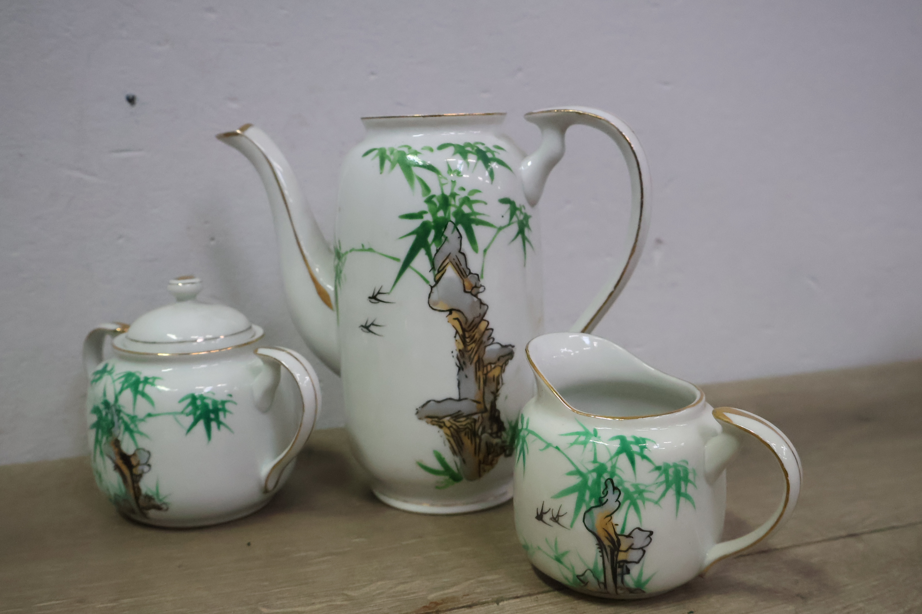 Vintage Servies met Theekan, kopjes en schotels''