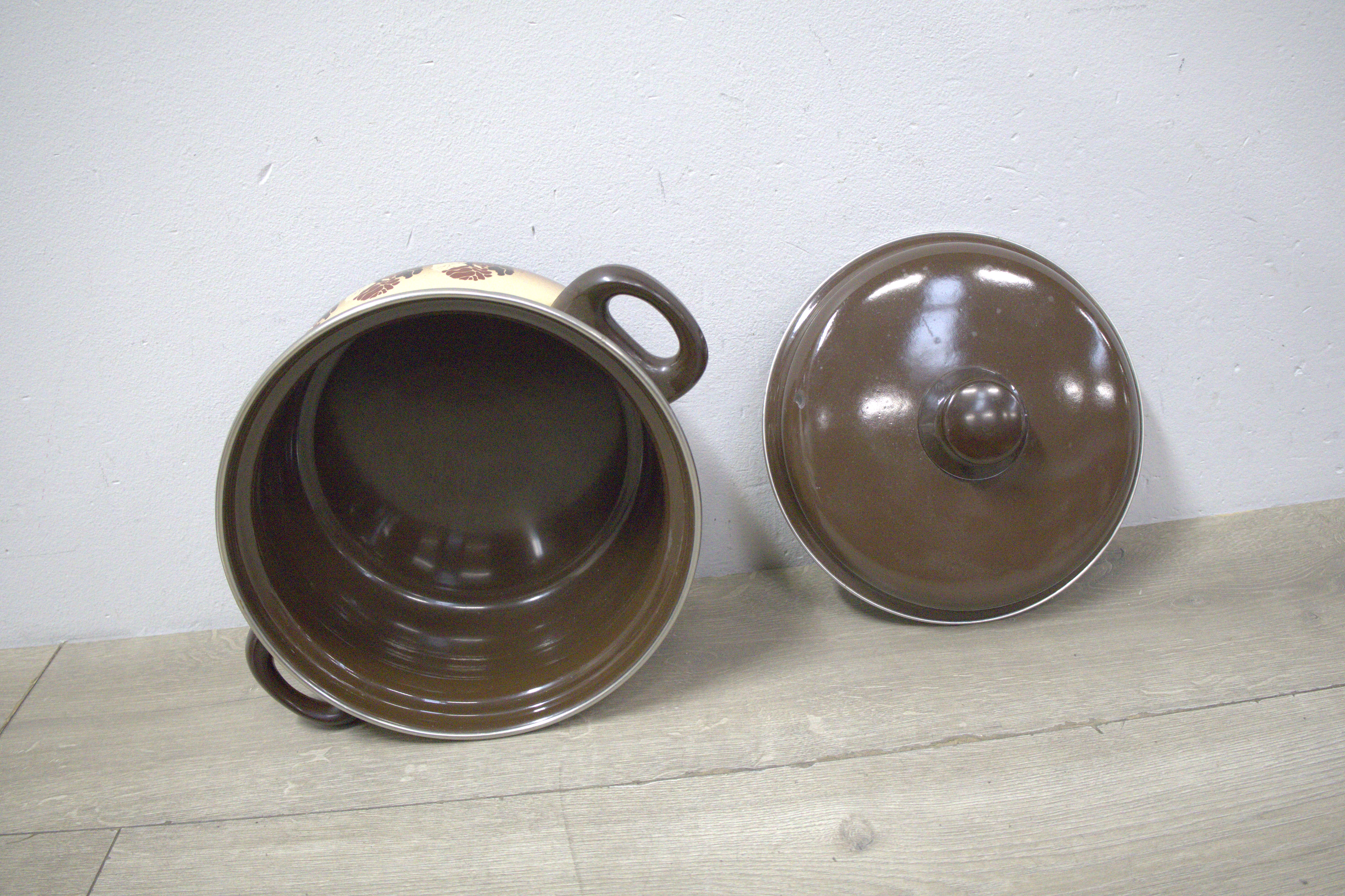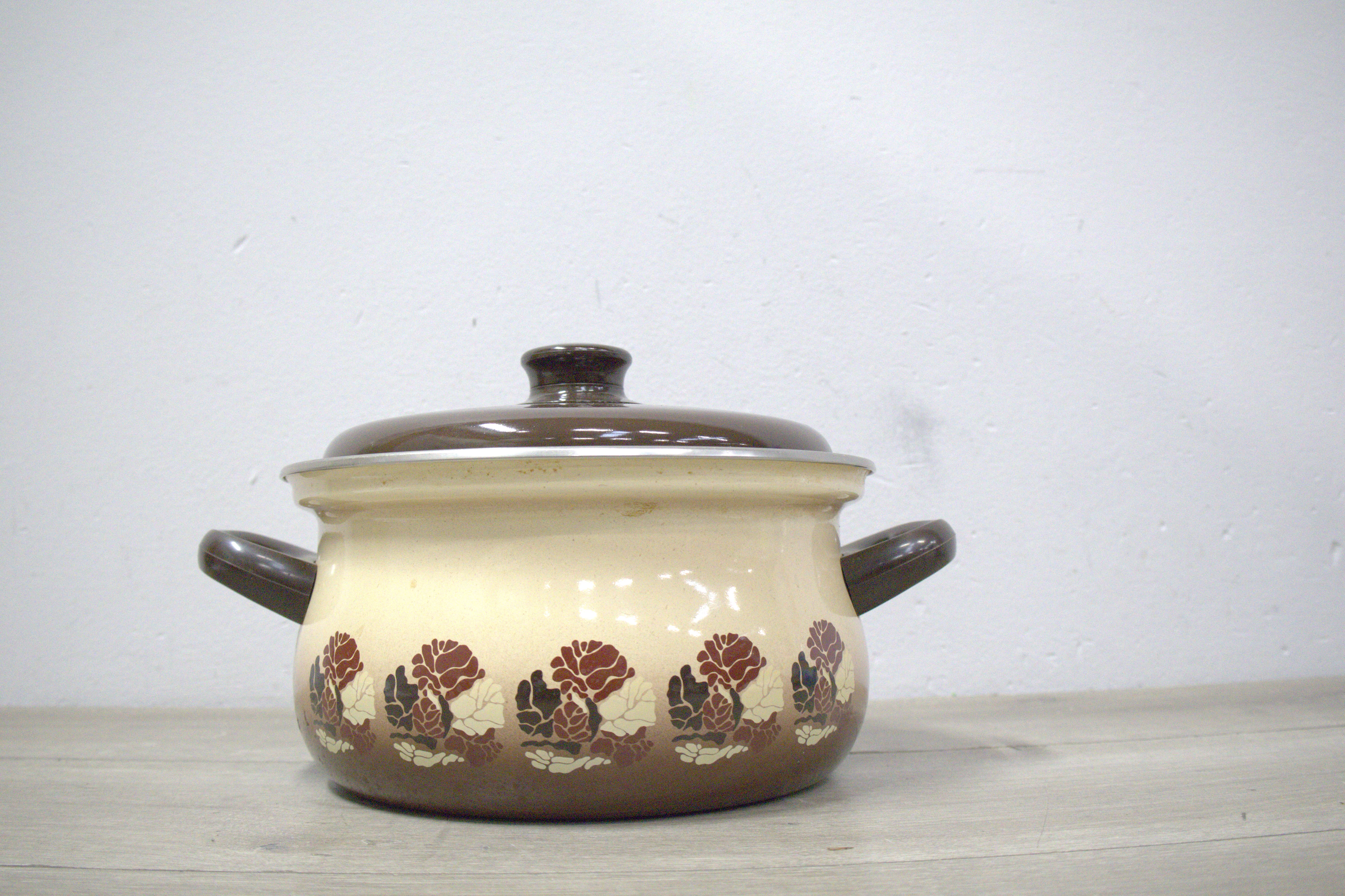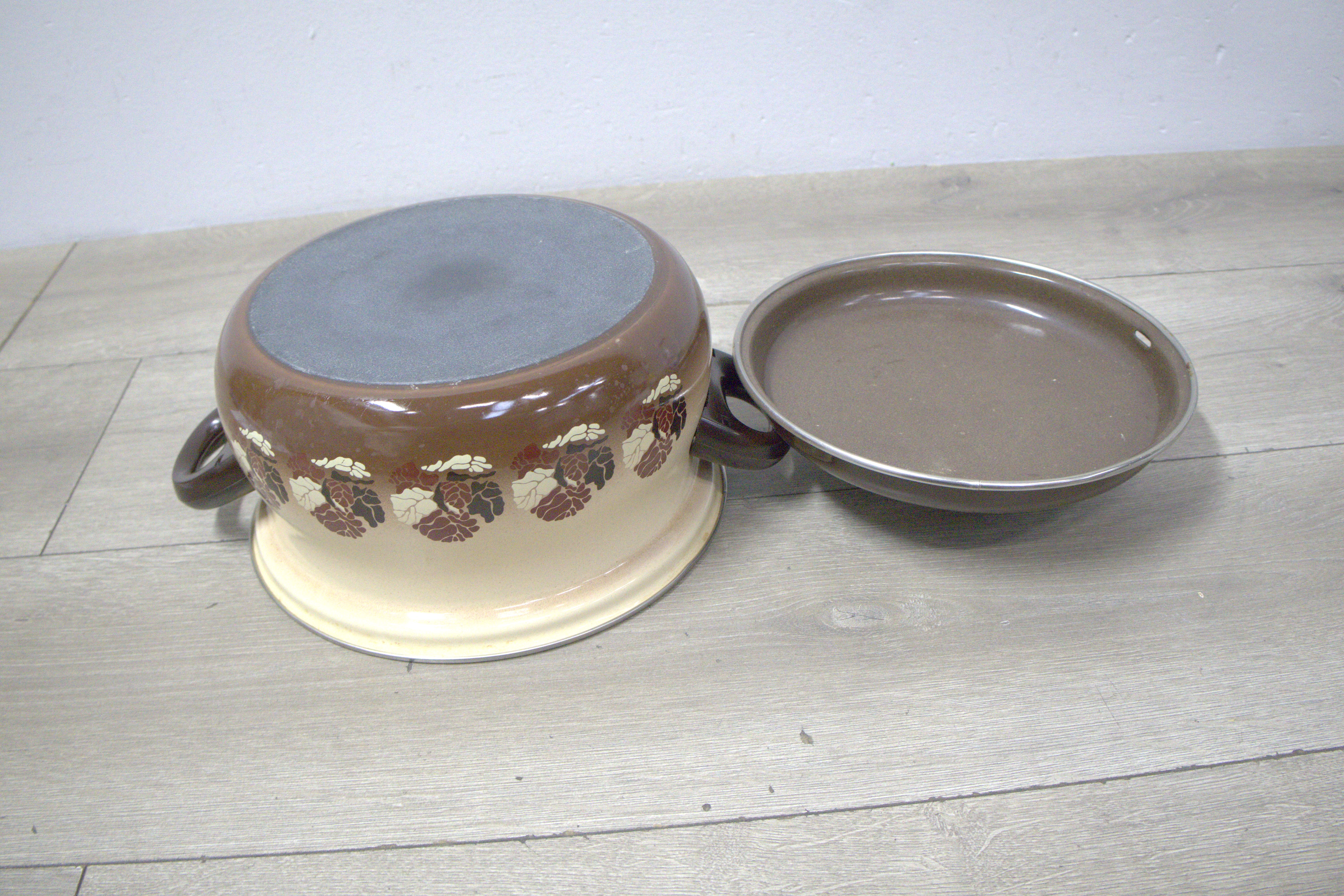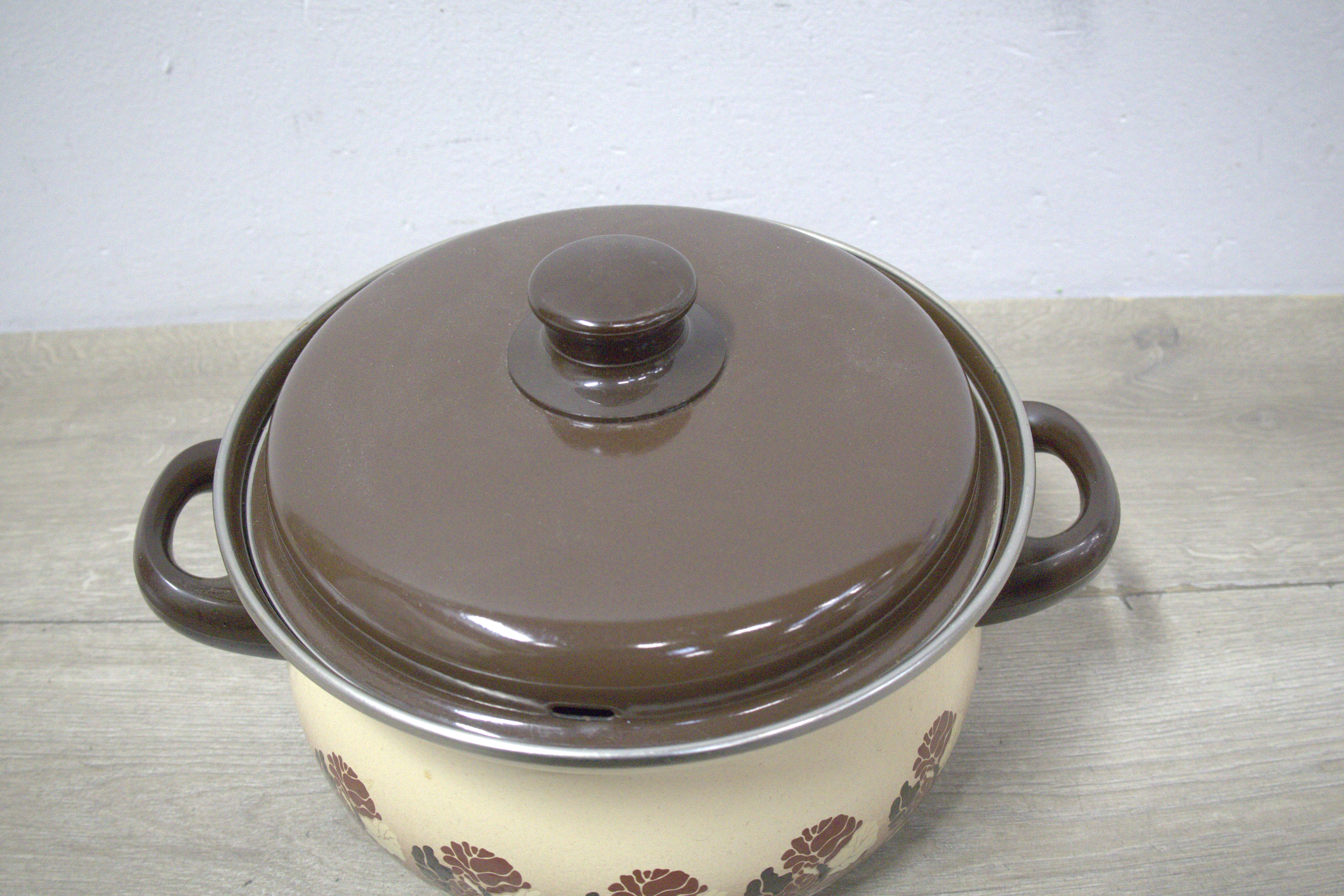 Bruin/Wit Emaillen Pan''
