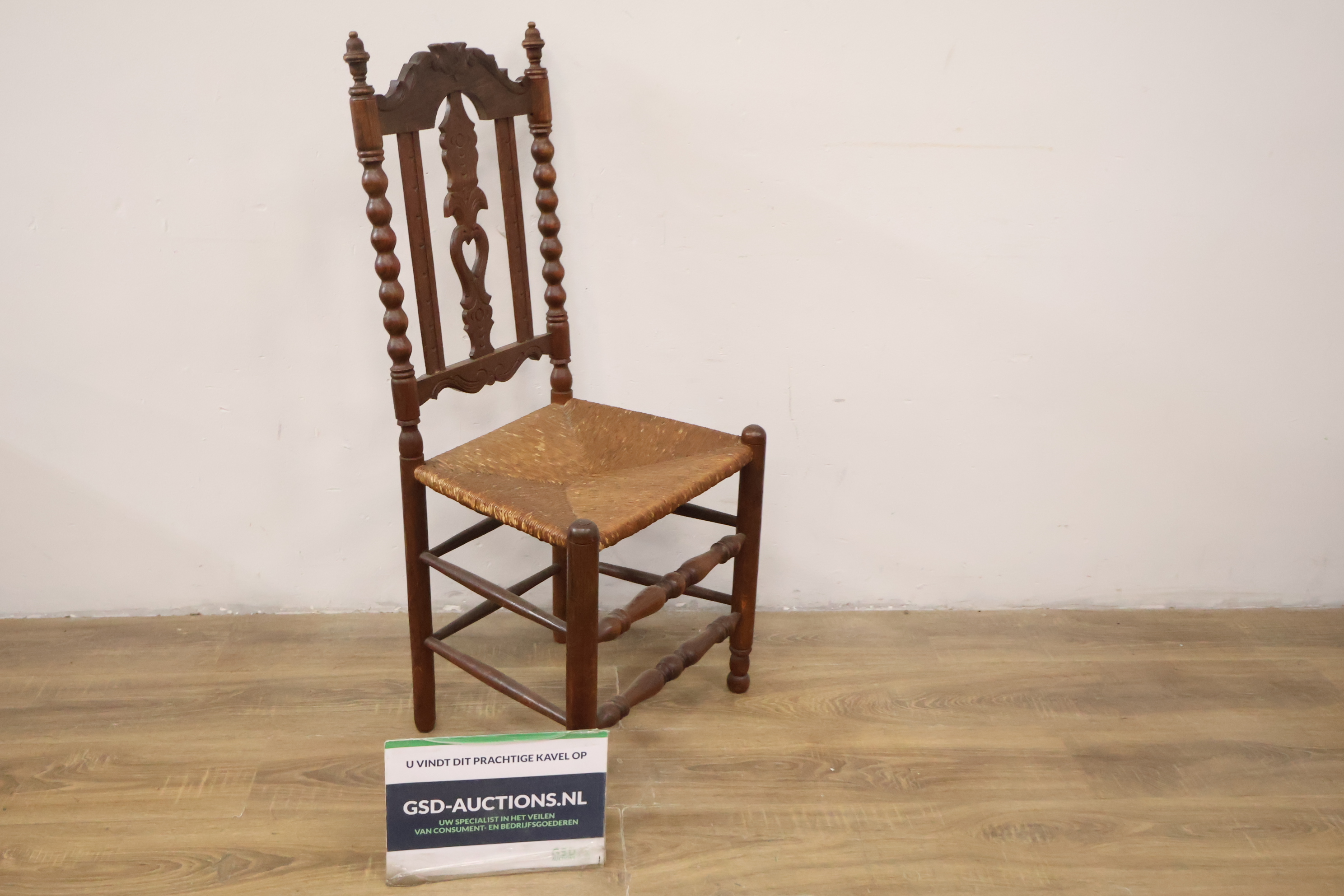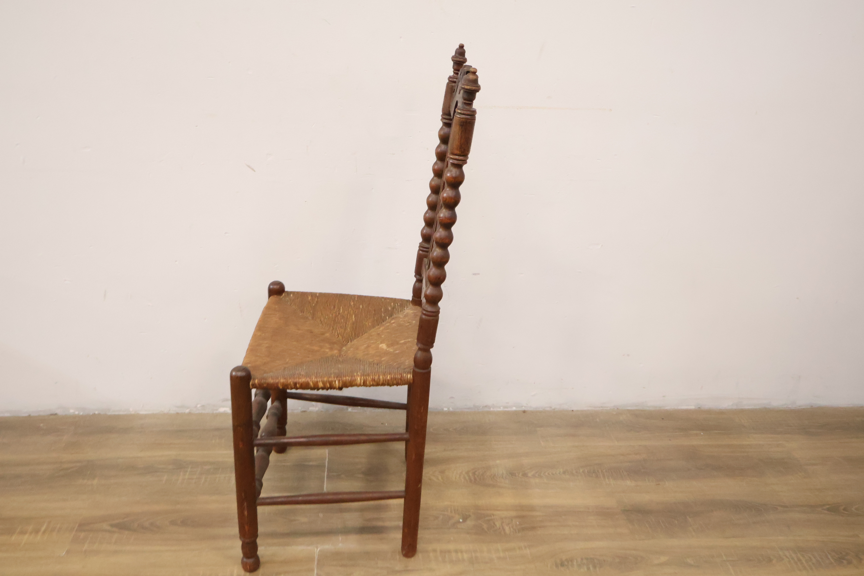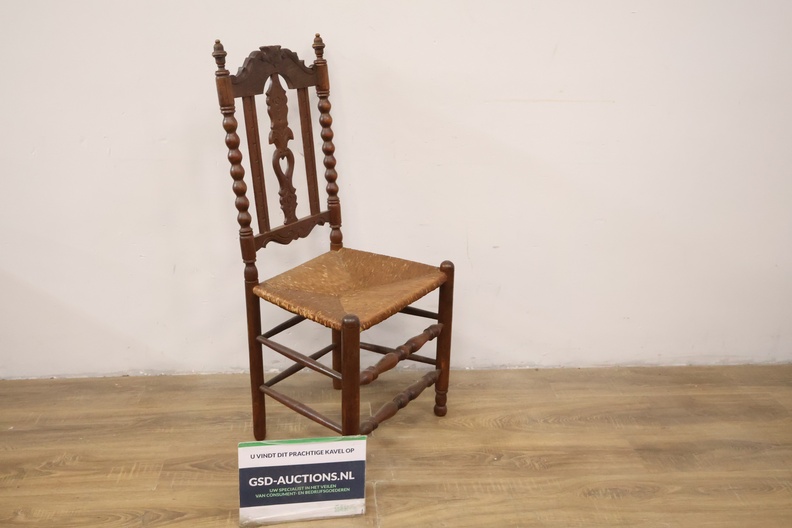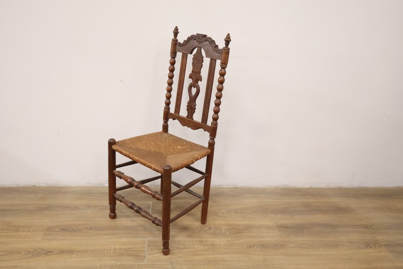 Antiek Houten Eetkamerstoel met Rieten Zitting''
