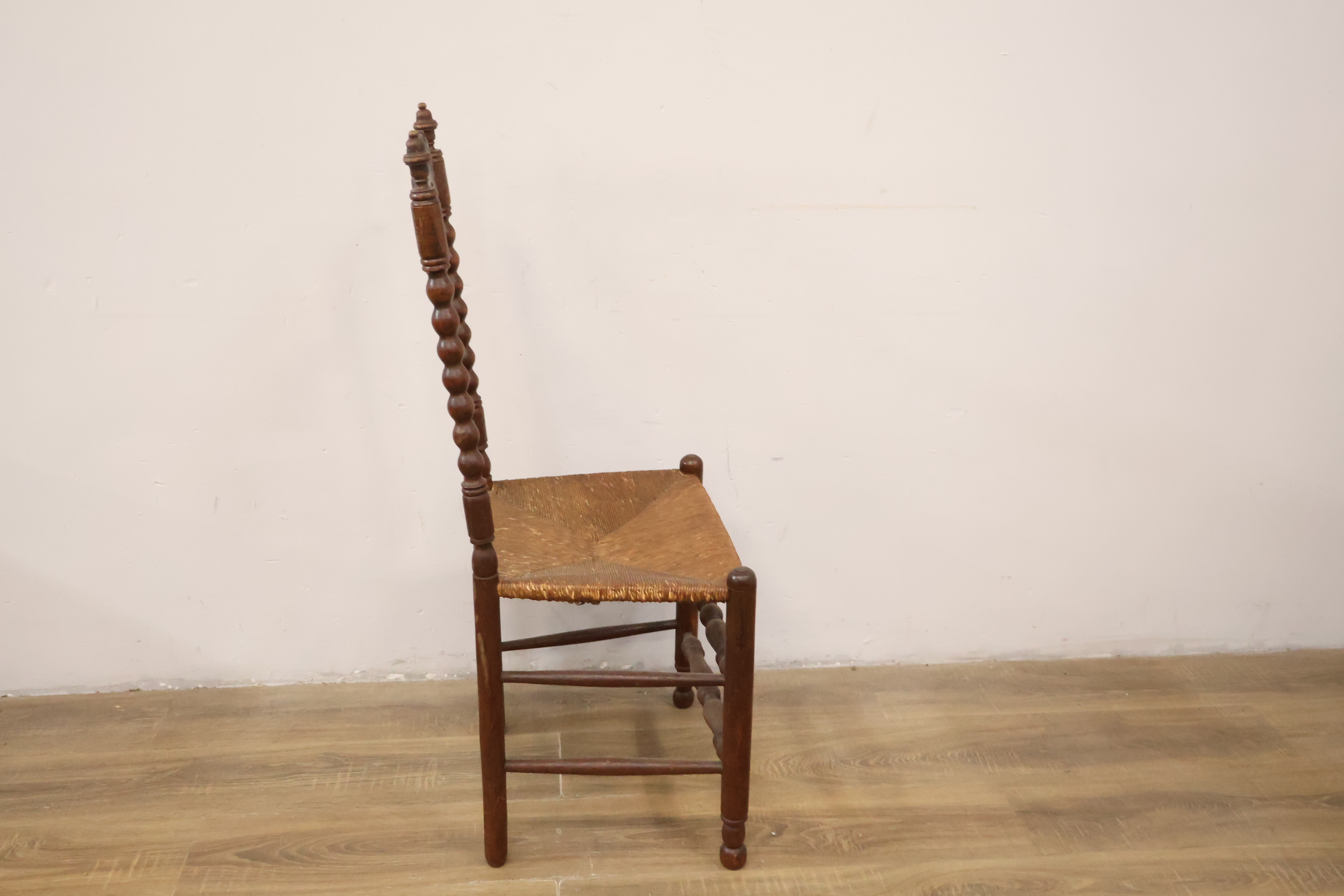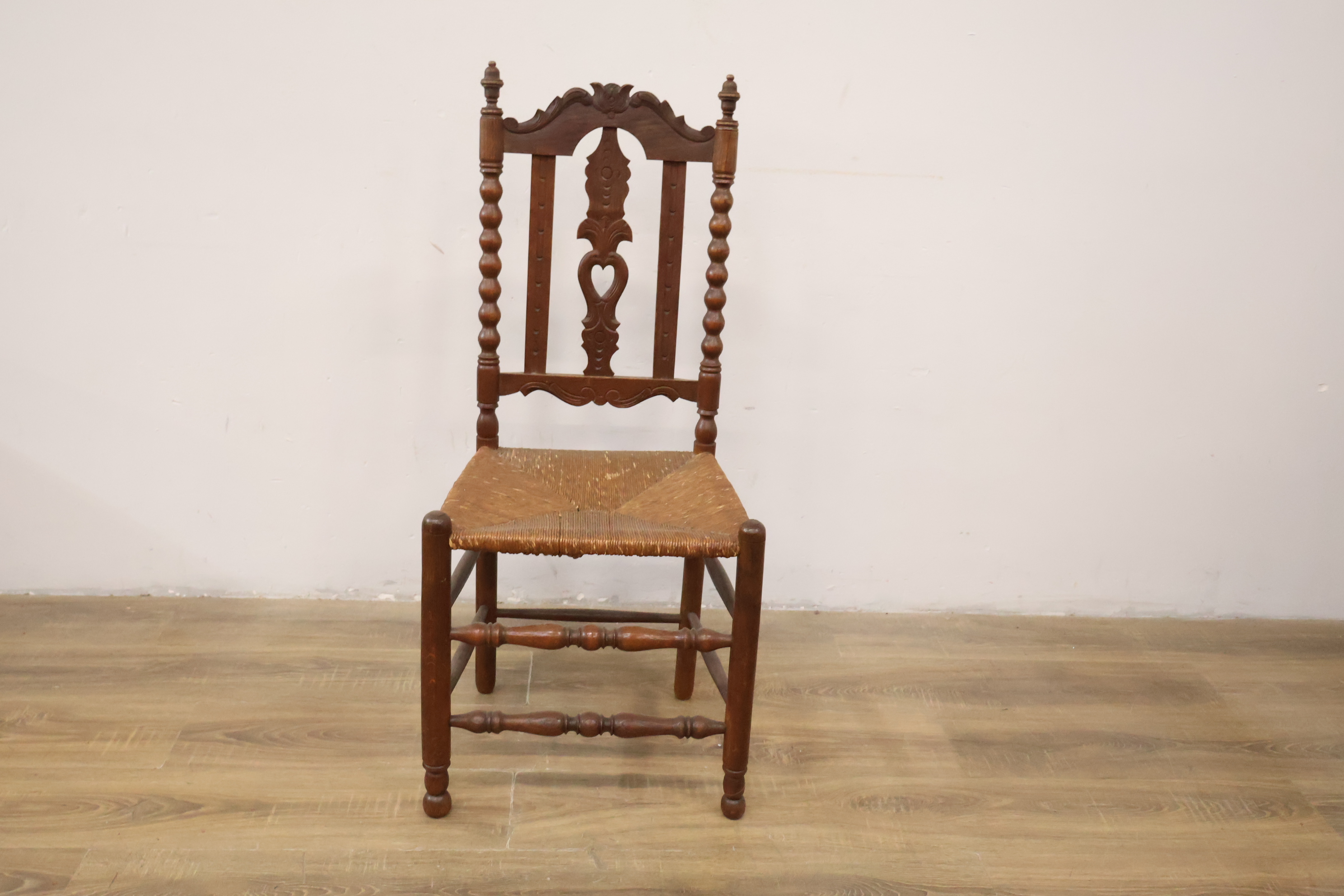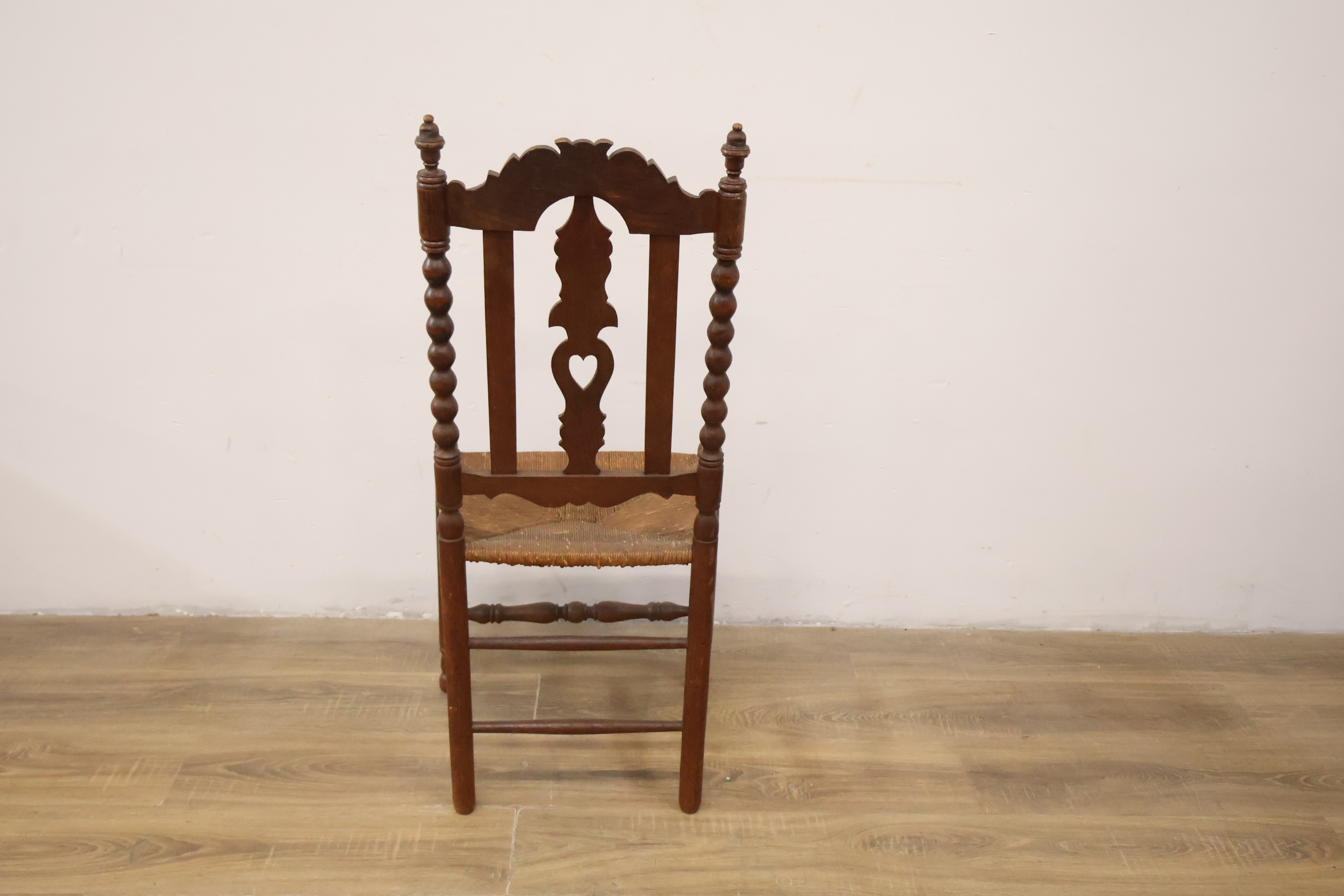 Antiek Houten Eetkamerstoel met Rieten Zitting''