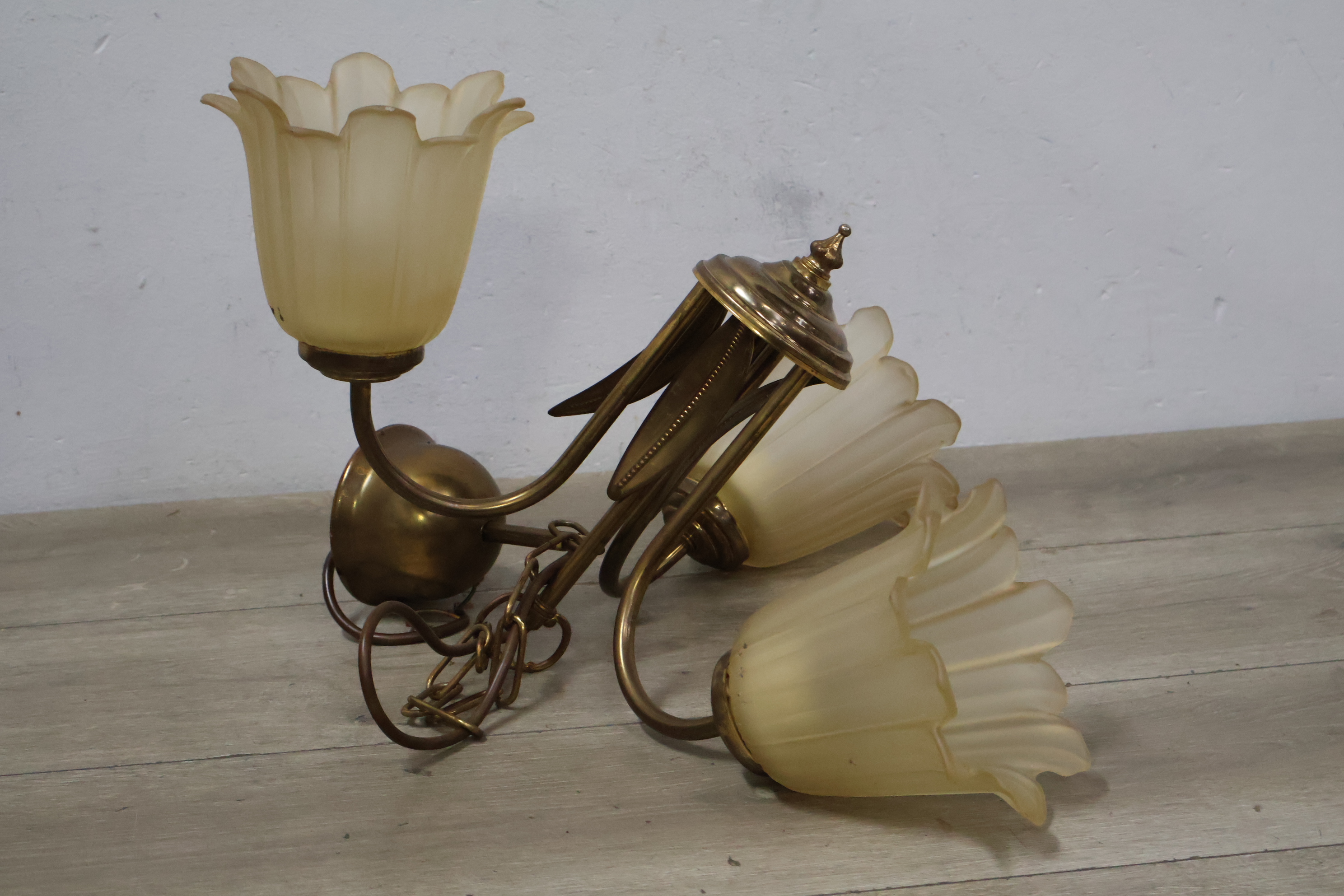 Vintage 3-Koppige Messing Hanglamp''