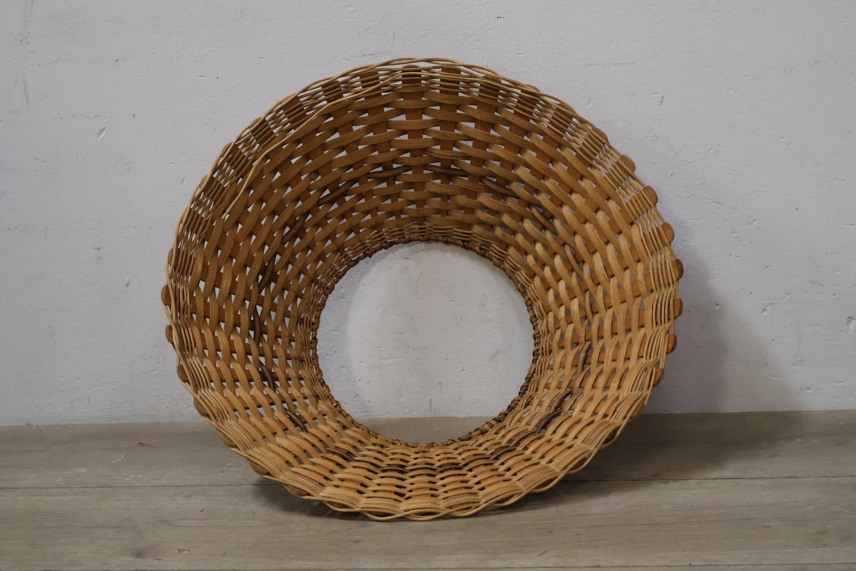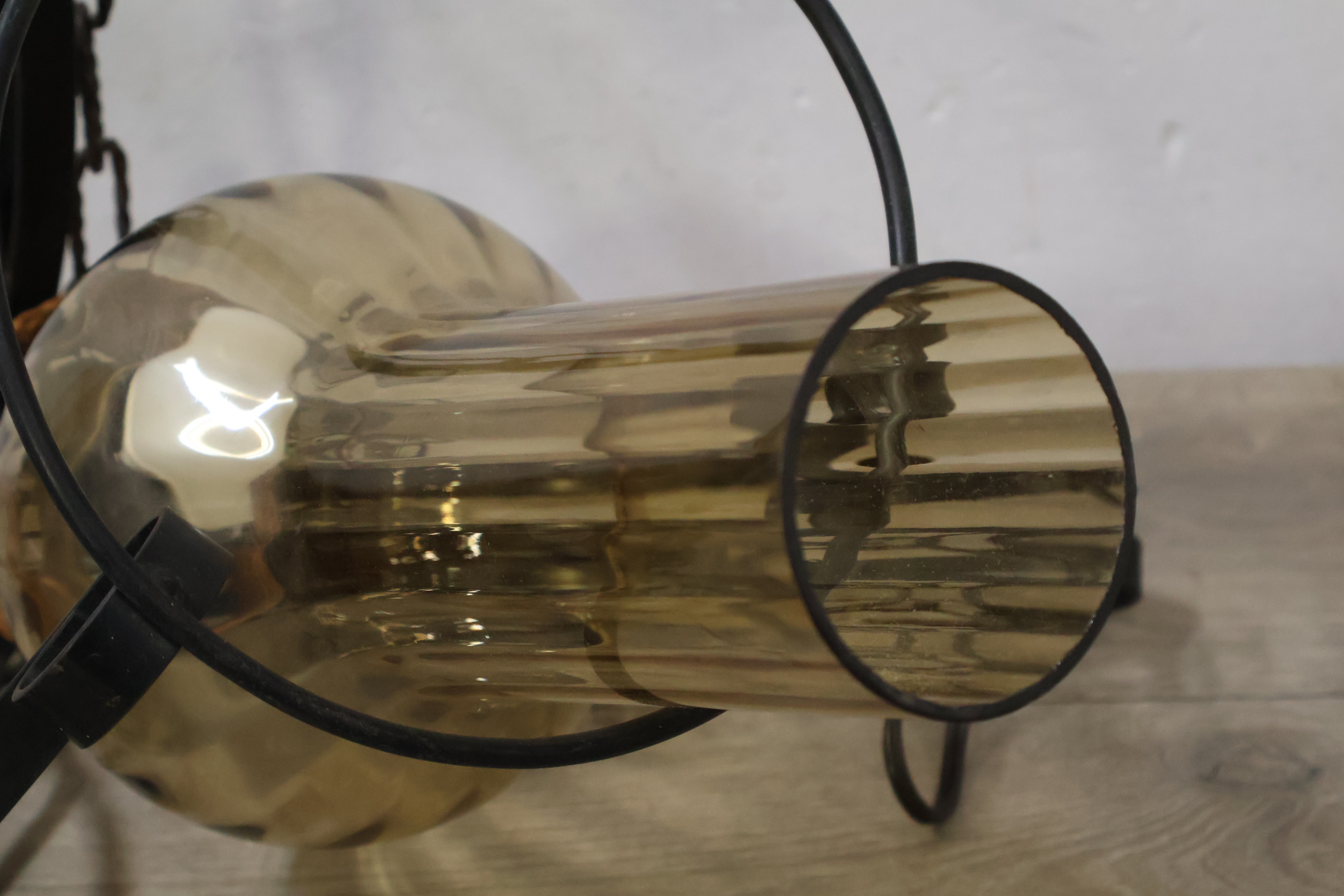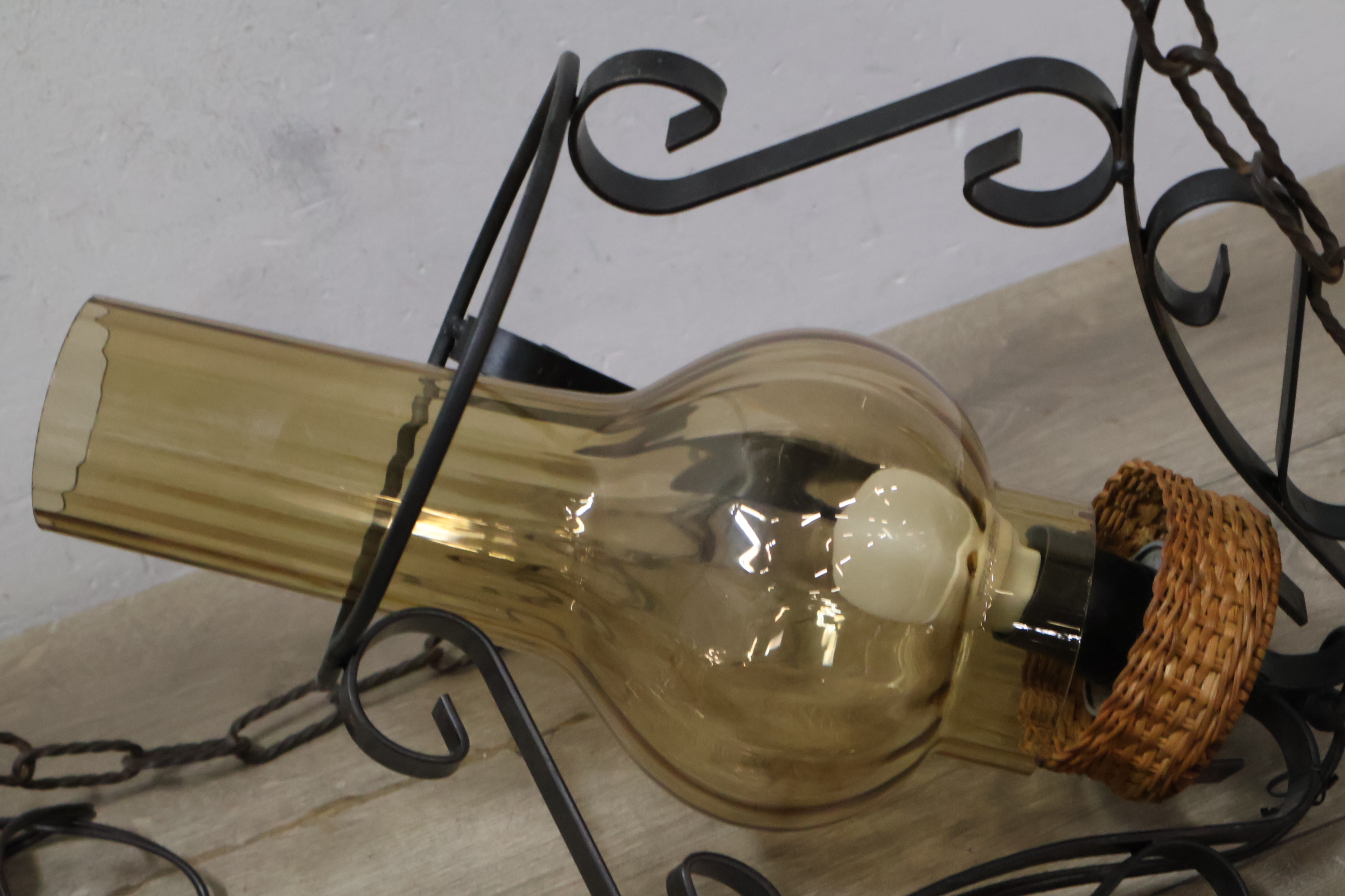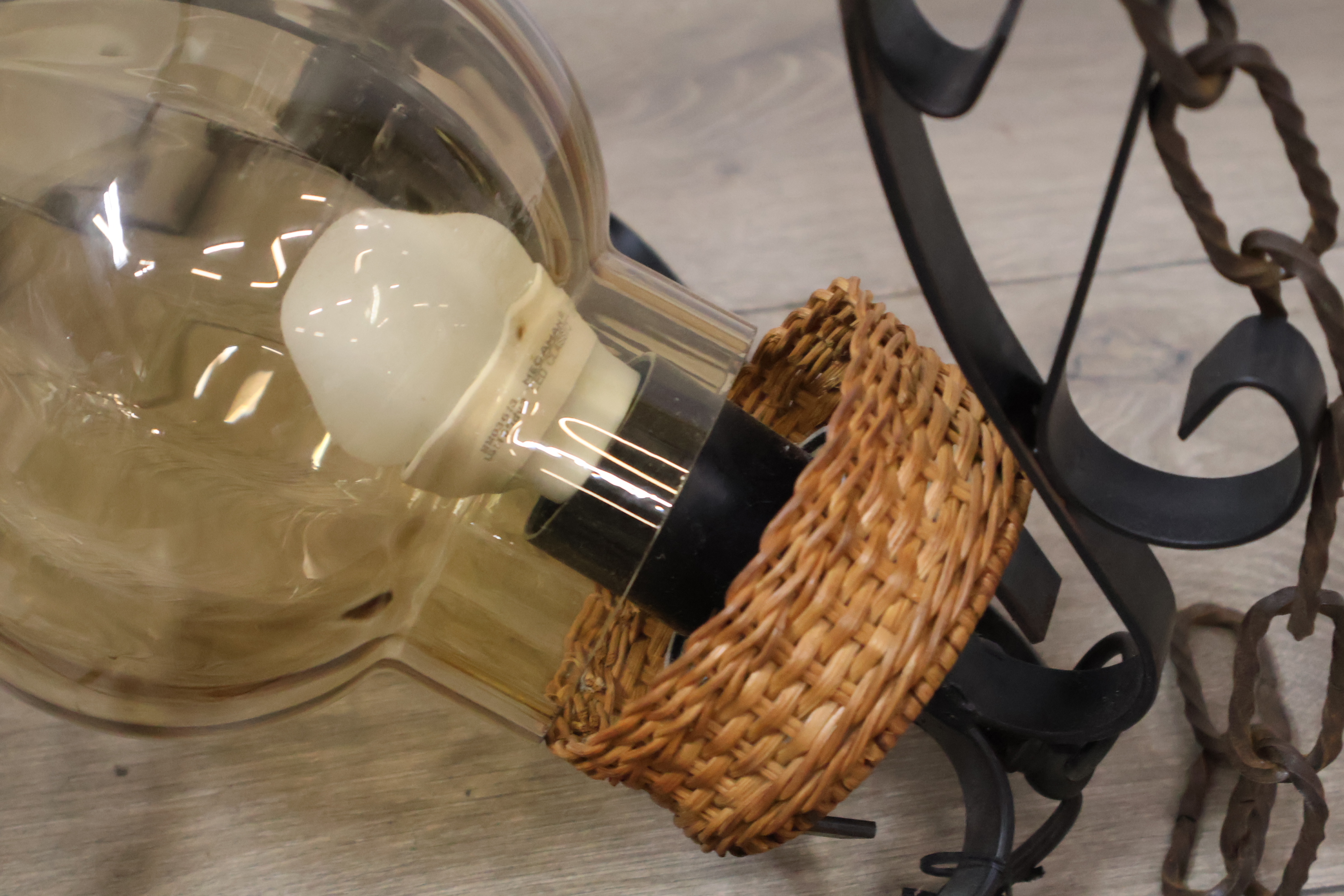 Vintage Smeedijzeren Hanglamp met Rotan Kap''