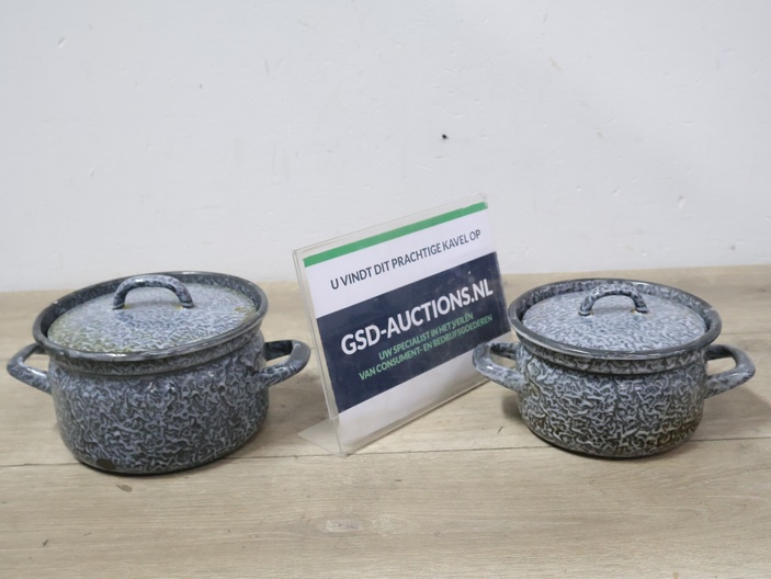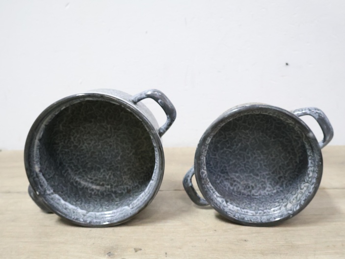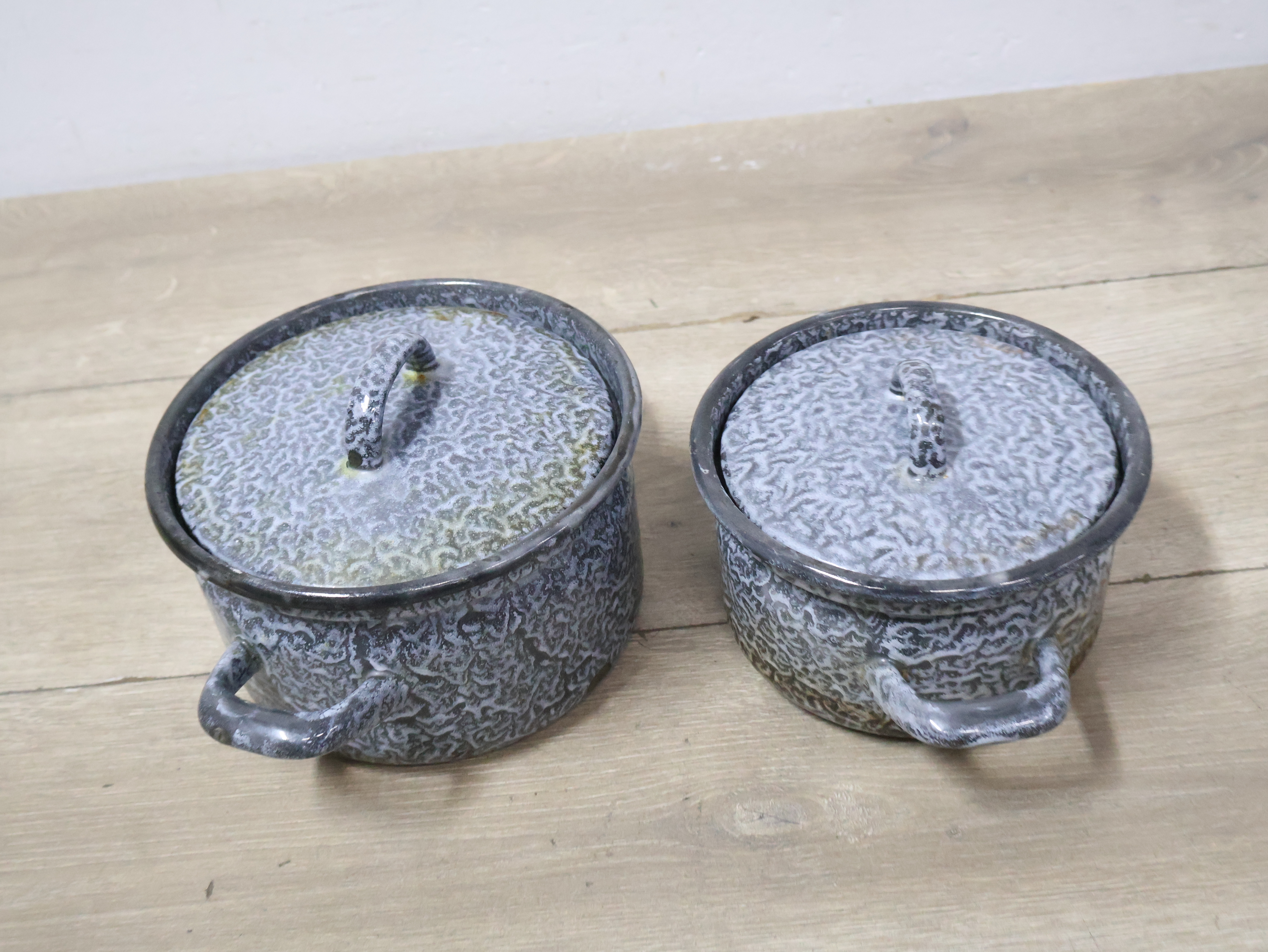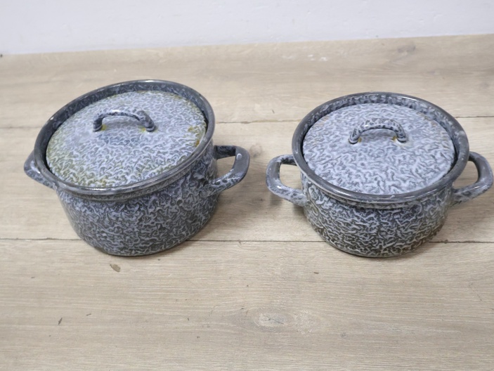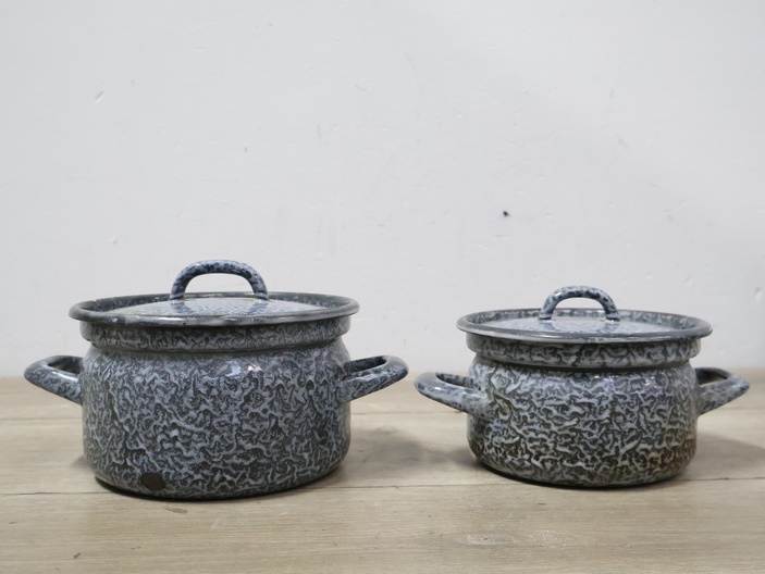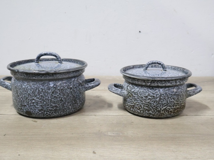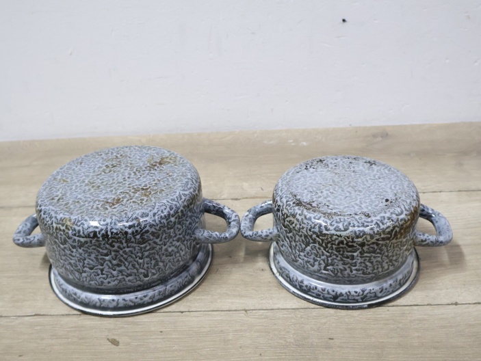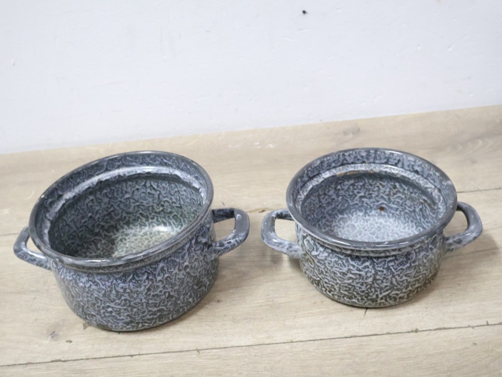 2 Emaille Gewolkte Pannen''