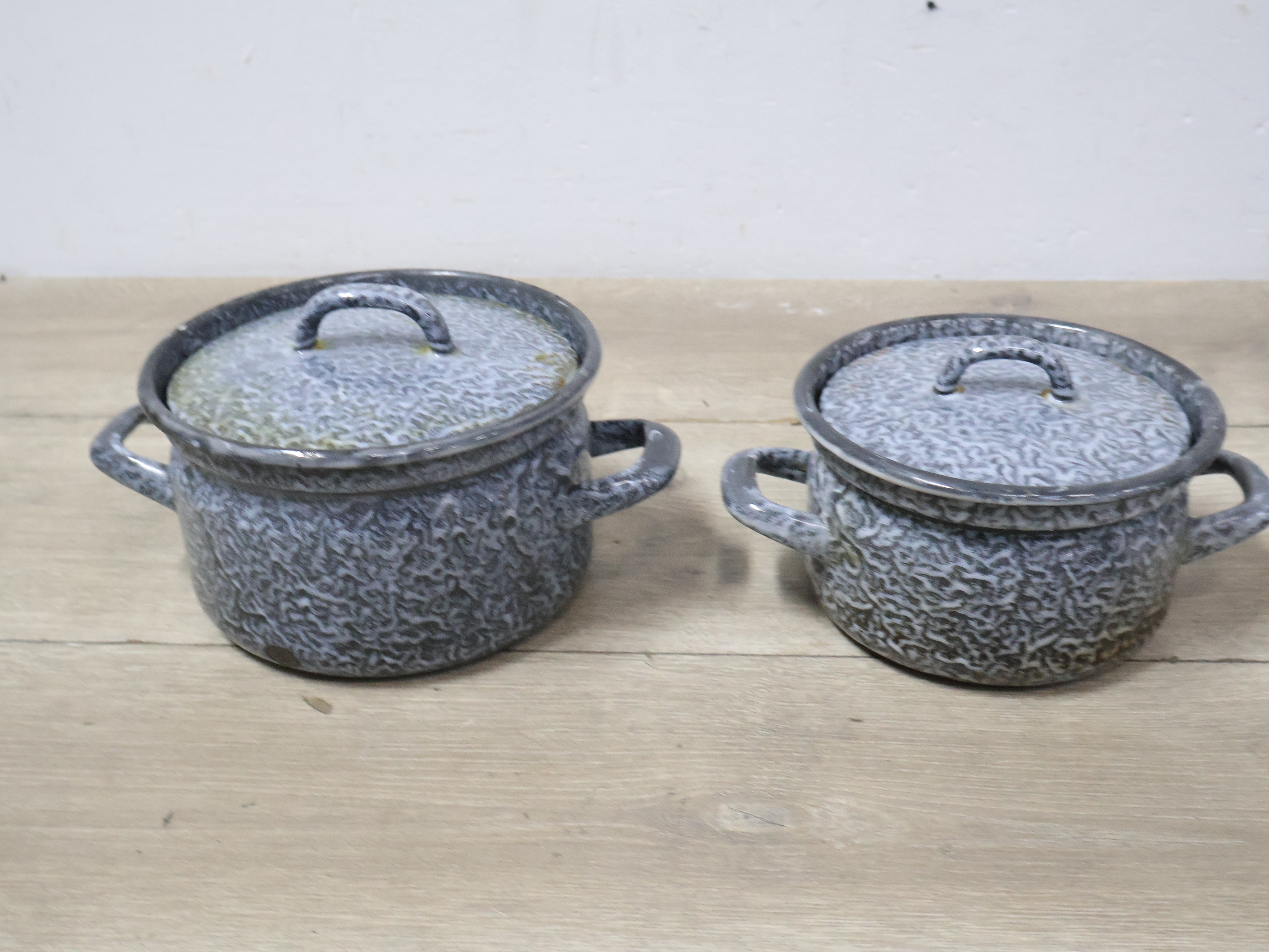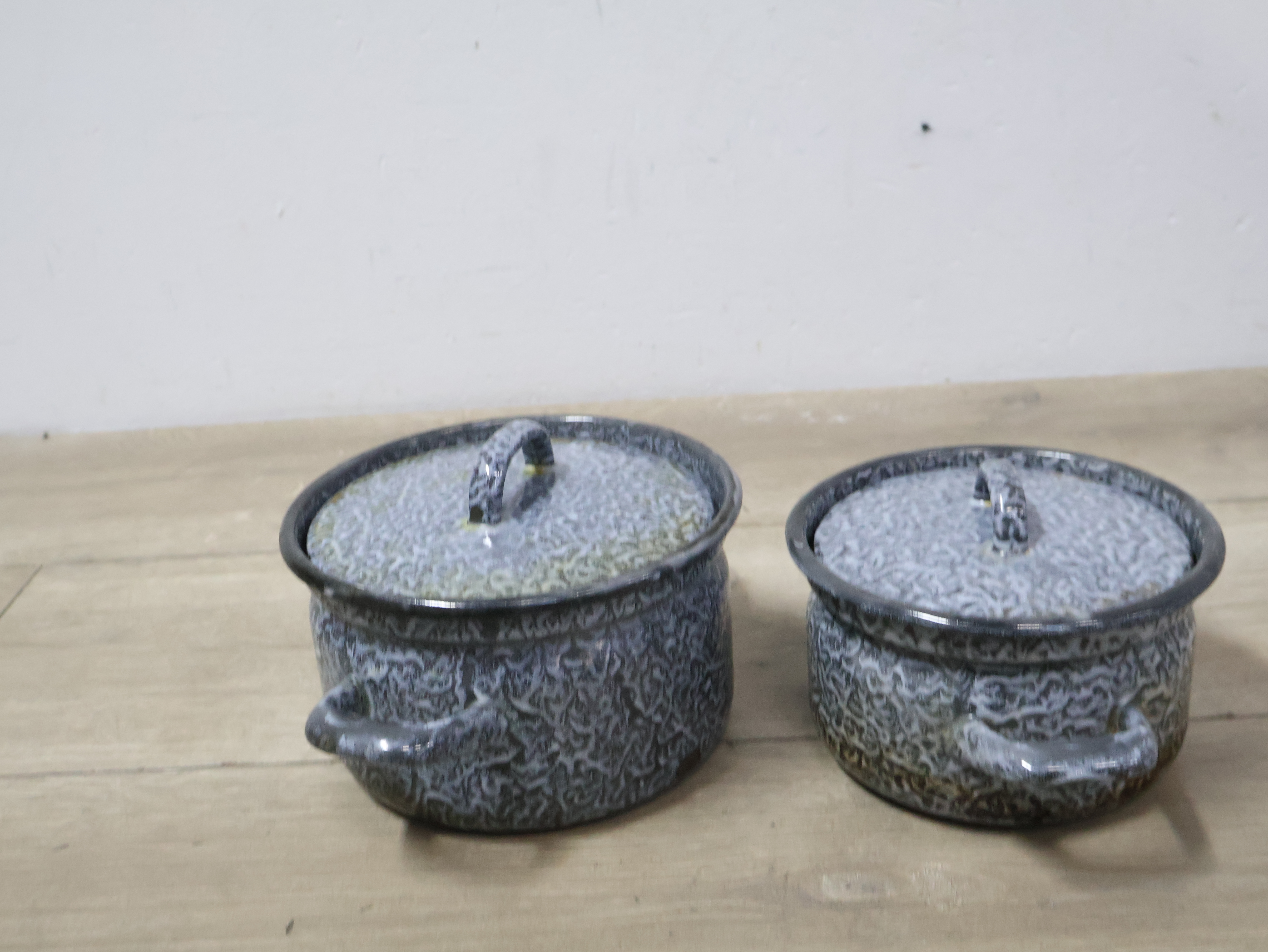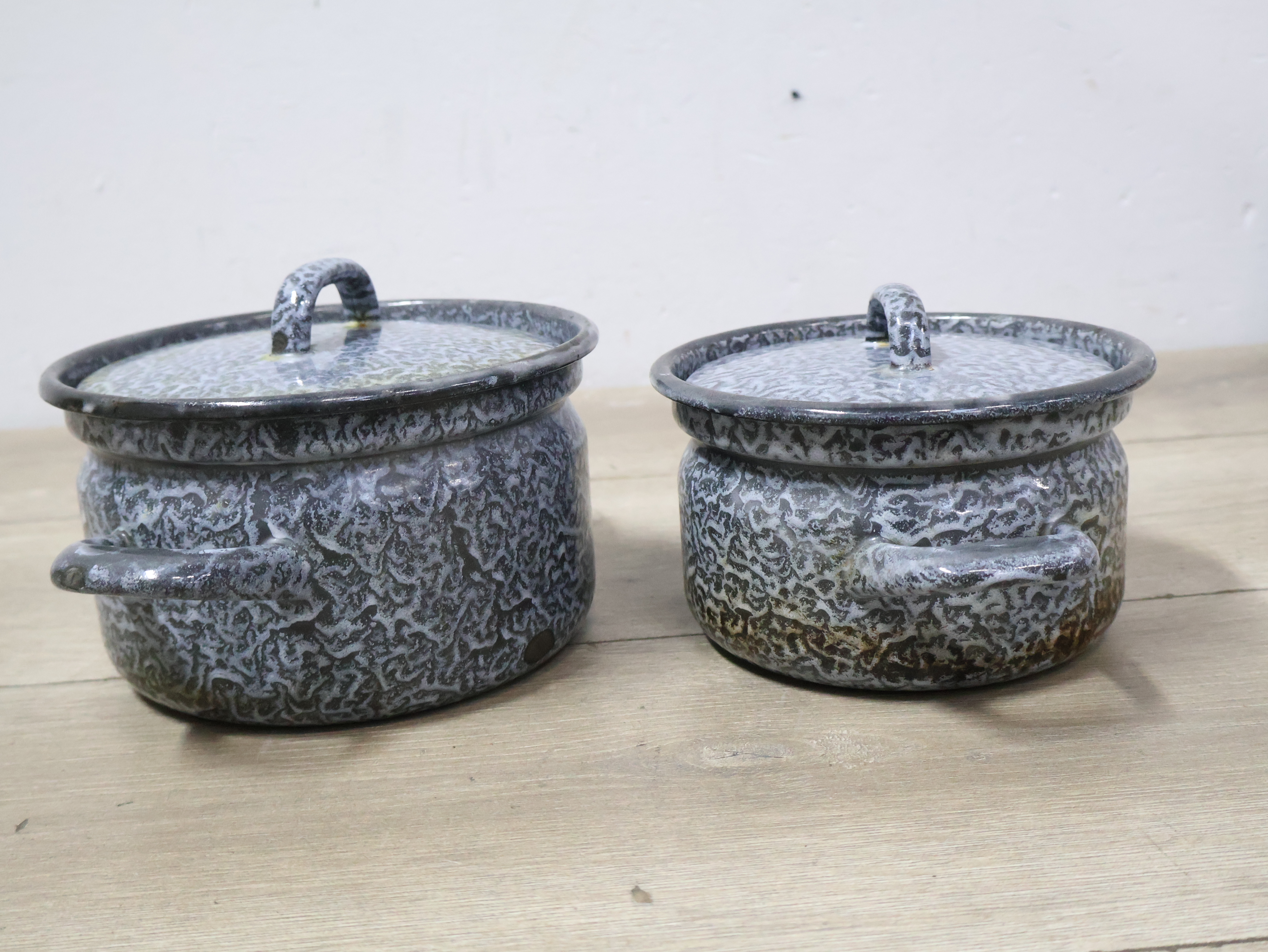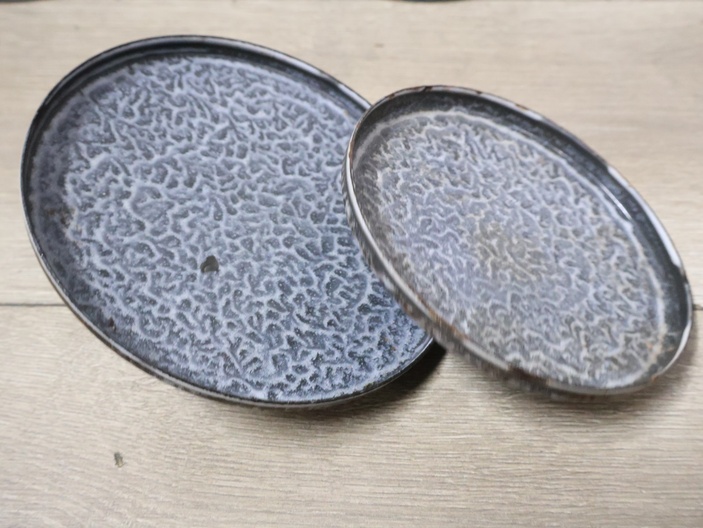 2 Emaille Gewolkte Pannen''
