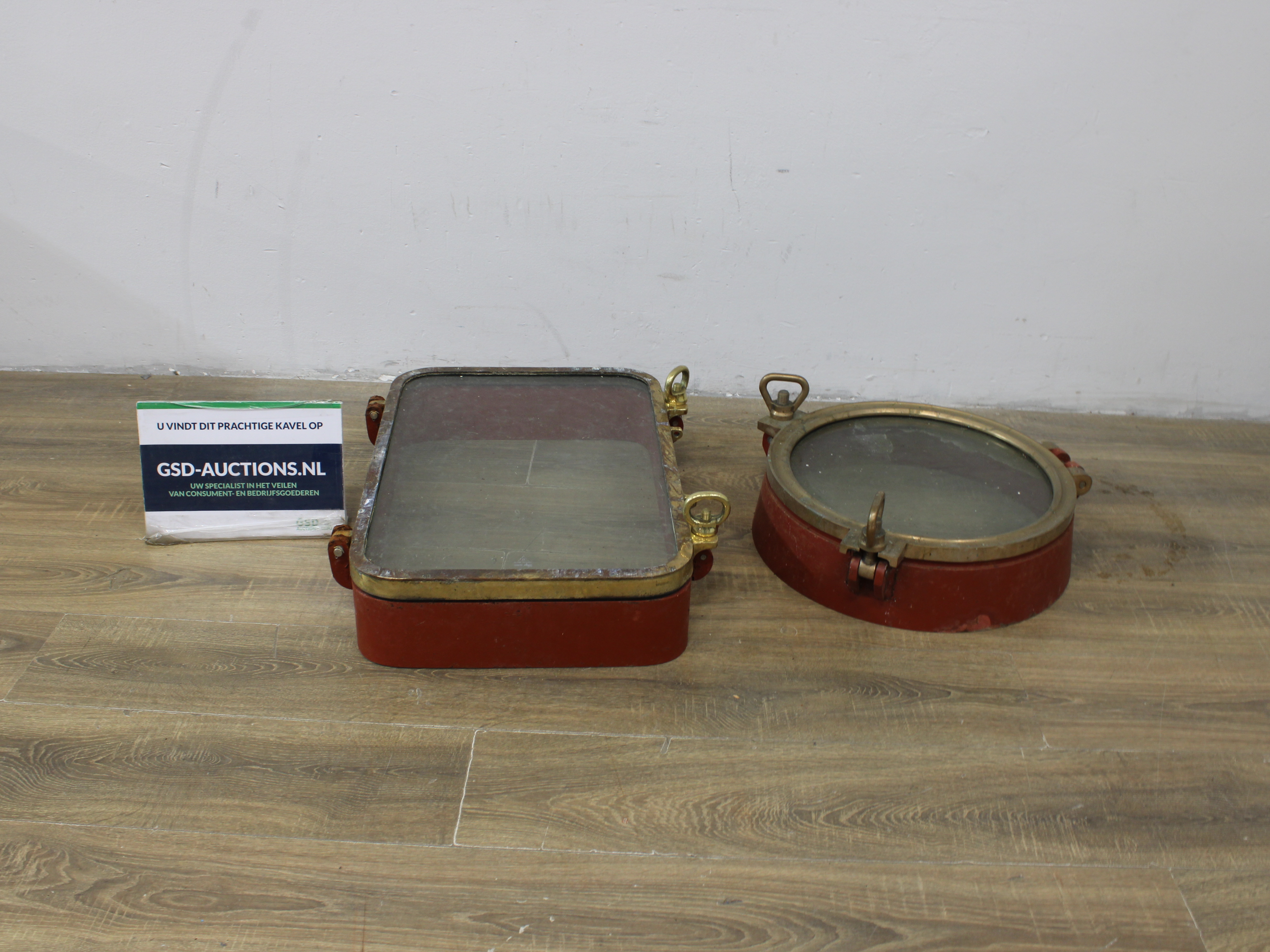 Set van 2 Antiek Metalen Scheepsramen, Patrijspoorten