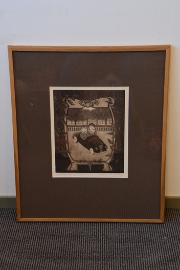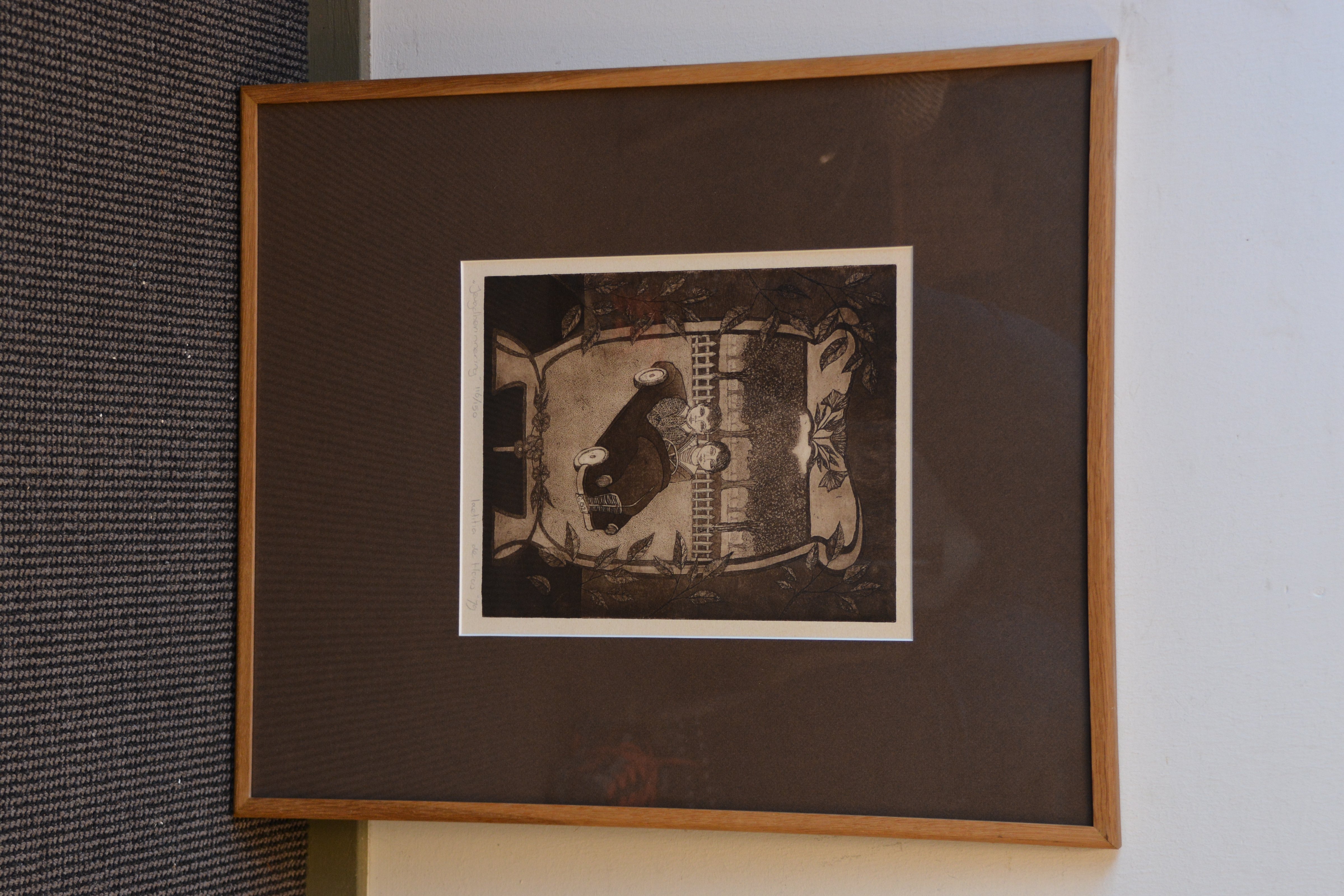 Ingelijste ets van Laetitia de Haas: Jeugdherinneringen