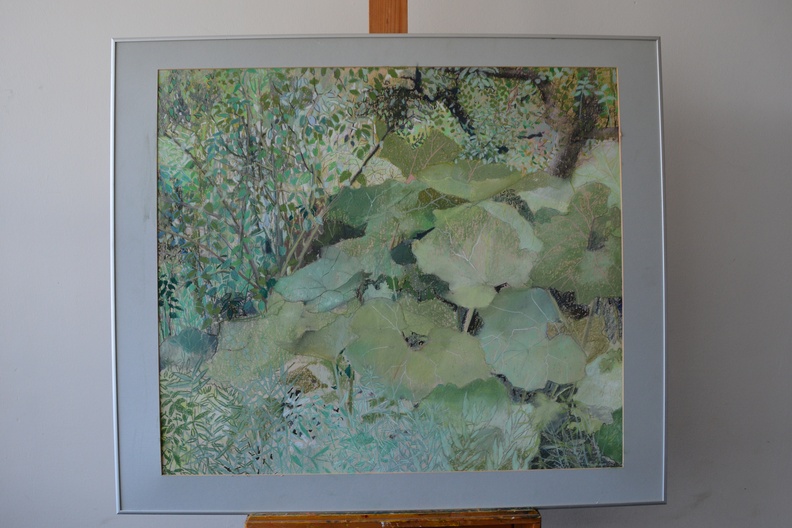Bladeren in de late zomer/begin herfst. Origineel fijnzinnig werk, met de hand getekend/geschilderd. Op de achterkant staat de naam ‘Tamar’. Met passe-partout en ingelijst. In goede staat.