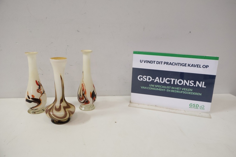 Set van 3 Opaline Glazen 'Swirl' Vazen