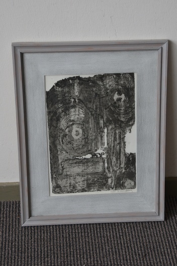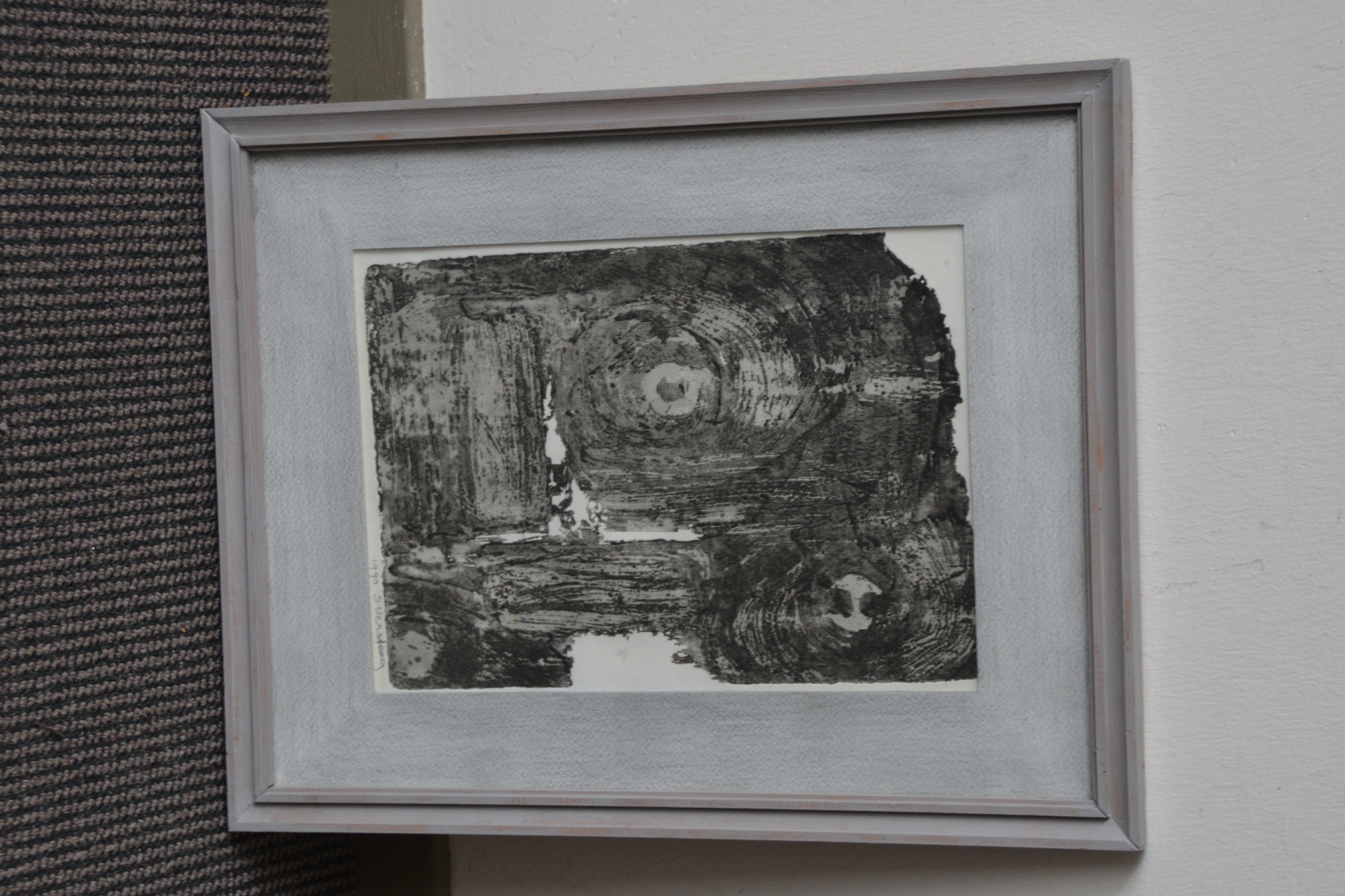 Abstract met inkt en gemengde techniek op papier. Met passe-partout en goede lijst. In goede staat.