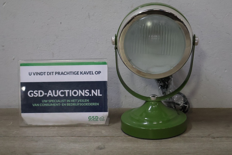 Groene retro tafellamp in koplampstijl
