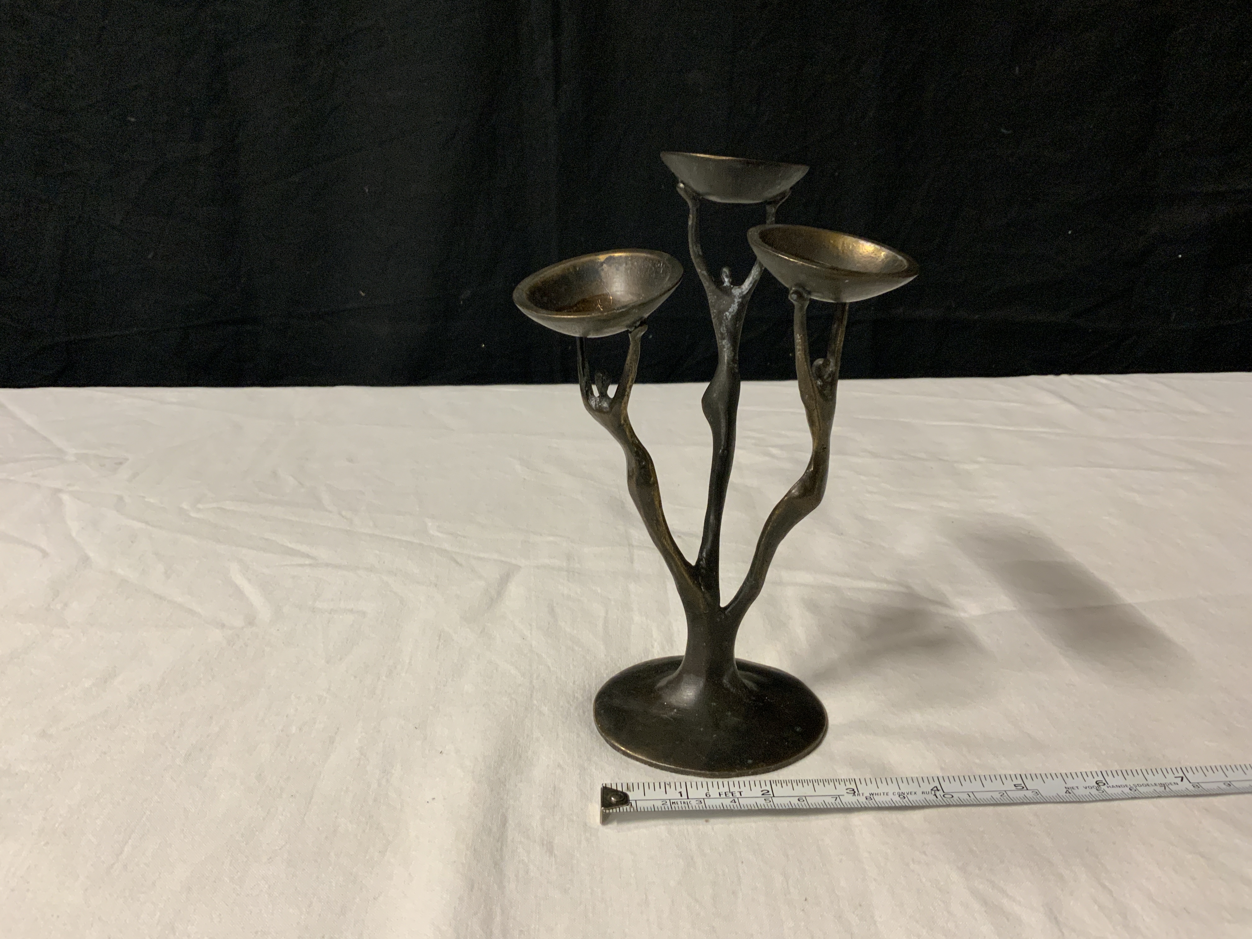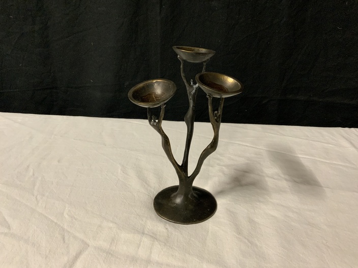 Driearmige Bronzen Kandelaar