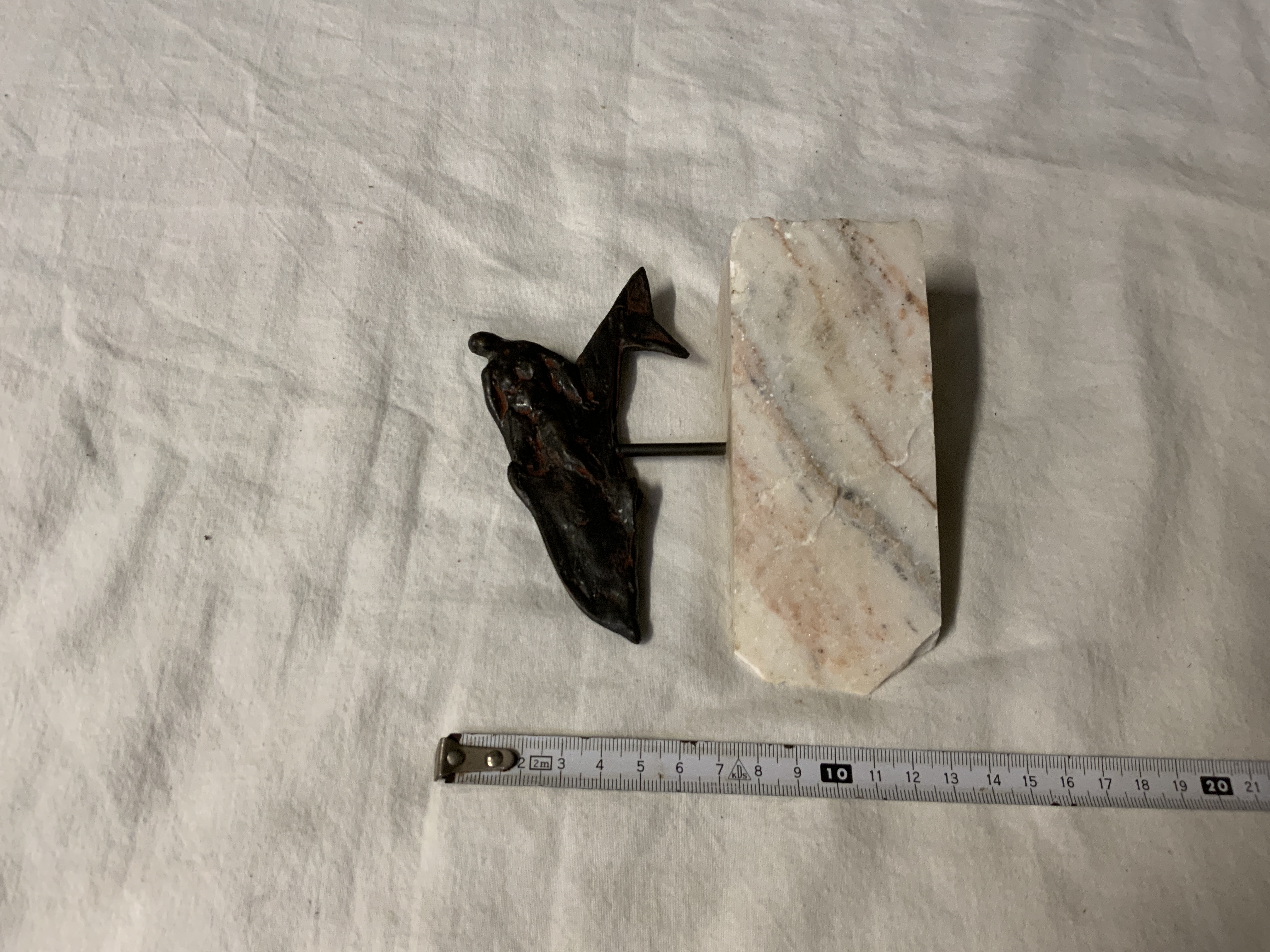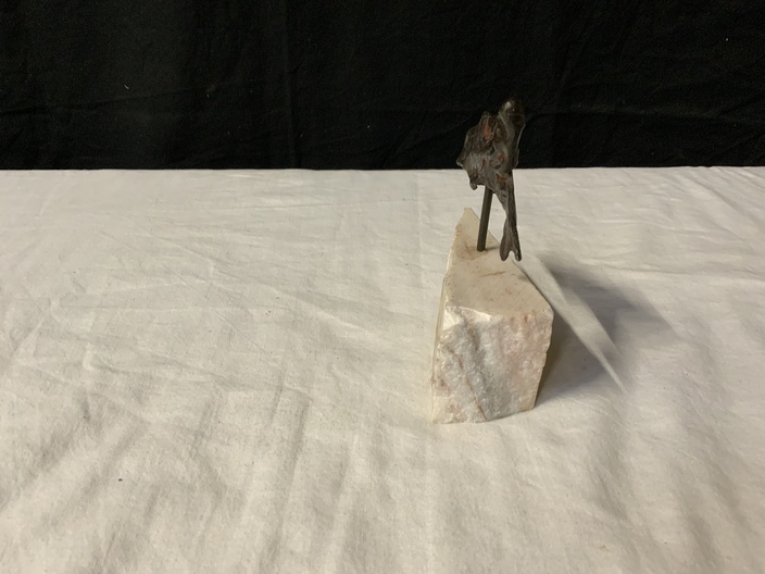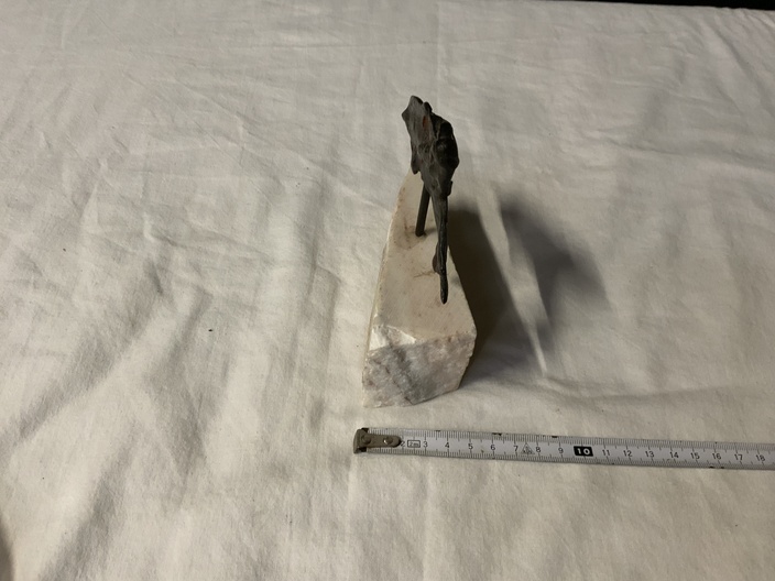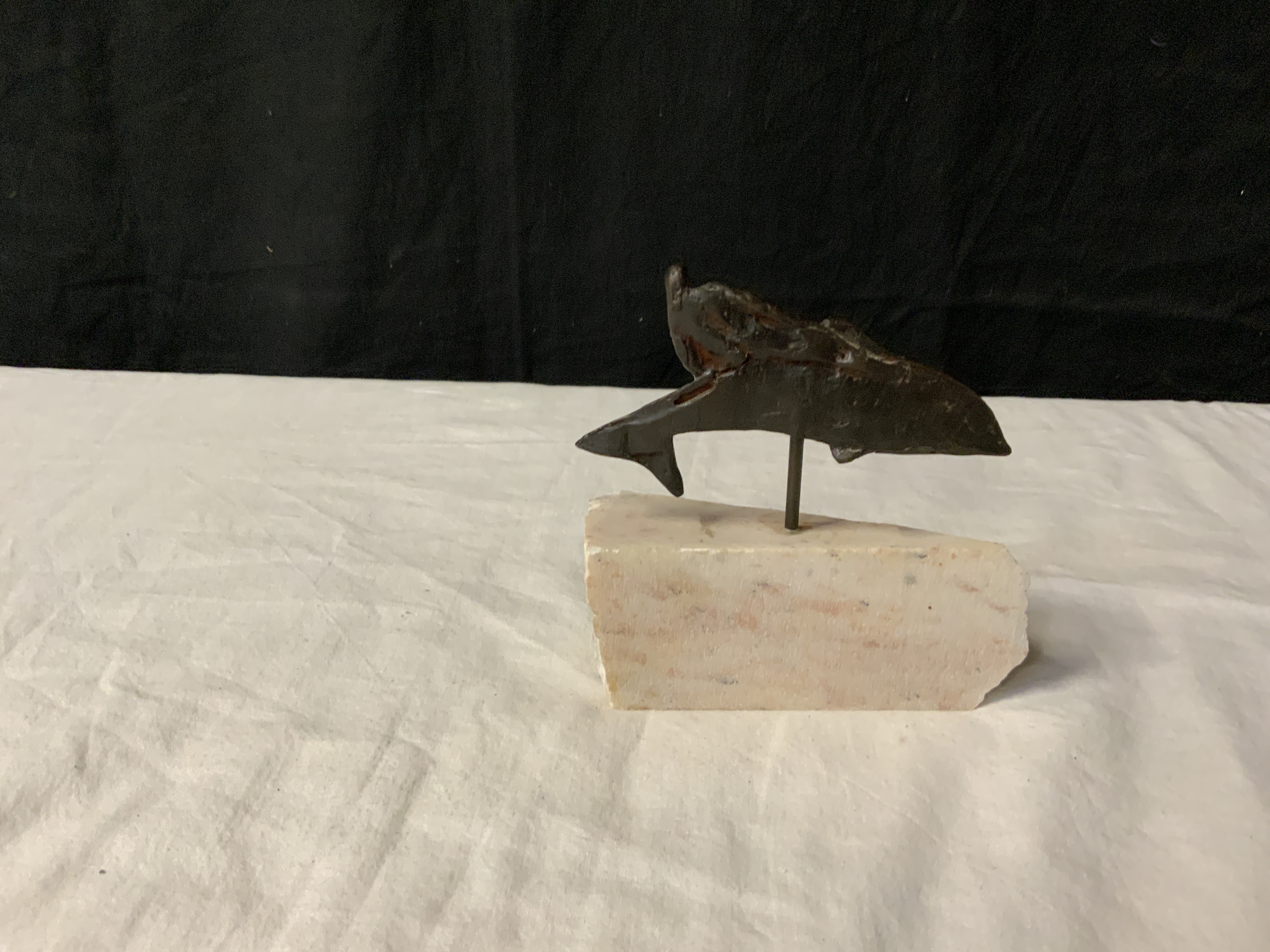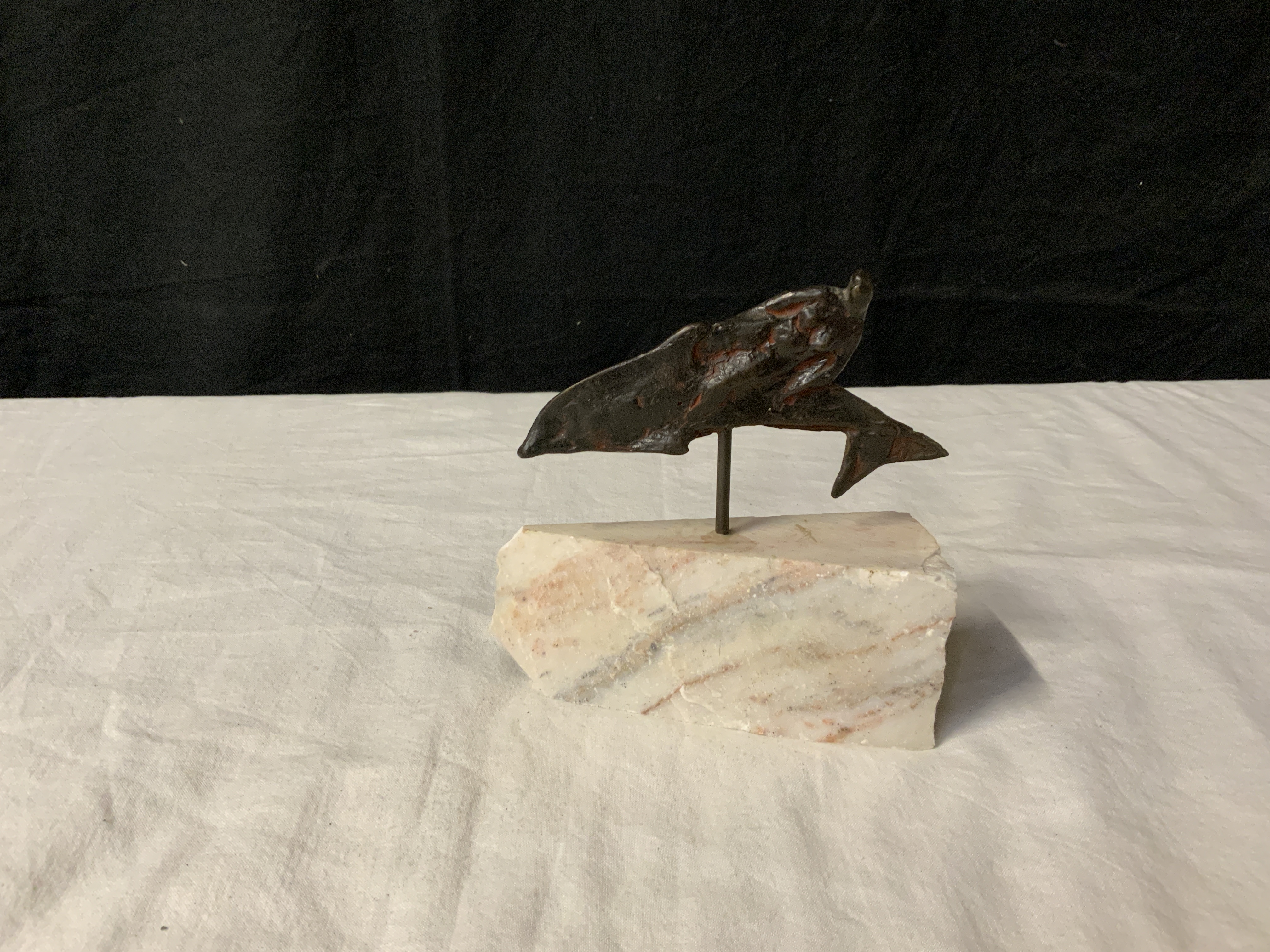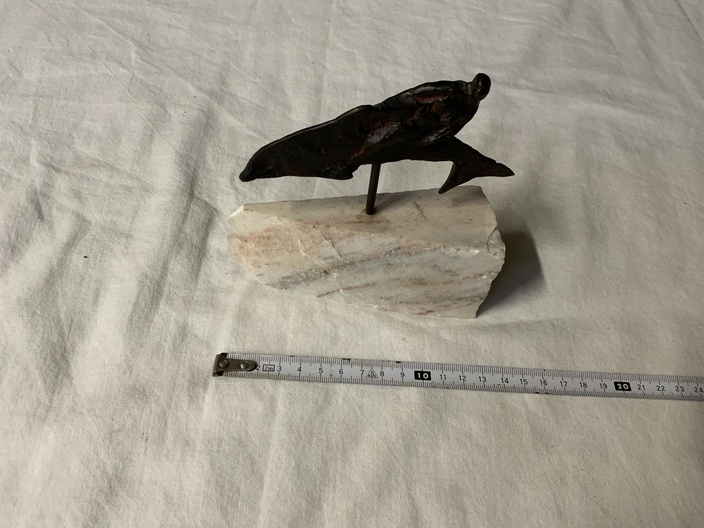 Vintage Bronzen Dolfijn op Marmeren Voetstuk