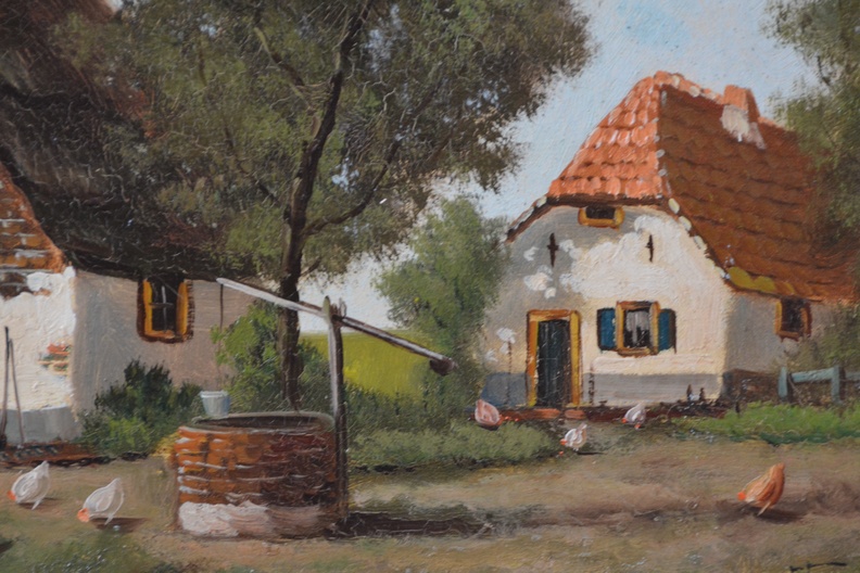 Een pareltje, dit schilderij, van de kunstschilder Albert Torringa (1886-1963). We zien een polderlandschap met een huisje en bomen. In de verte zien we een waterlandschap met een molen. Mooi geschilderd. vertoont lichte craquelé. Olieverf  op doek. Ingelijst.