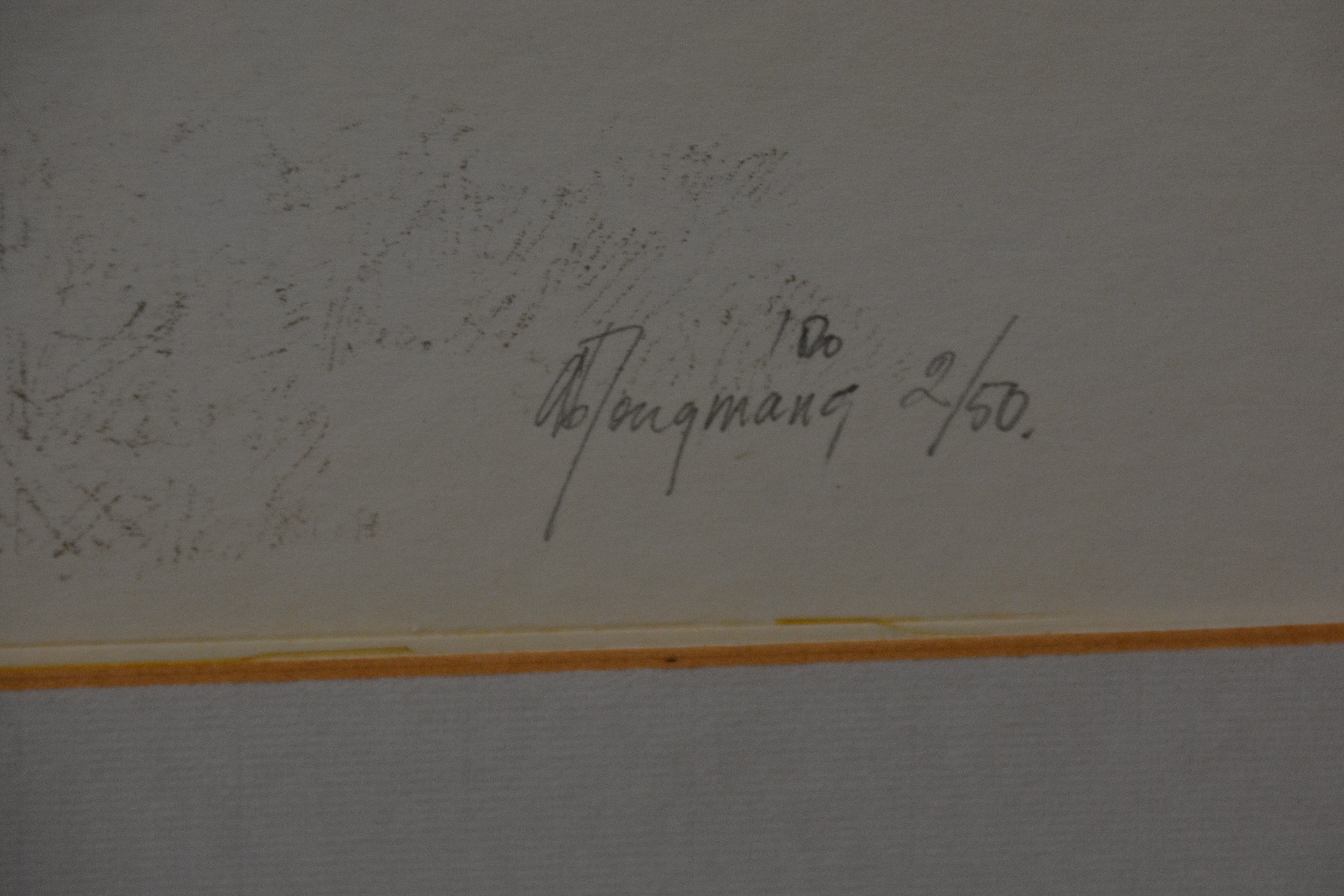 Ab JONGMANS (Alkmaar 1934 - Beverwijk 2011) schilder en tekenaar. In 1955 studeert Ab aan de Gerrit Rietveld Academie afdeling. Opleiding tot tekenleraar. Op de achterkant wat vochtplekjes zichtbaar, niet op de voorkant.