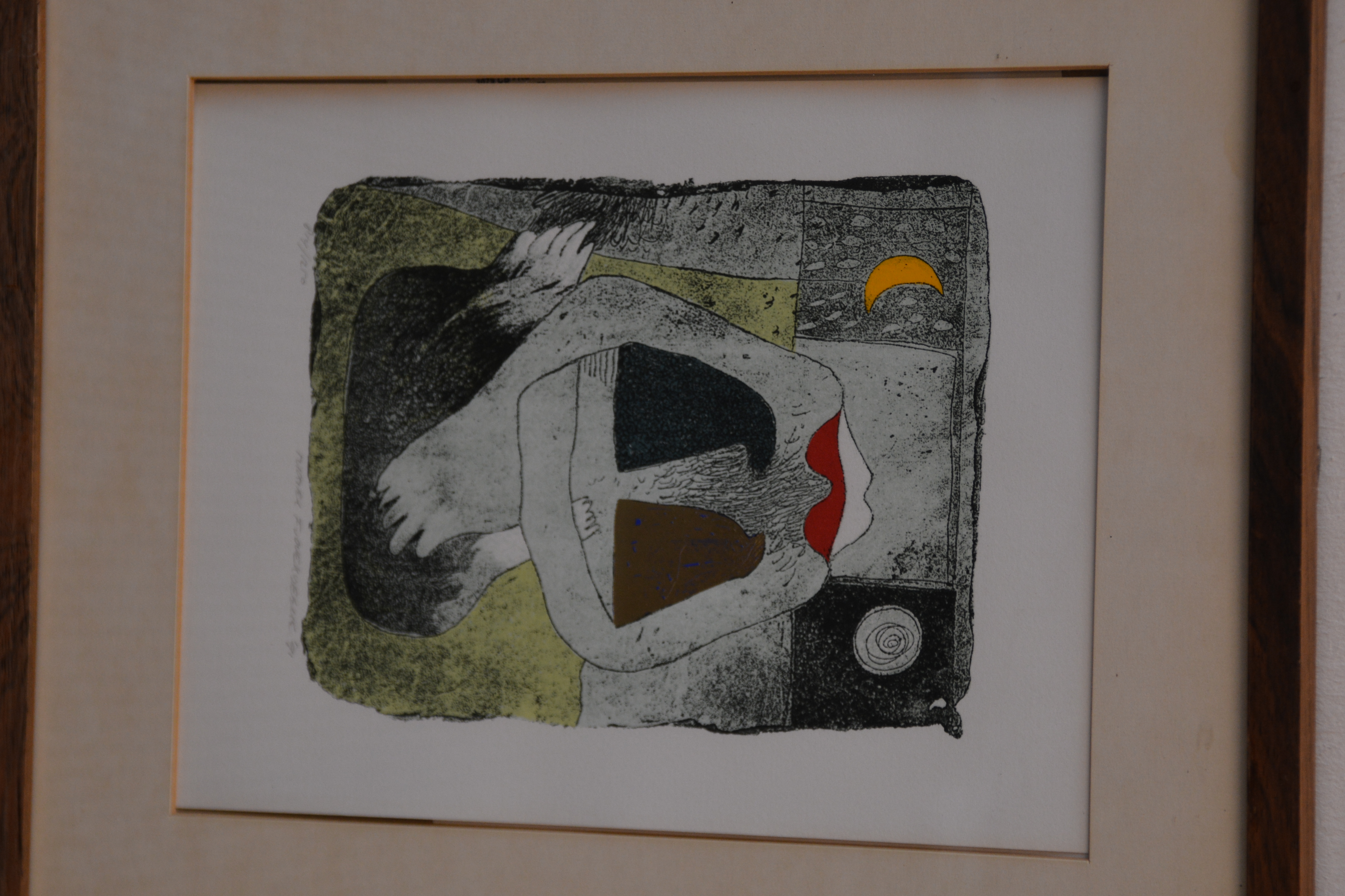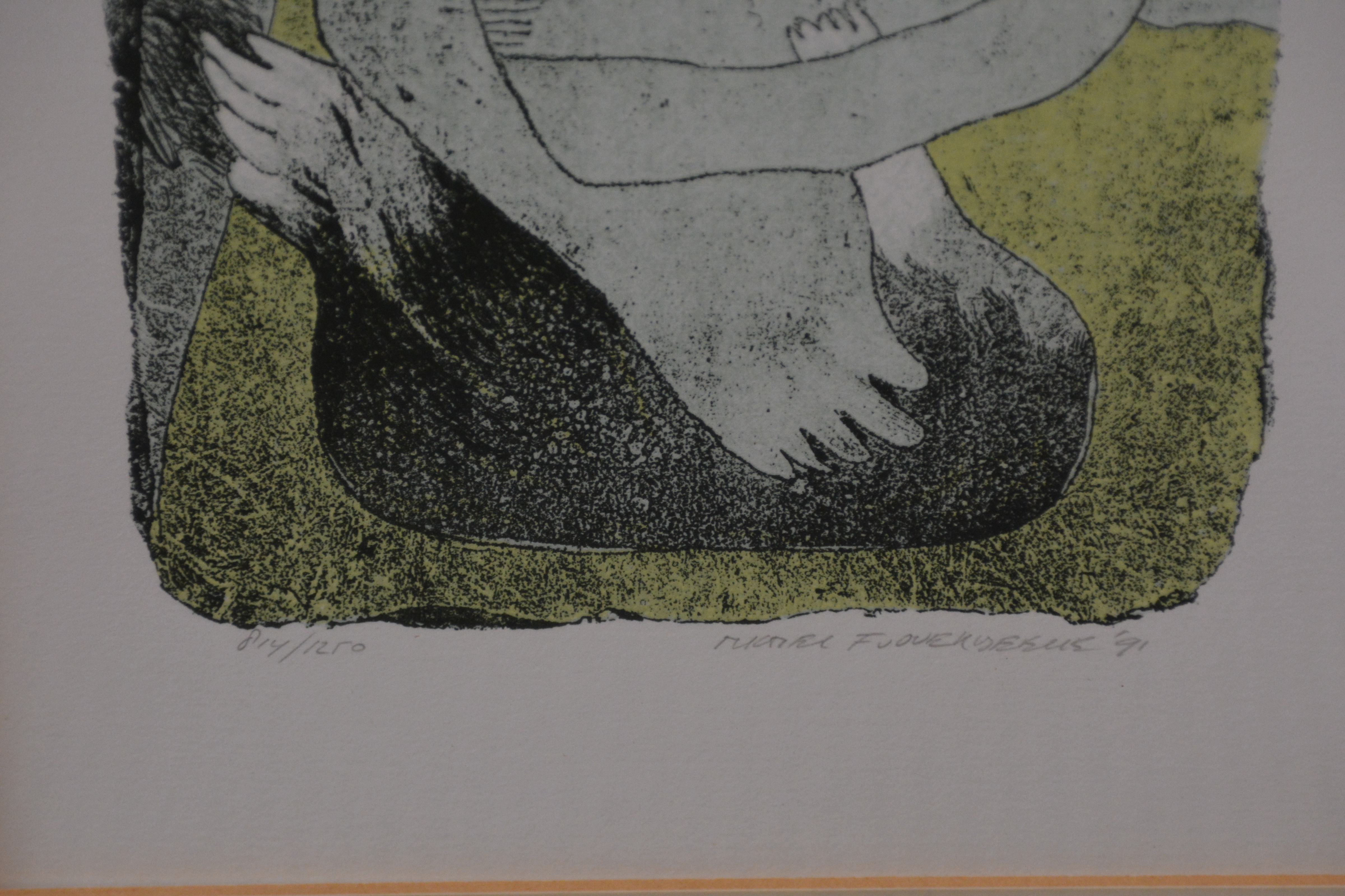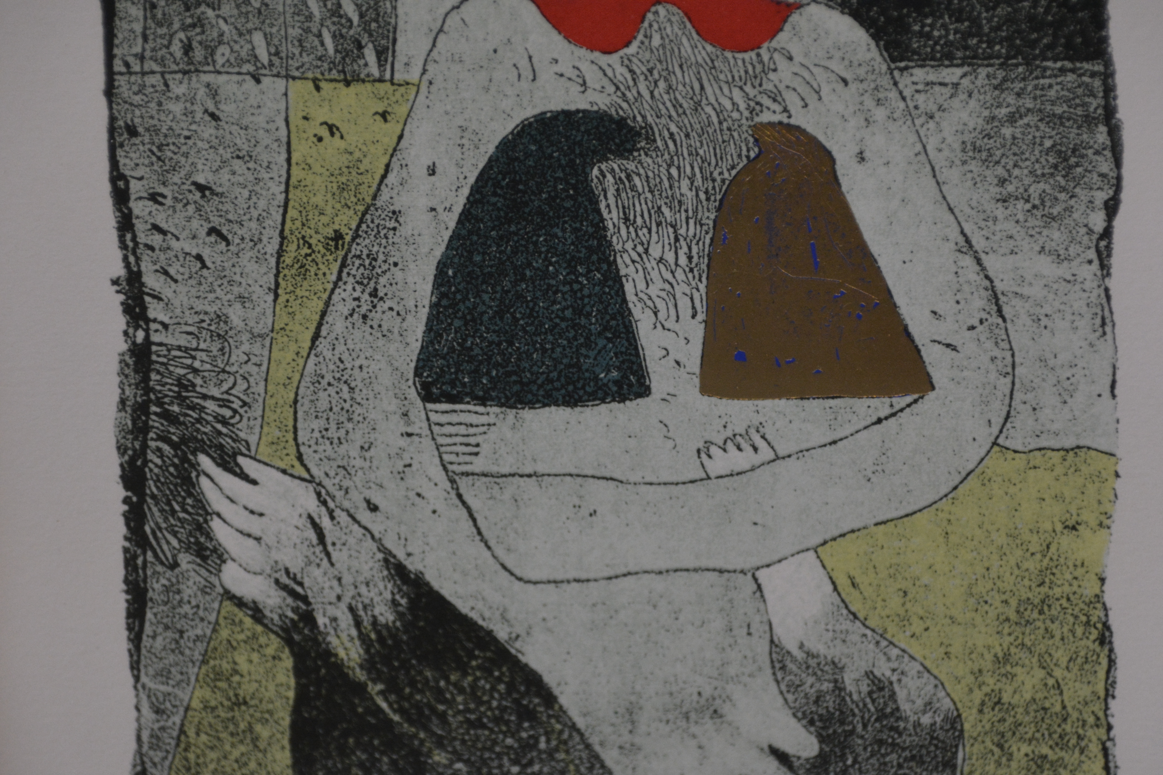 Fraaie ingelijste zeefdruk van Michel van Overbeeke. Met echt bladgoud! Uit 1991. No. 814/1250 stuks. Met verklarende papieren achter het schilderij. Michel van Overbeeke (1942-2024).