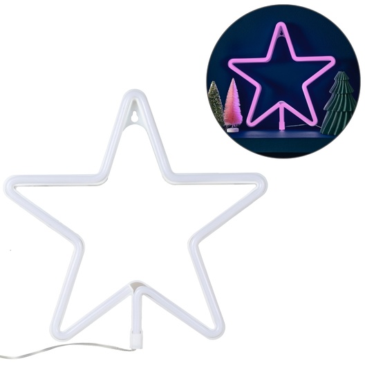 - De grote roze ster is uitgevoerd in modern neon en valt meteen op aan de muur.