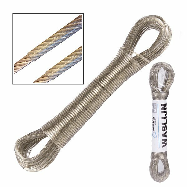 - Deze sterke kunststof waslijn is voorzien van een staaldraad kern.