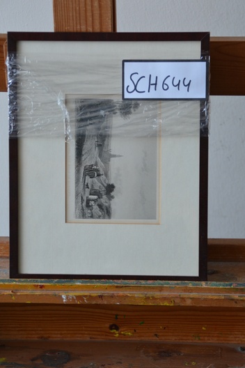 Ingelijste prent uit een Engelse antieke reisgids v Barber'