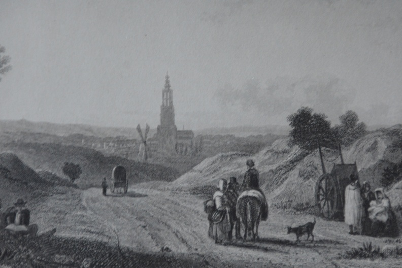 Amersfoort, gezien van de weg naar Utrecht, staalgravure uit 1860. V. Bing en T. Barber. Ingelijst en in goede staat.