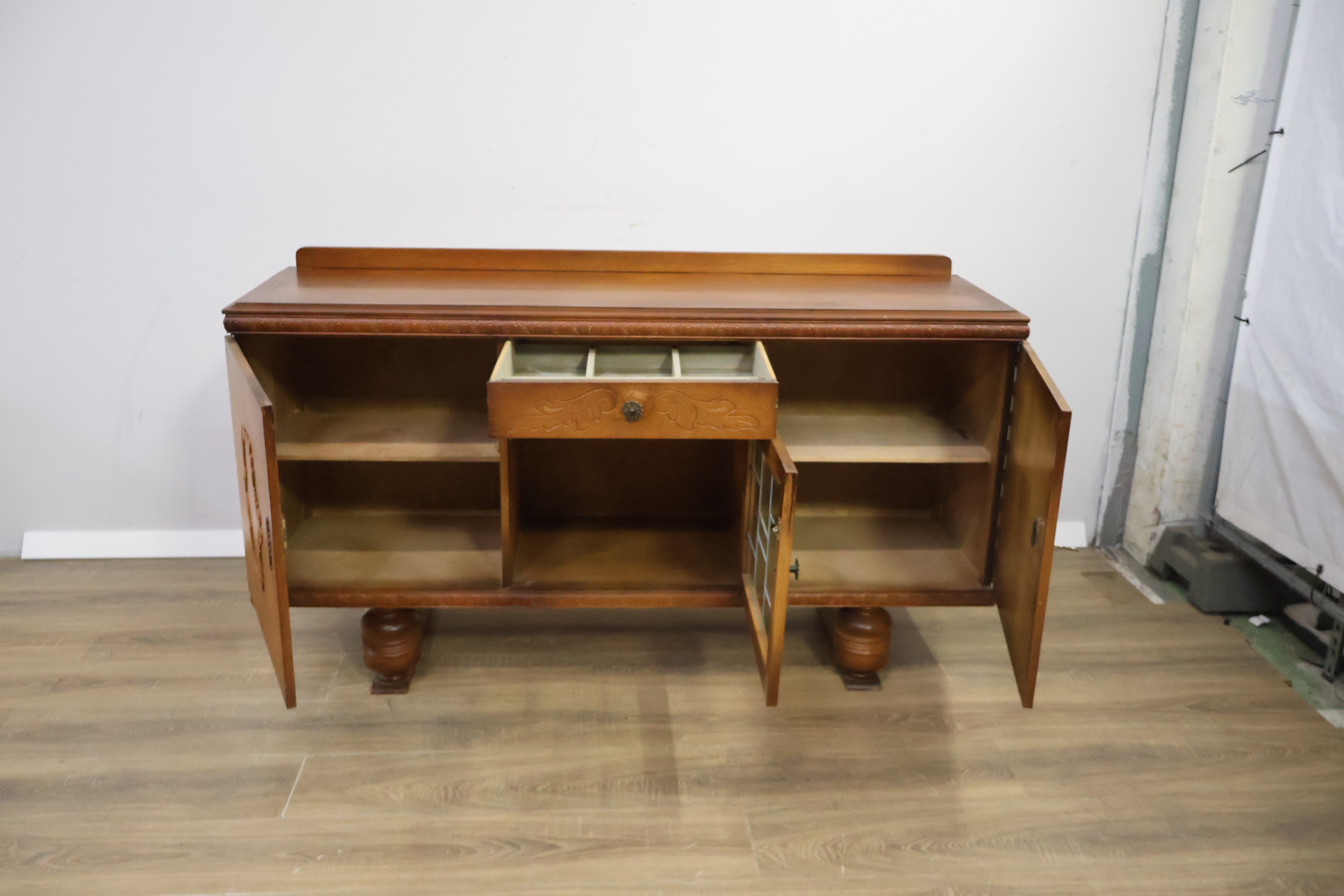 Antiek 3-Deurs Dressoir met Lade'