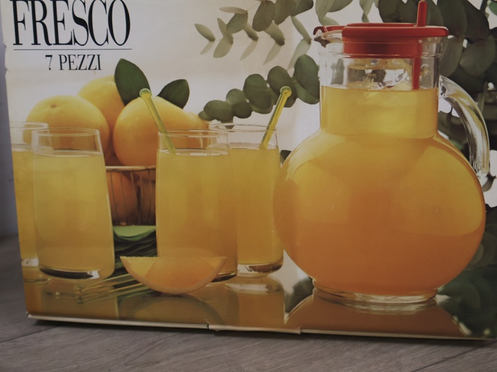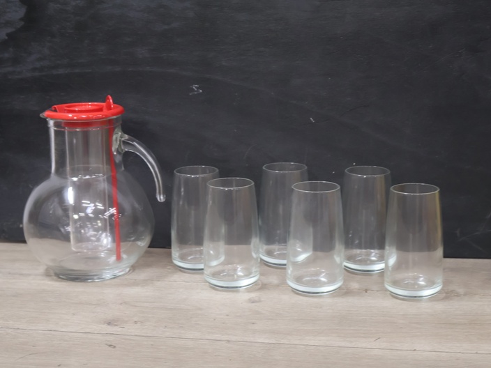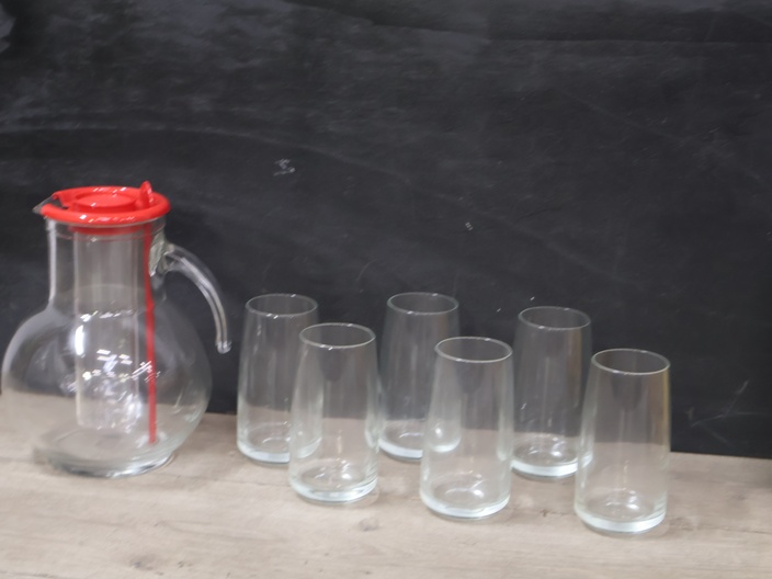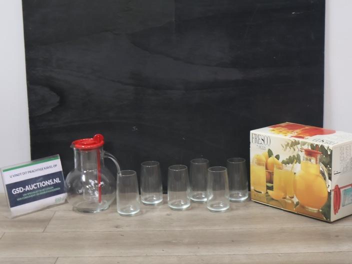 Fresco glazen schenkkan met 6 bijpassende glazen''