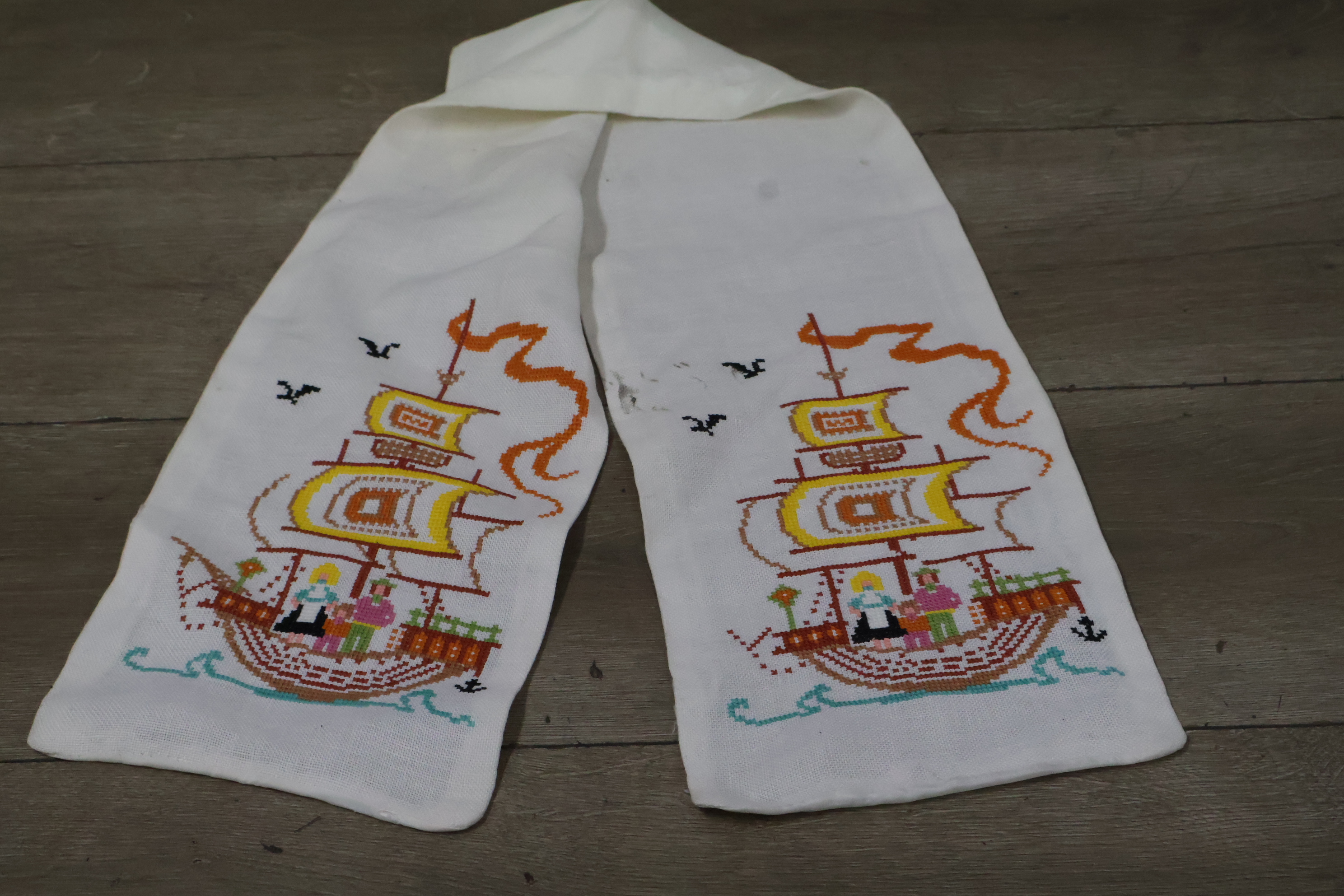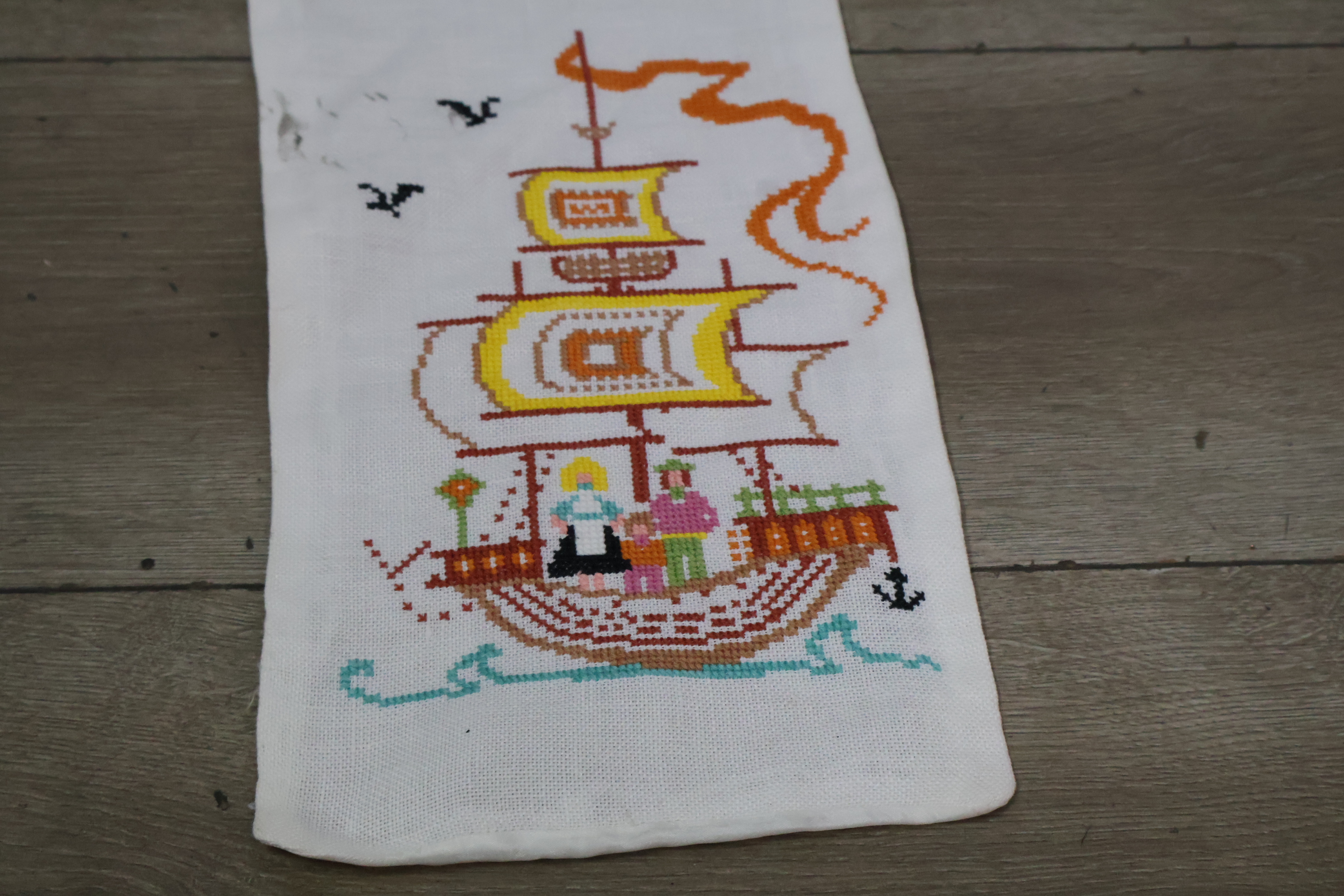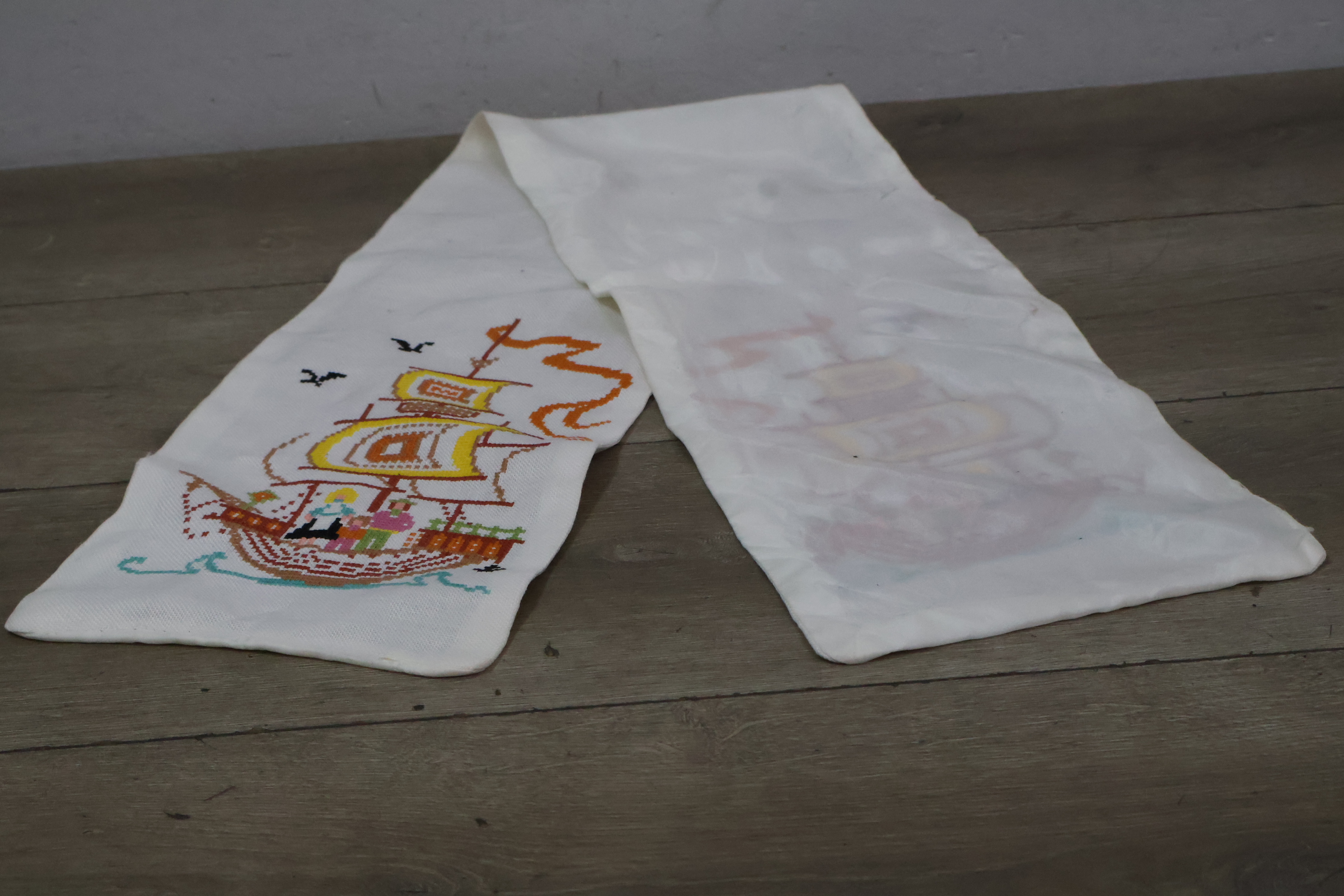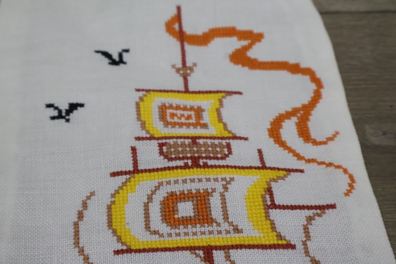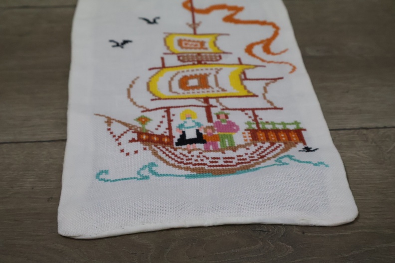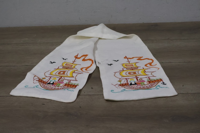 Geborduurde tafelloper met een scheepsmotief''