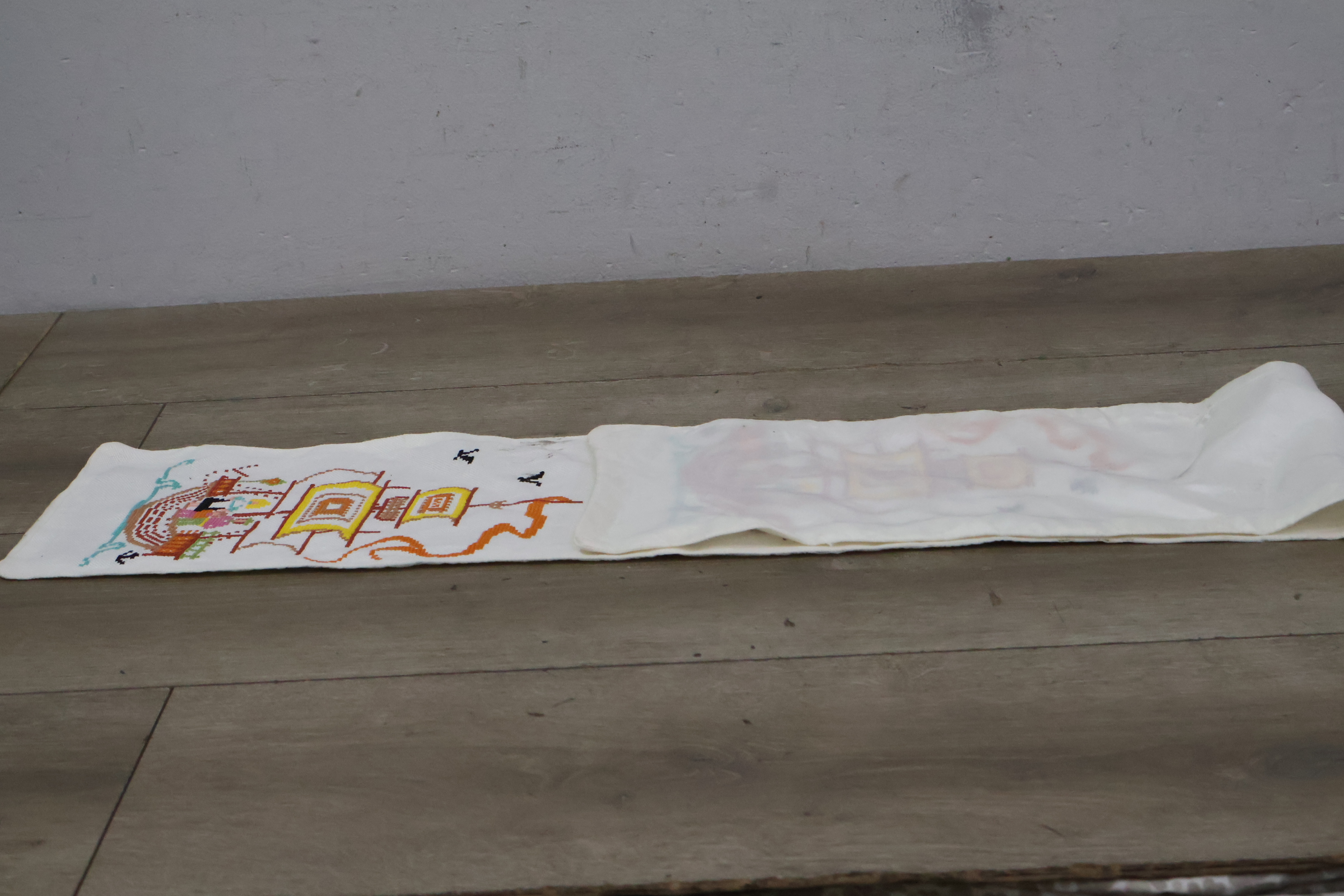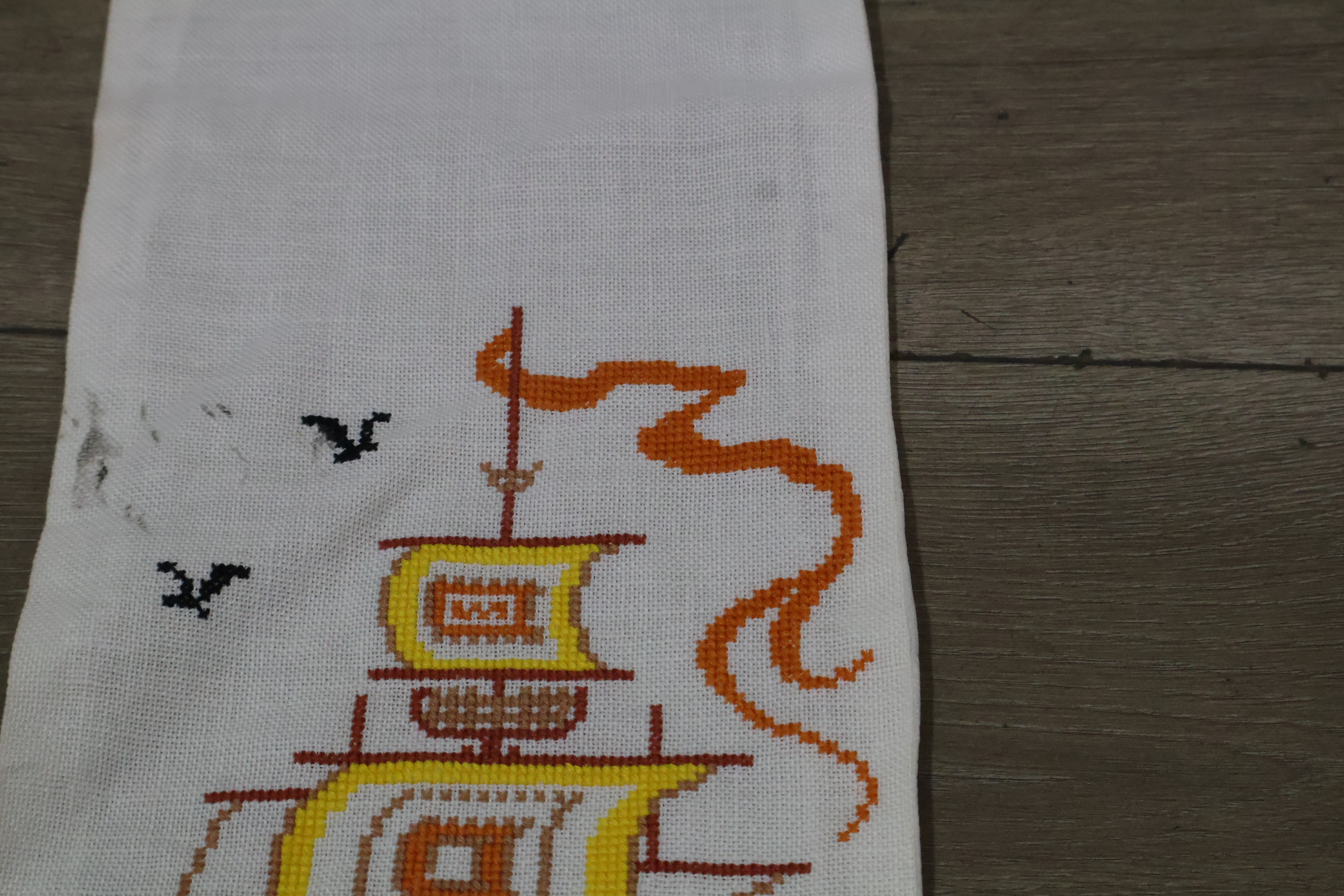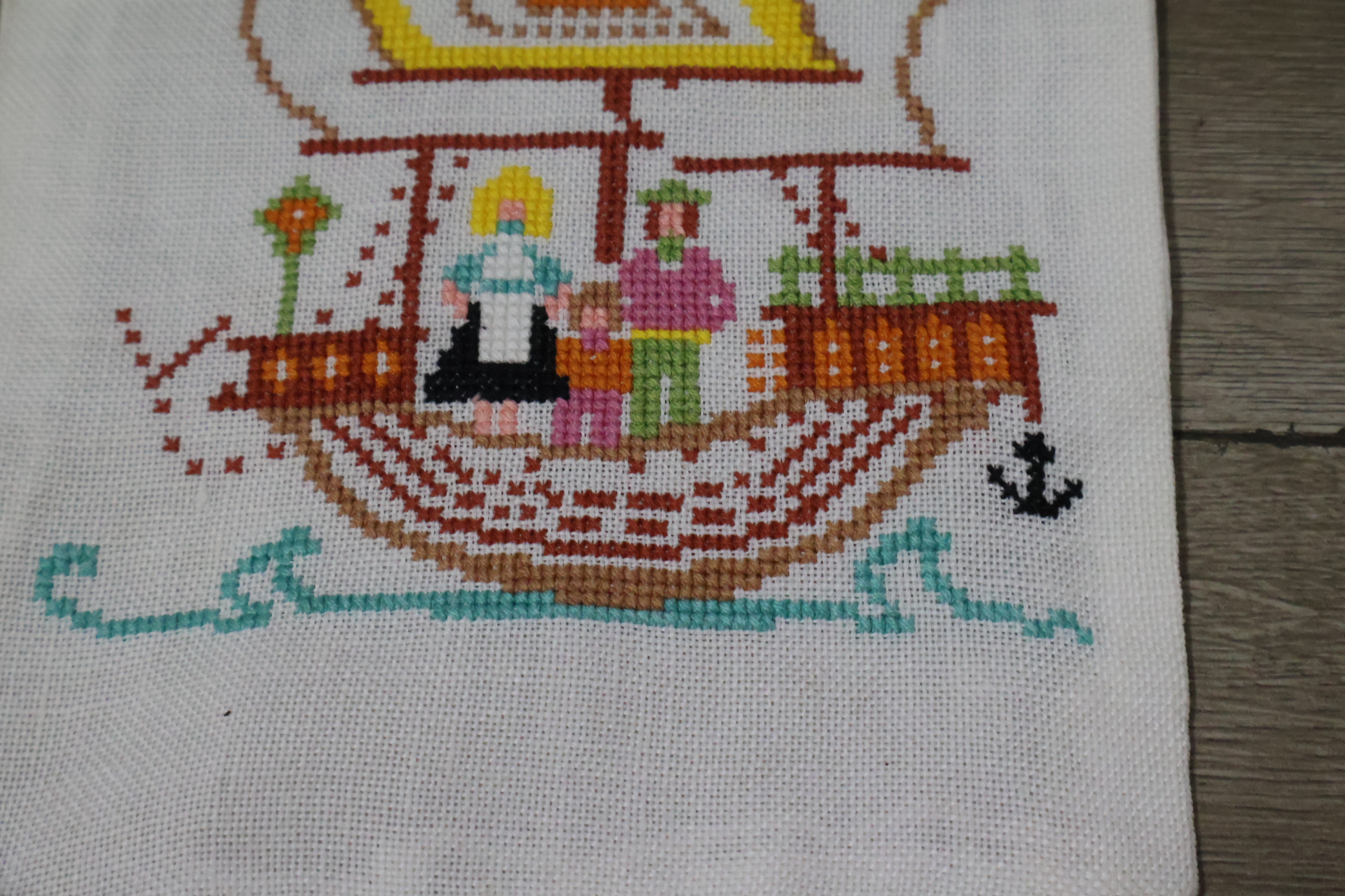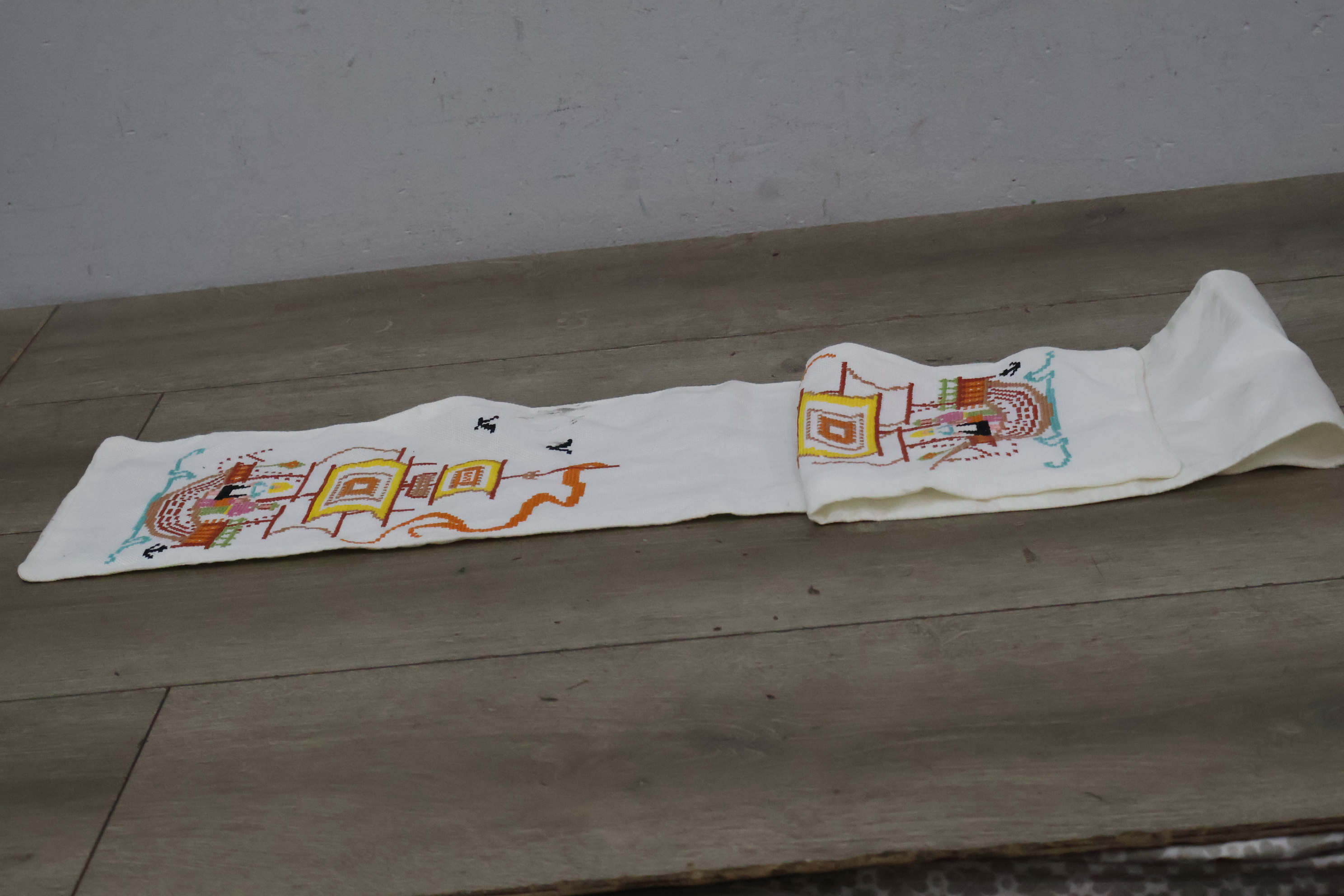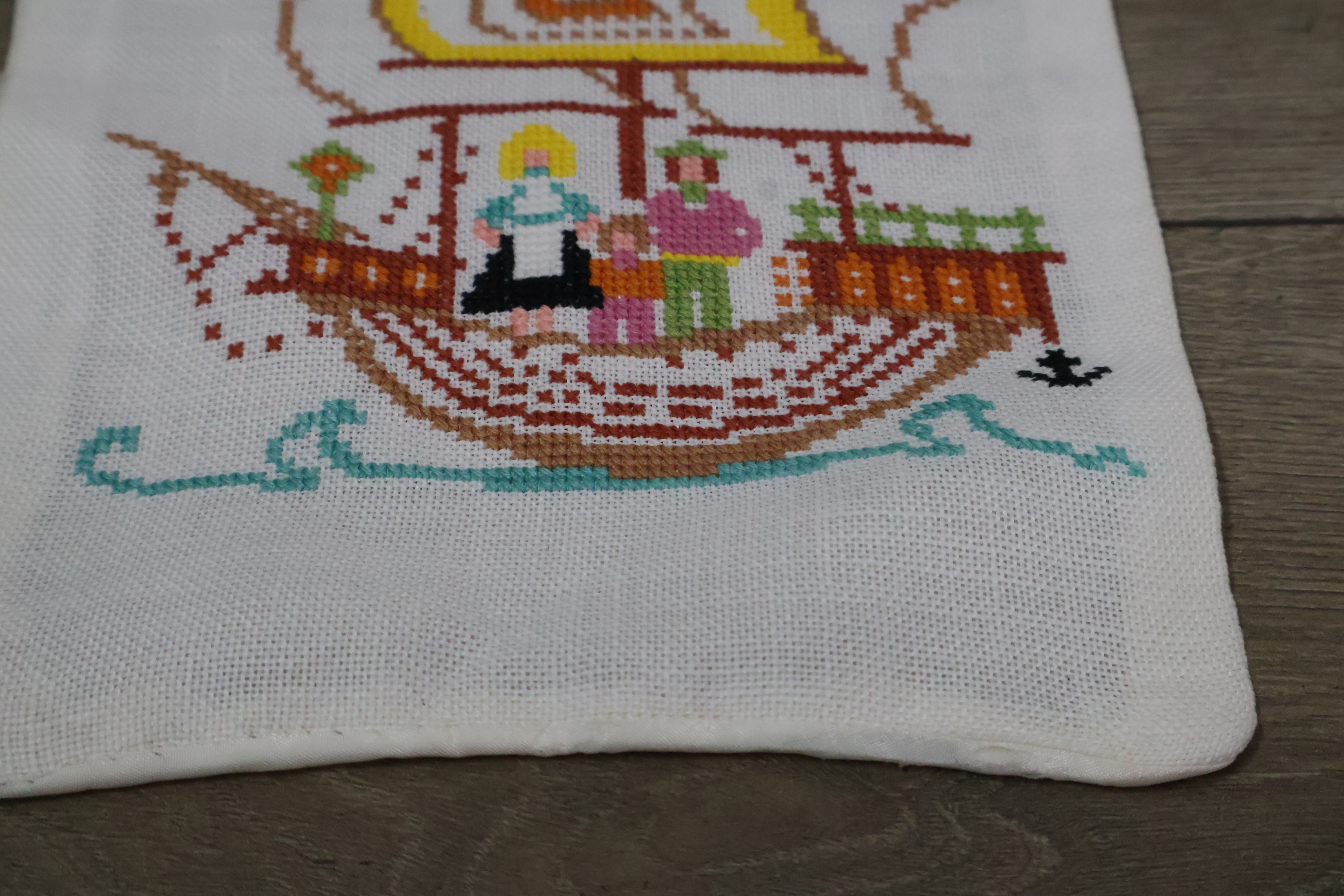 Geborduurde tafelloper met een scheepsmotief''
