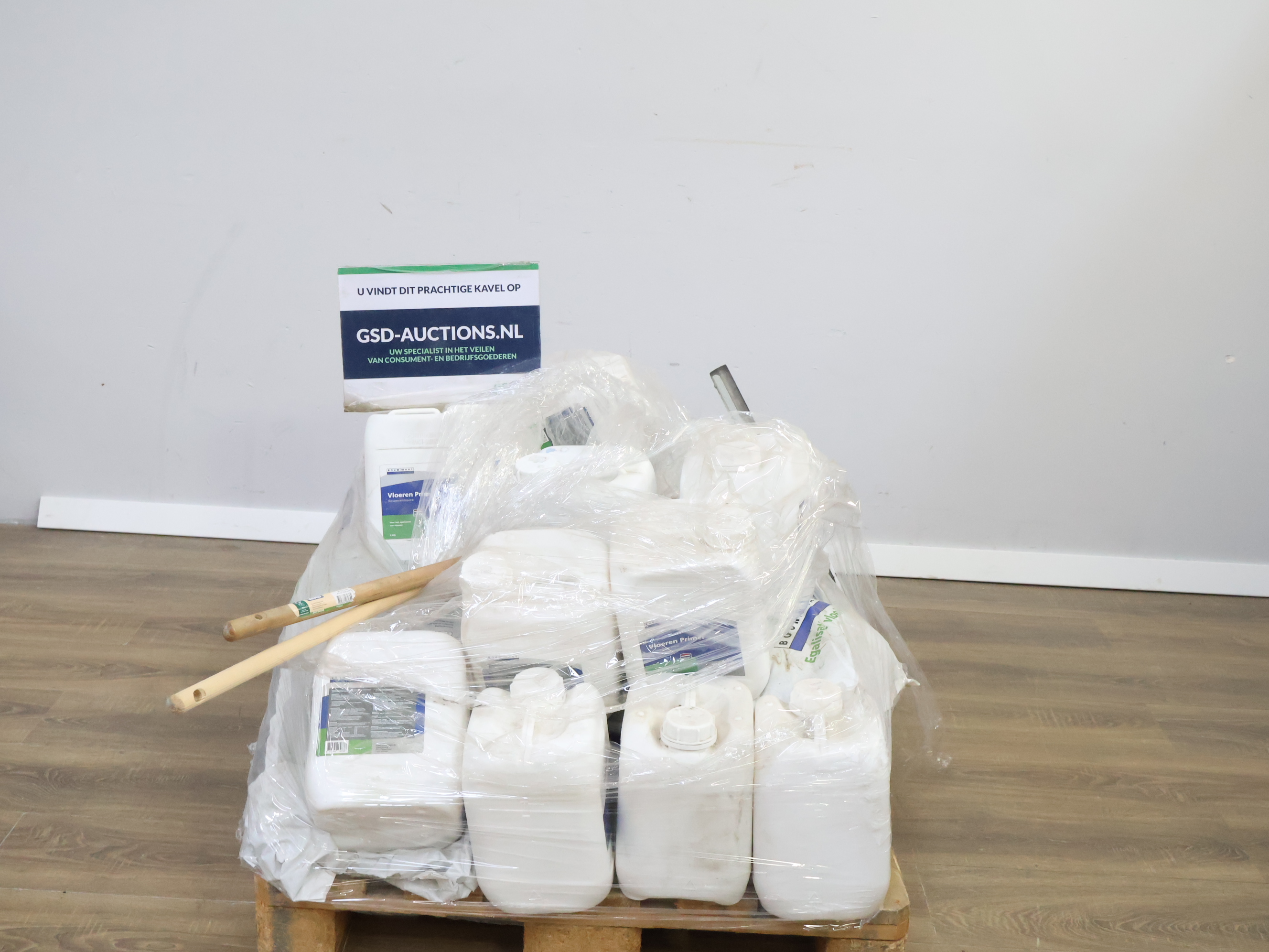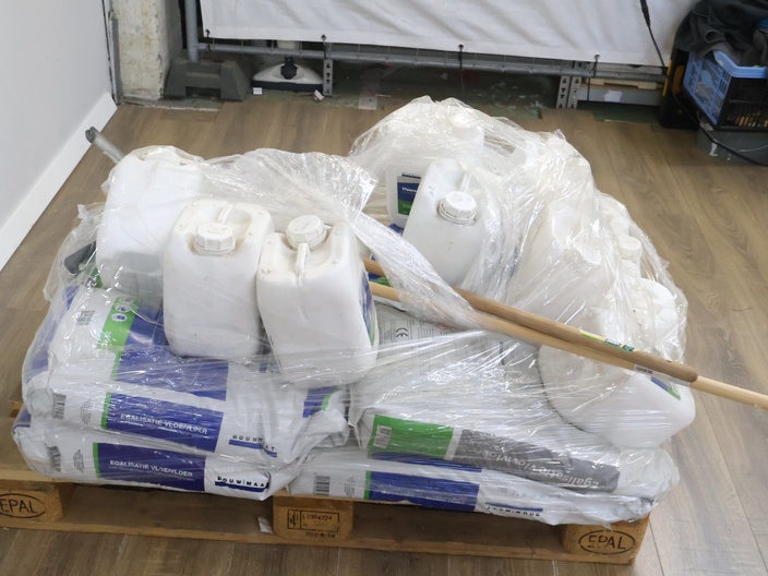 Pallet met 25KG-Zakken Egalisatie & 5KG-Flessen Primer