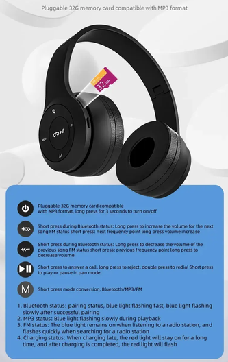 Bluetooth Hoofdtelefoon | Draadloze Headset | Wireless Headphones | Opvouwbaar| Handsfree bellen| Microfoon|MP3| FM Radio| Zwart