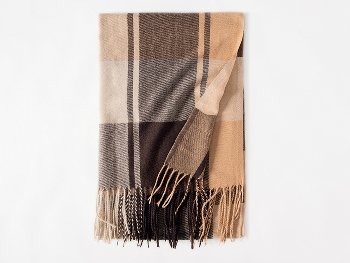 Het patroon is een klassieke ruit met warme bruine kleuren en franjes aan de uiteinden. Ideaal voor de frissere voor - en najaar dagen en perfect voor de koudere winter dagen. Met een lengte van 200 centimeter kan je de sjaal op vele manieren dragen. Ga voor een luxe uitstraling gecombineerd met comfort en warmte!
