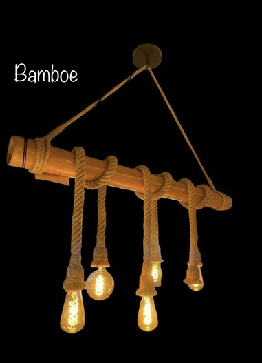 Bamboe hanglamp met dikke touw in doos(nieuwe in doos)