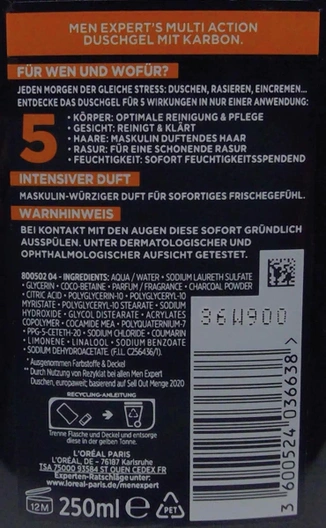L'Oréal Men Expert Douche 250ml Carbon Clean  (6 stuks in doos)