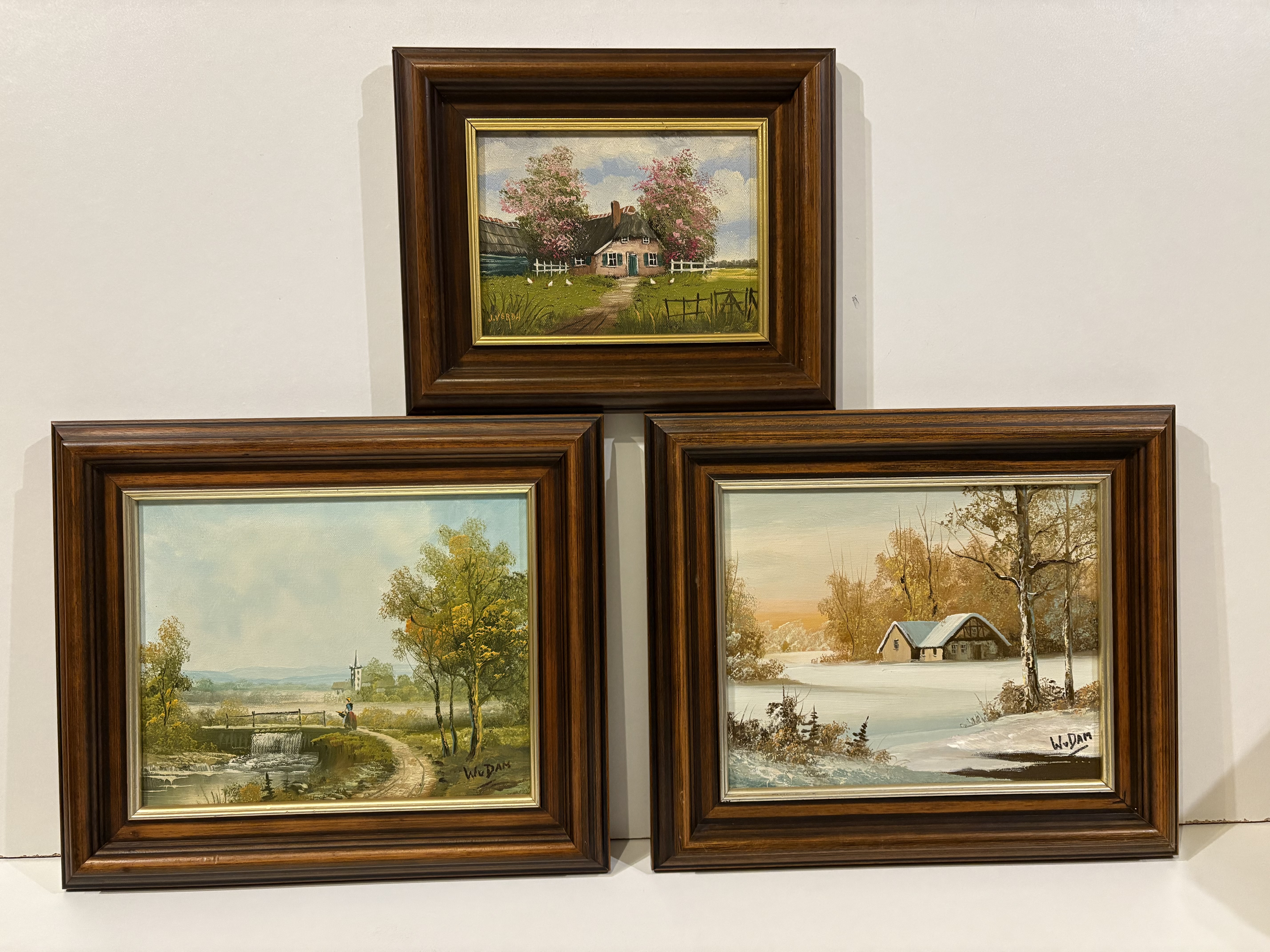 Olieverf schildrijen van W.v.Dam en J.Verda (3 stuks totaal)