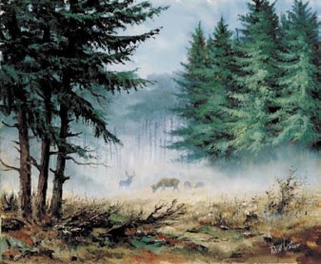 Reint Withaar - Morning in the mist - Afm: 50x60 cm.