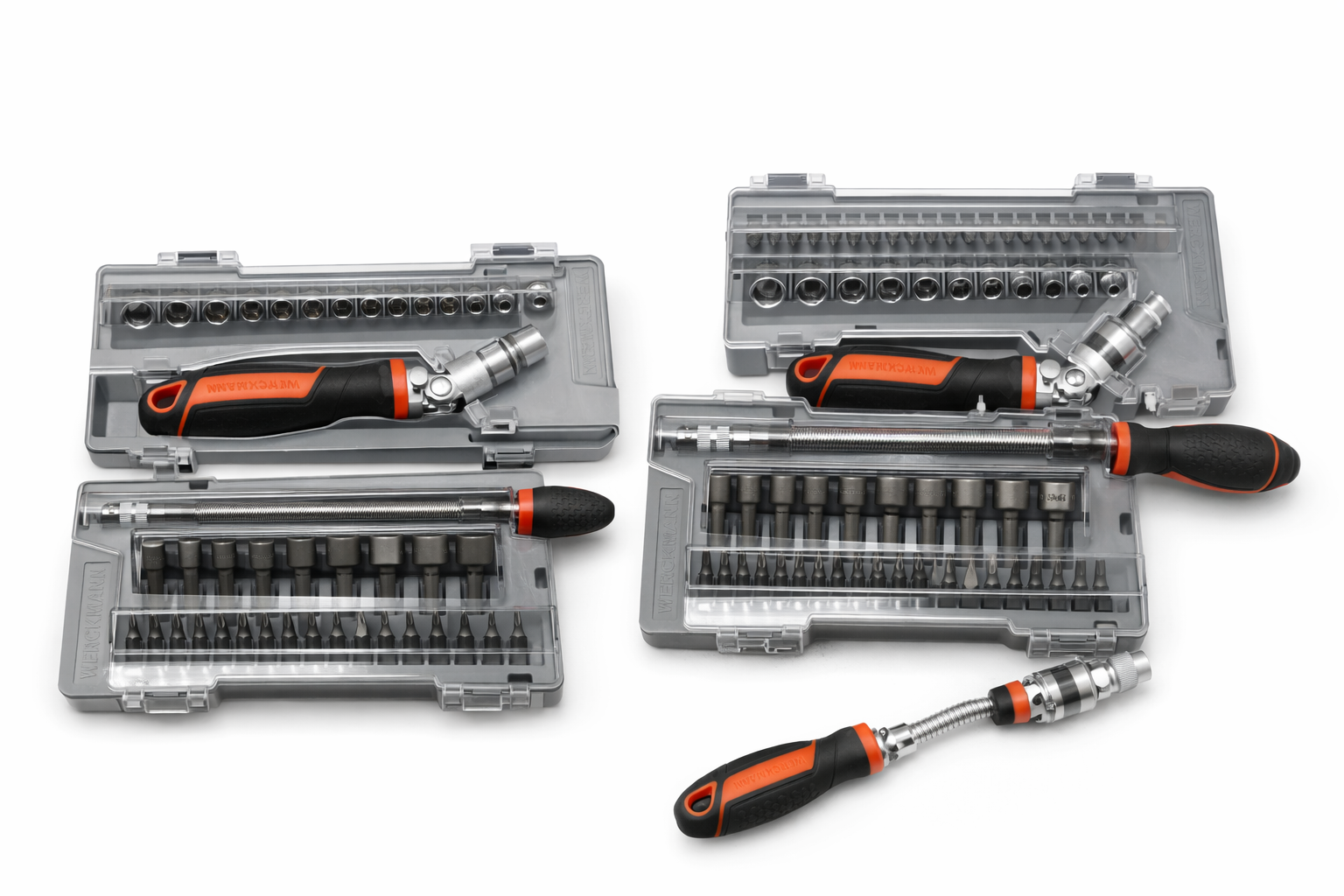 Meerdere bit- en dopsleutel sets in stevige opbergbox