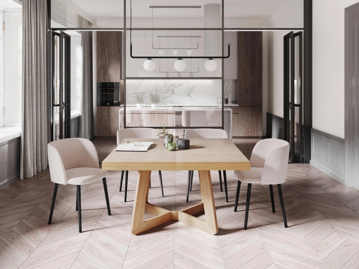 De veelzijdige eettafel Nodi is een aanwinst voor iedere eetkamer. Het elegante design geeft de tafel een natuurlijke uitstraling. Deze tafel voelt zich perfect thuis in industriële interieurs. De Nodi is uitschuifbaar en kan dus de ideale eettafel zijn voor iedere situatie. Het is gemaakt van hoogwaardig eikenhoutfineer dat slijtvast is en makkelijk te onderhouden.