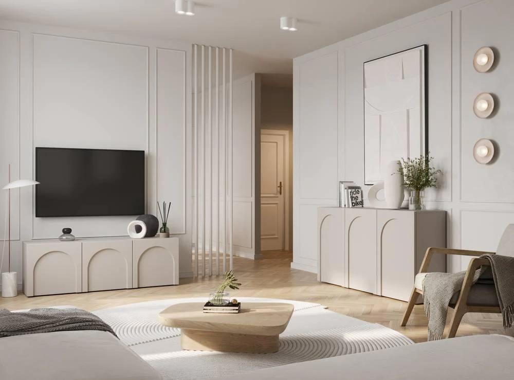 Het in minimalistische stijl ontworpen Archie TV-meubel onderscheidt zich door decoratief frezen aan de fronten in de vorm van bogen , waardoor het een subtiele maar karakteristieke uitstraling krijgt. De binnenkant van de kast is verdeeld in drie gesloten planken, waardoor je verschillende spullen in de gewenste volgorde kunt opbergen. De grijsbeige kleur geeft hem een ​​delicate, natuurlijke charme die perfect past bij diverse arrangementen, en door zijn eenvoud past hij in zowel moderne als klassieke interieurs. Wacht niet! Kies voor Archie en transformeer uw interieur in een oase van elegantie en harmonie.