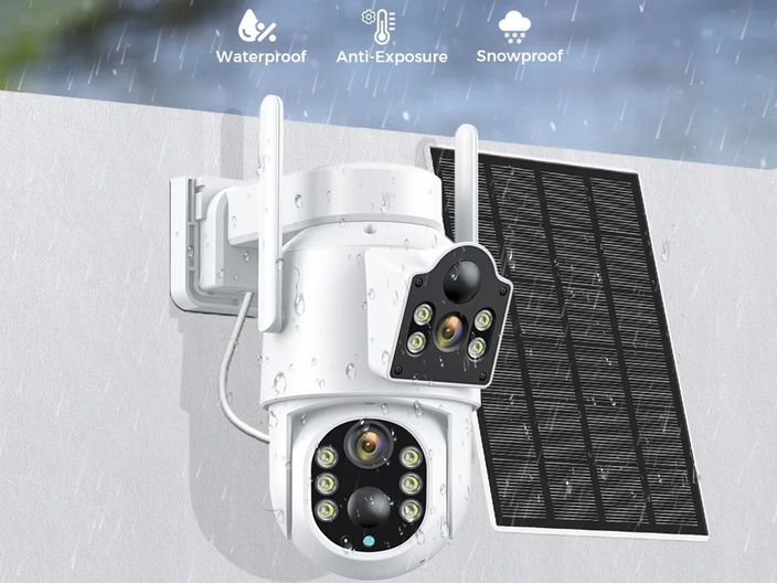 100% draadloos en op zonne-energie: De camera met zonnepaneel elimineert de noodzaak van draden en stopcontacten. Met een ingebouwde oplaadbare batterij van 12000 mAh kan de camera volledig worden opgeladen via het zonnepaneel, die maar 2 uur direct (zon)licht nodig heeft per dag om de hele dag te werken. Zo ben je Non-Stop Green Powered.