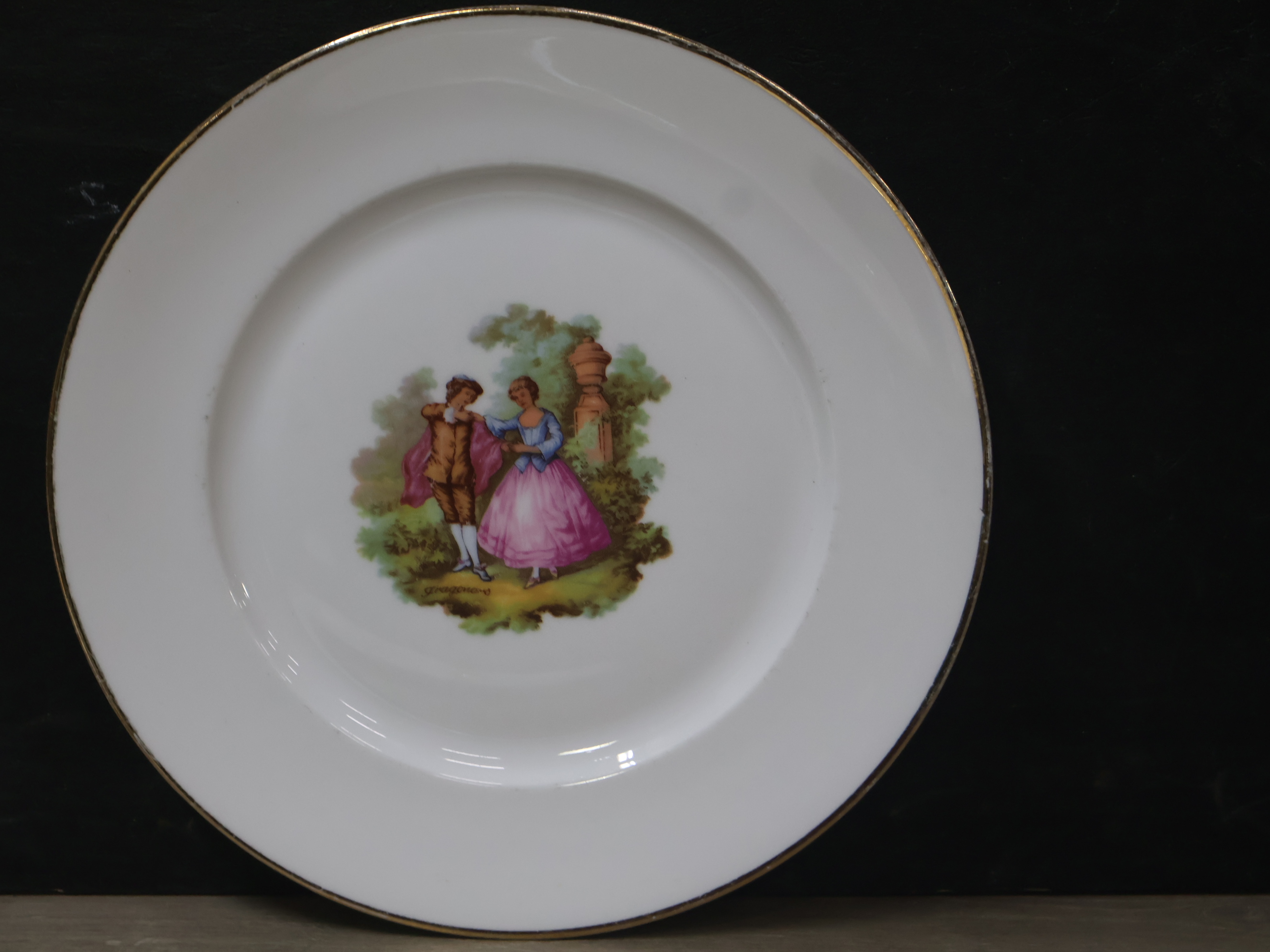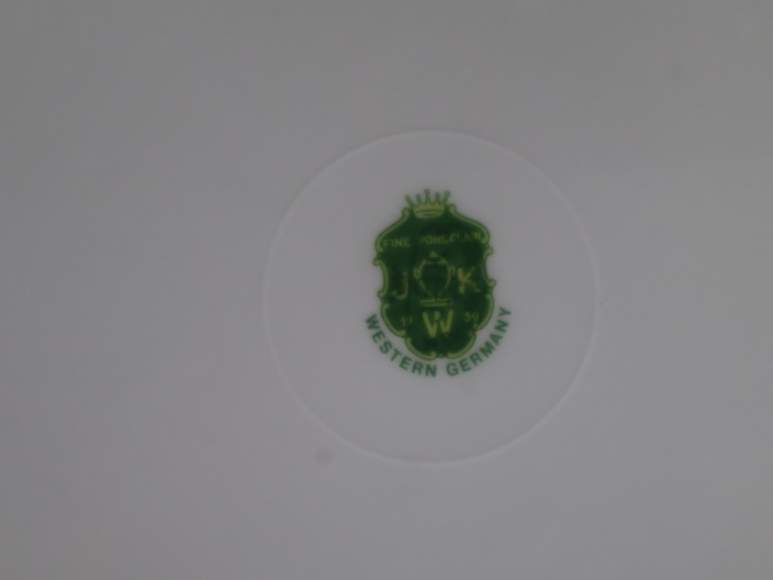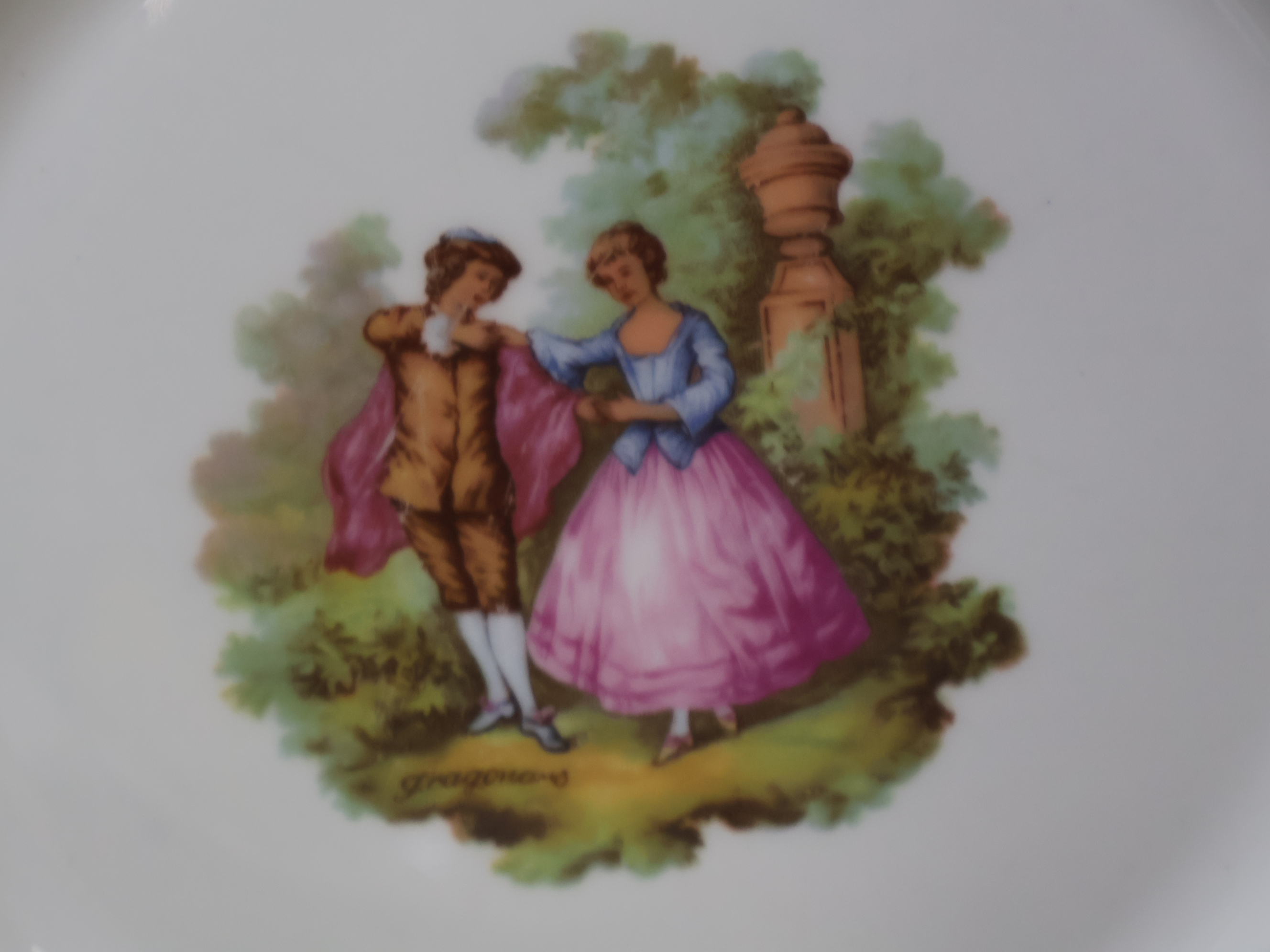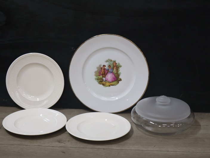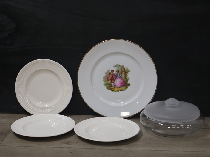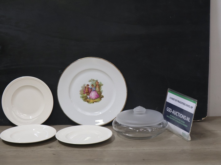 Mix van 4 Porseleinen Borden & 1 Glazen Koektrommel''