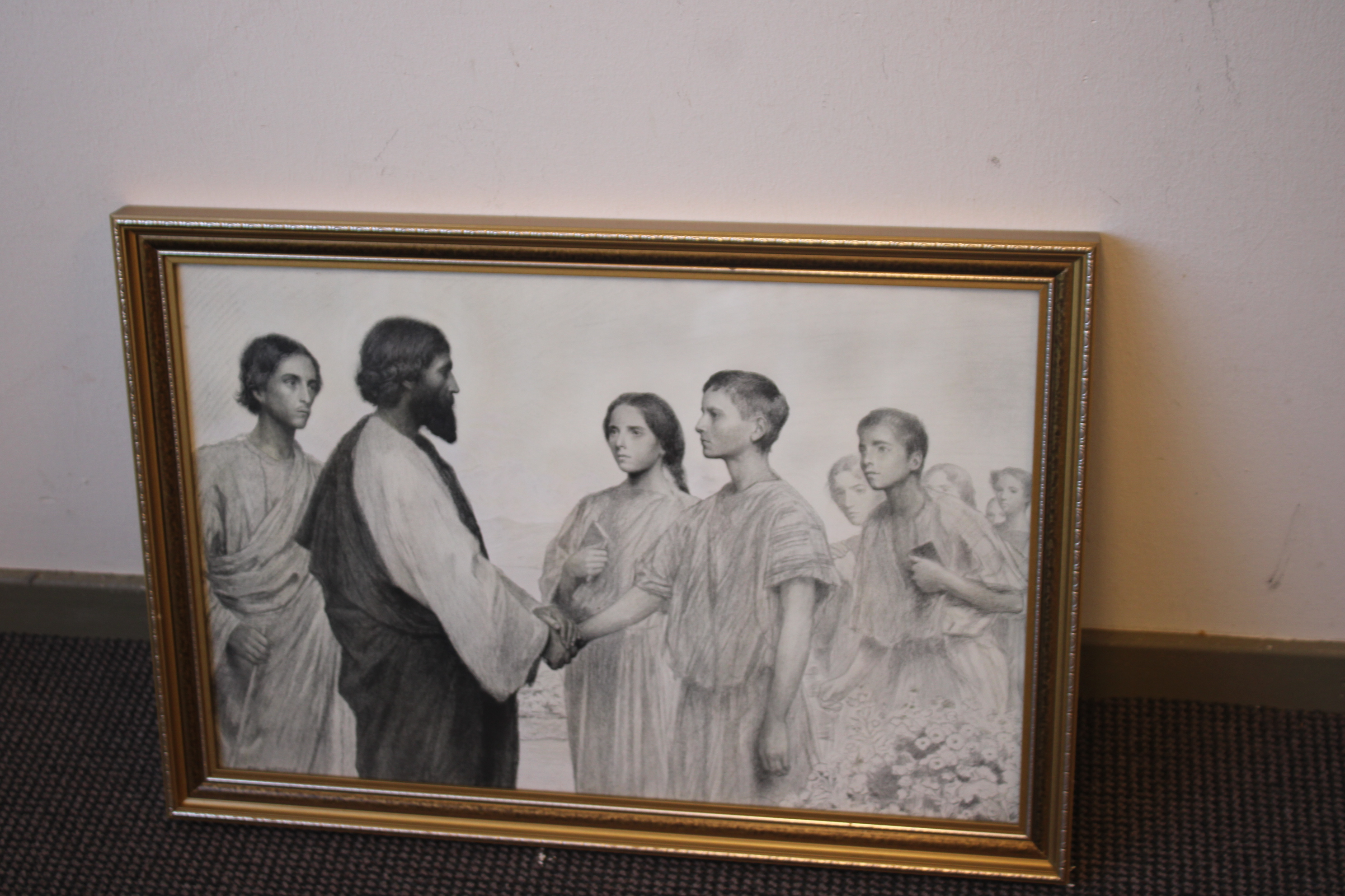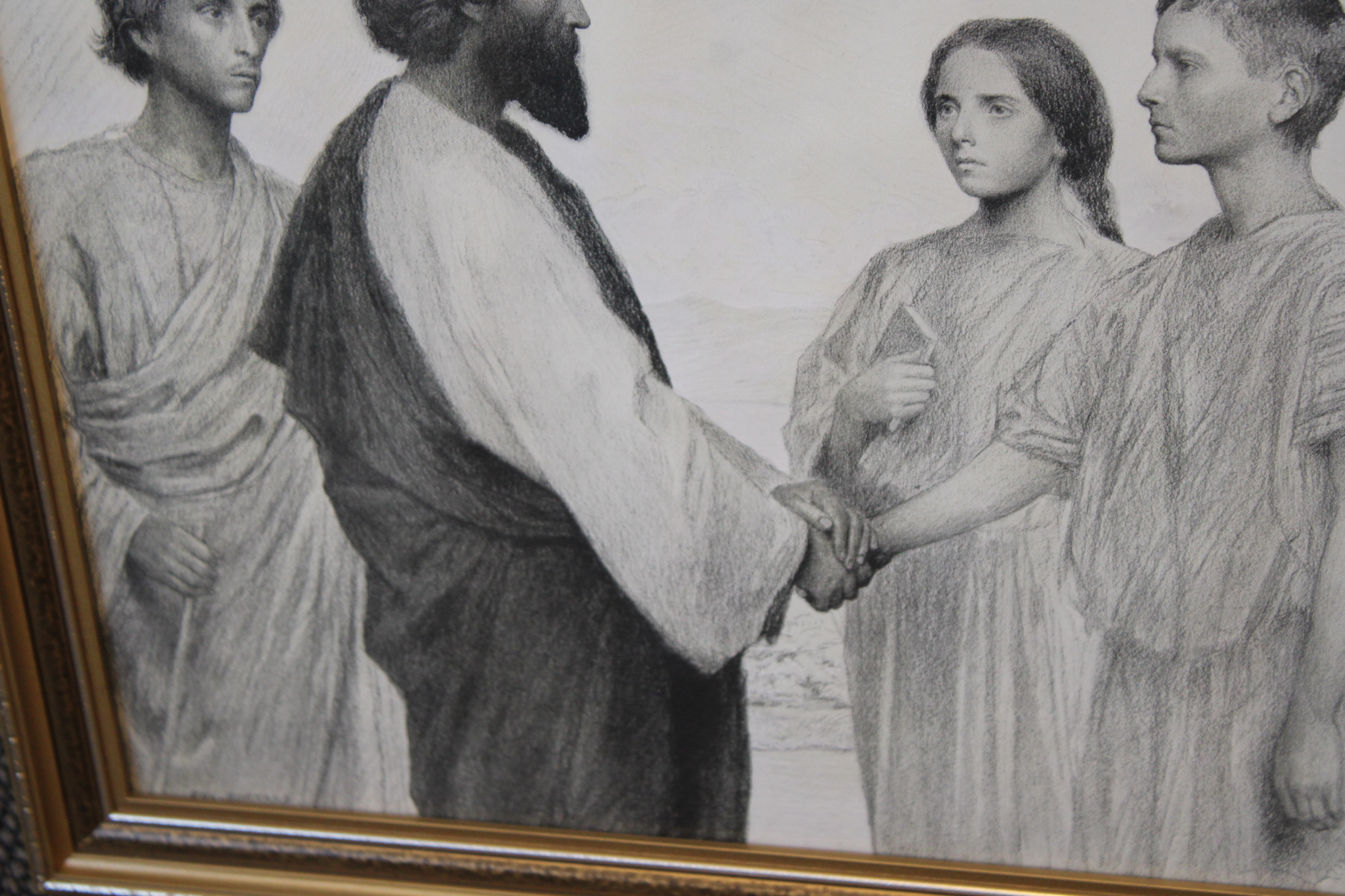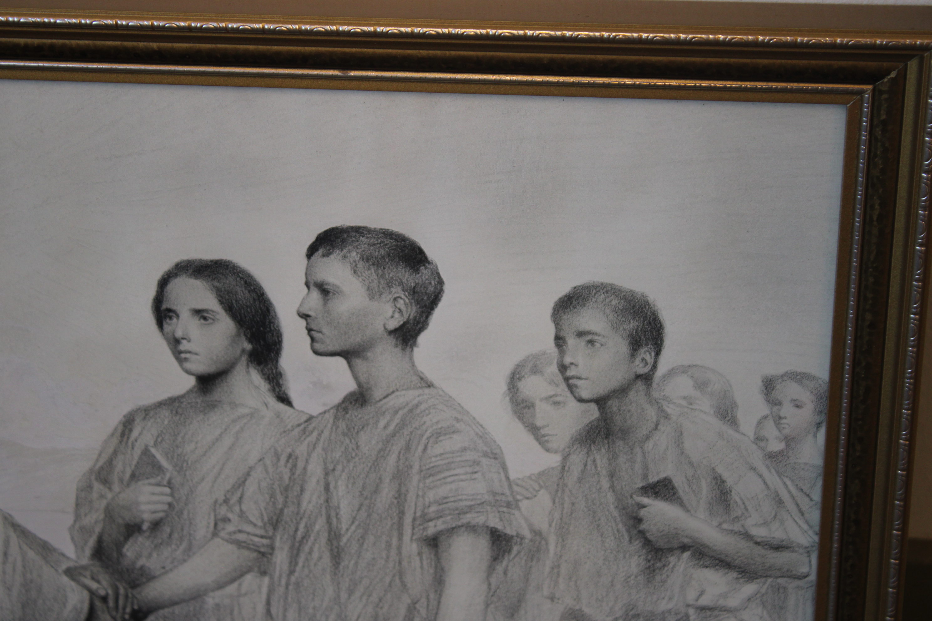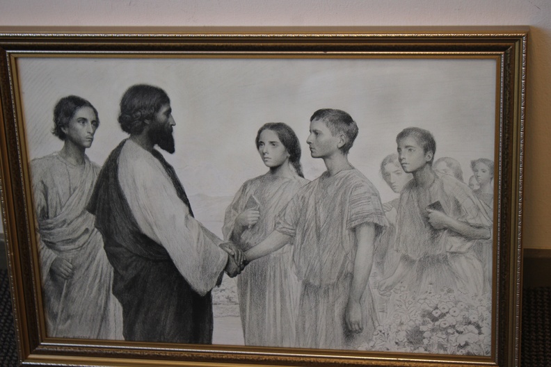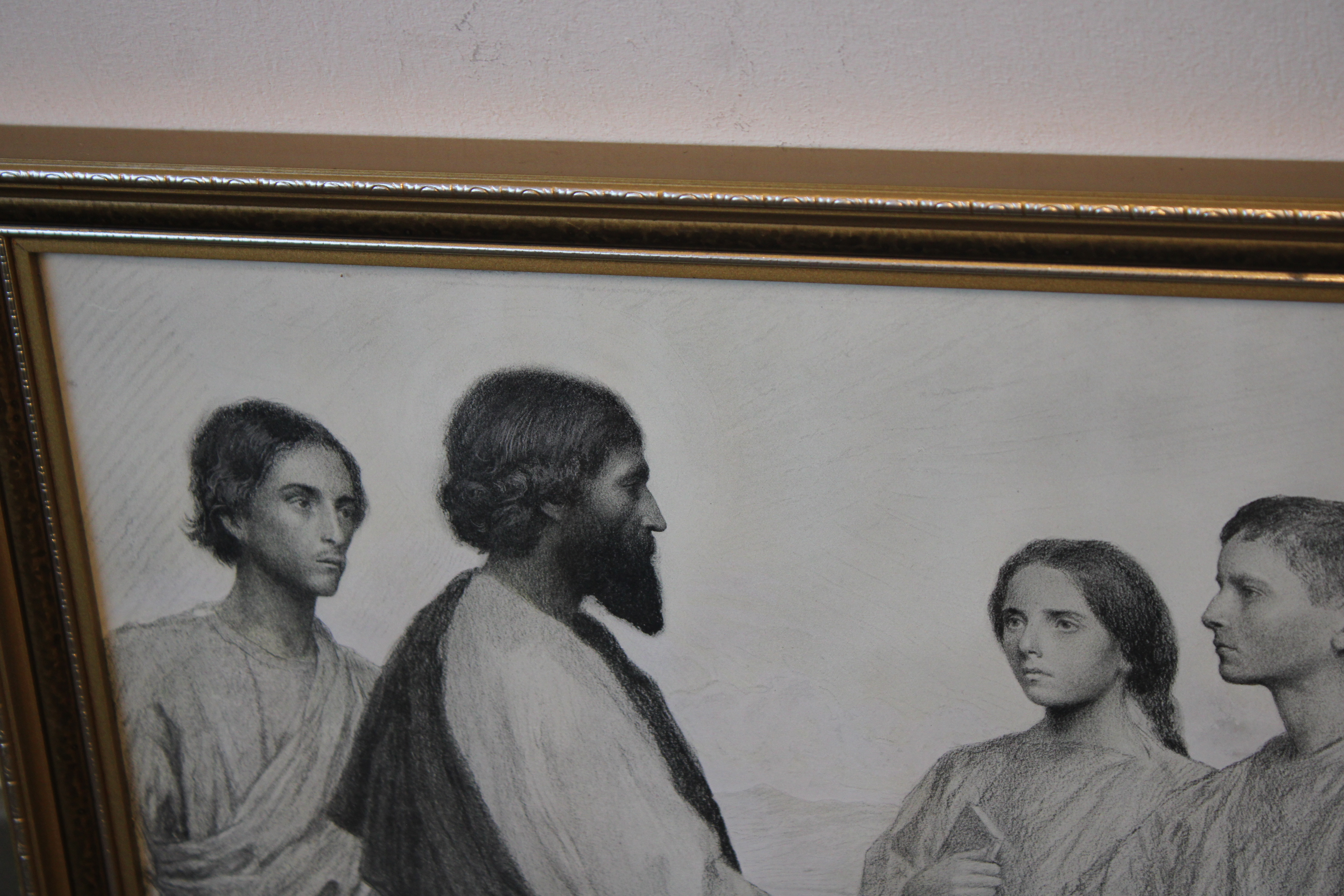 Discipelen met hun Leider. Uit 1915. Mooie ingelijste prent, in goede staat. Eugène Burnand (1850-1921), was een Zwitserse artiest. Ene Hans heeft deze prent cadeau gekregen in 1934 ter herinnering aan zijn belijdenis.
