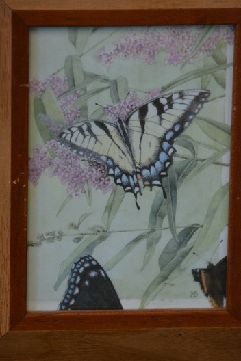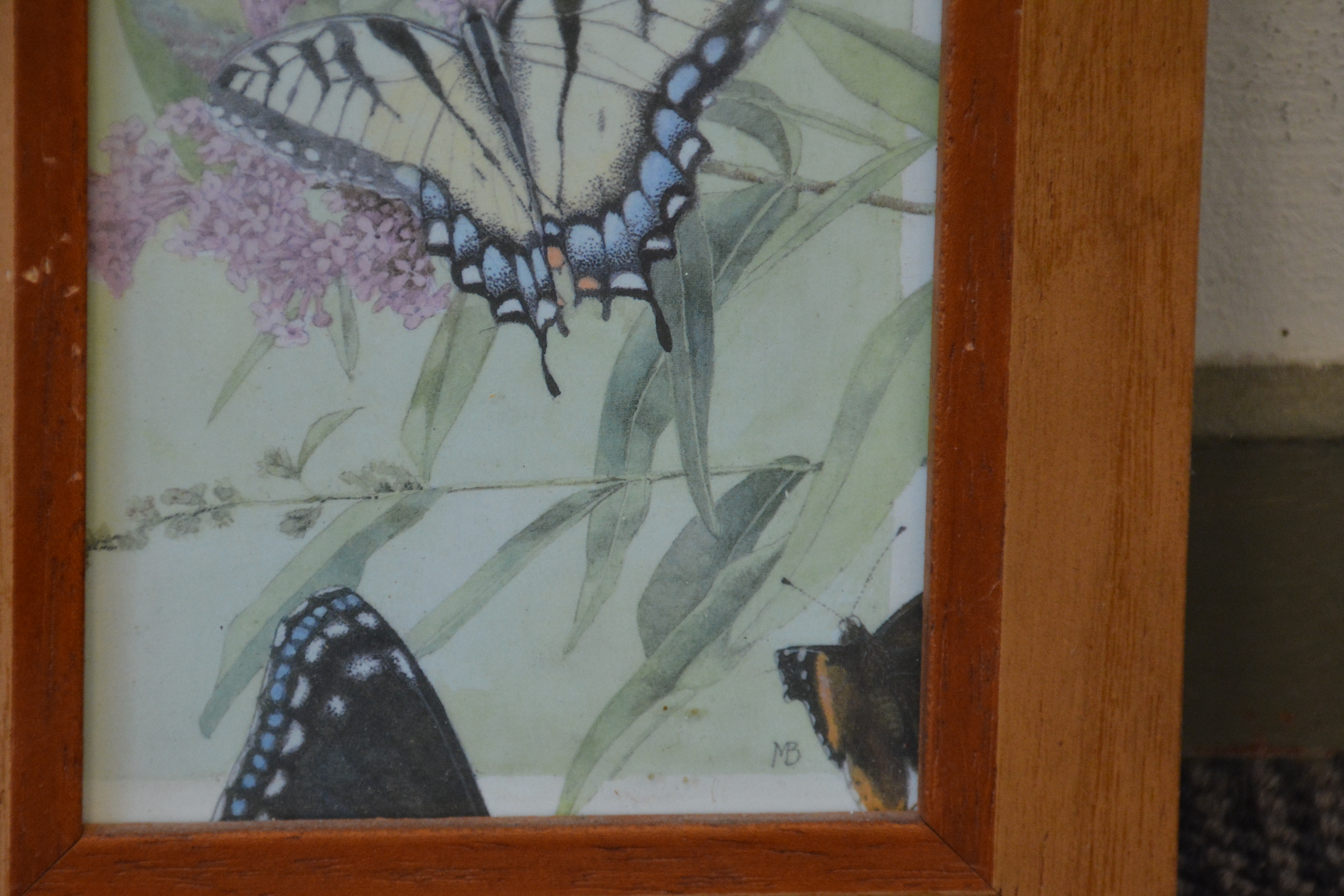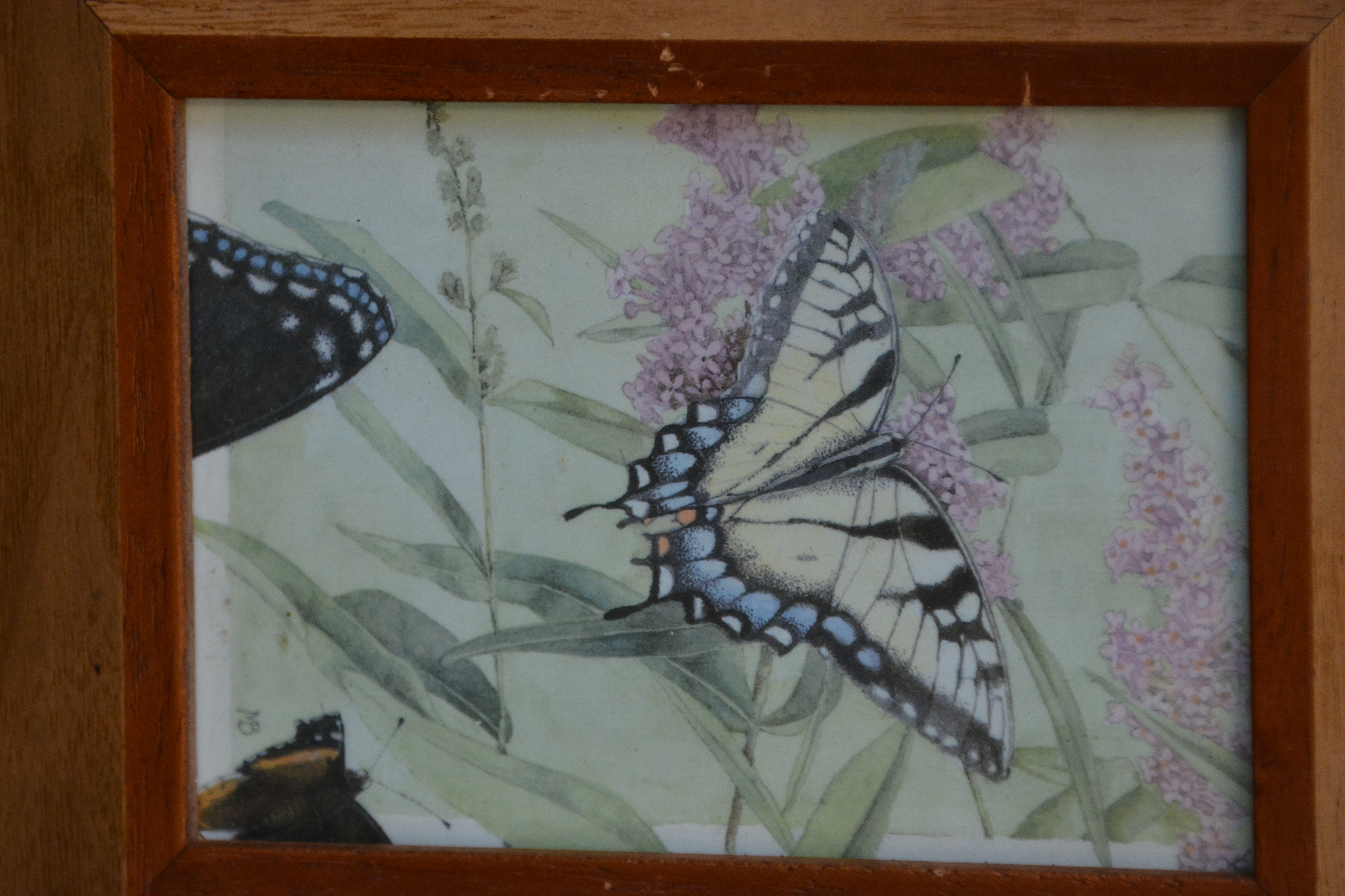 Ingelijste prentbriefkaart: Vlinders, door M.B.''