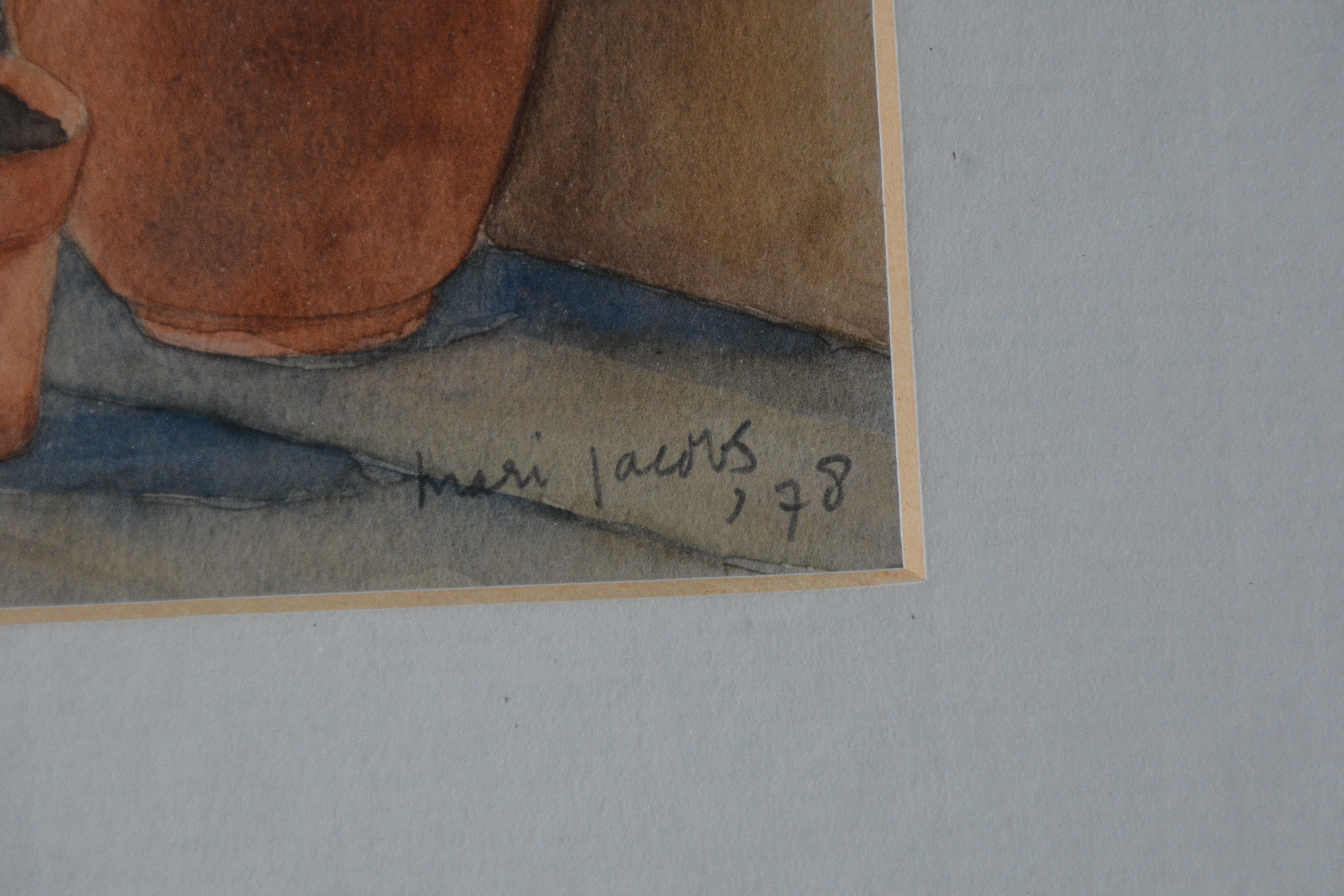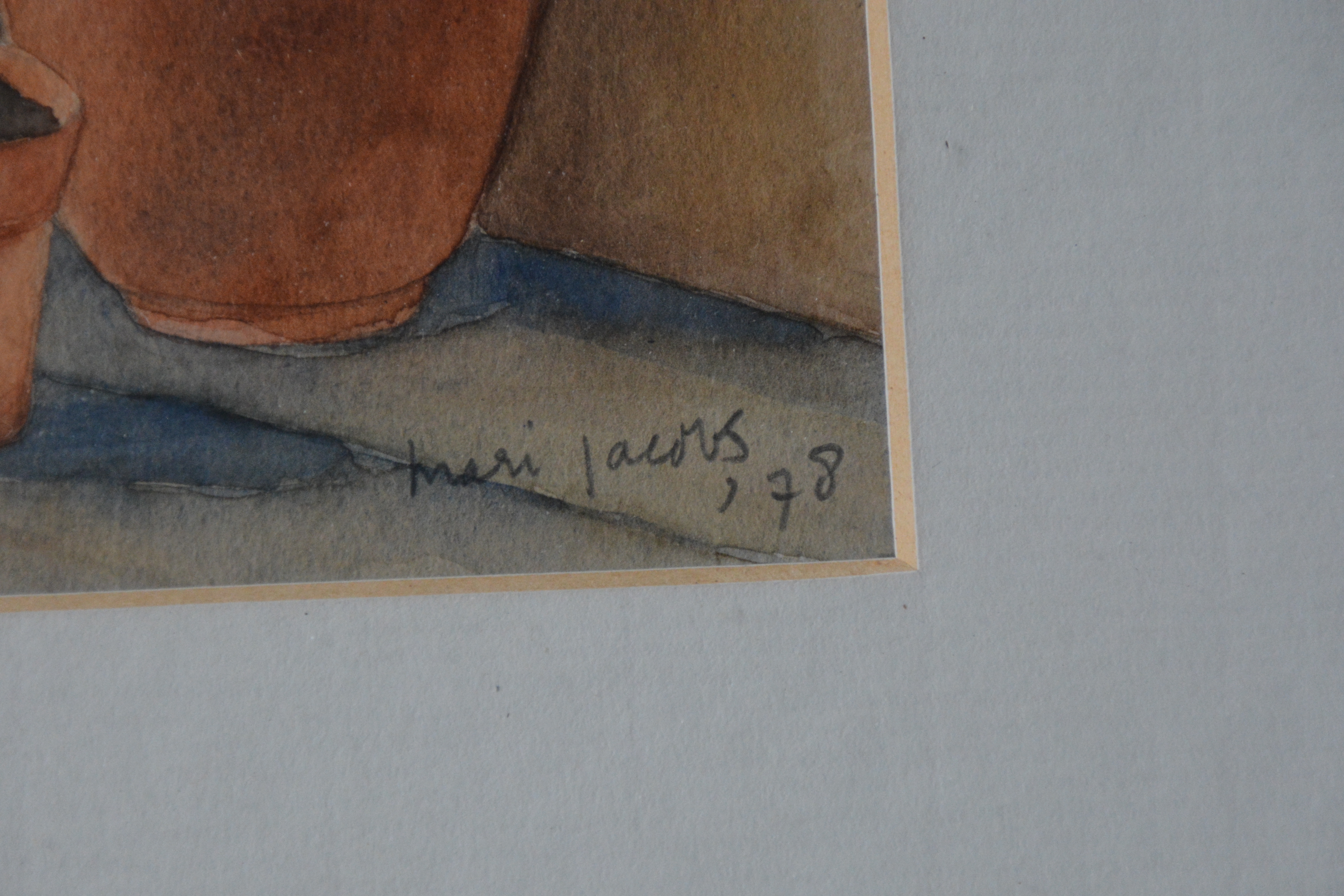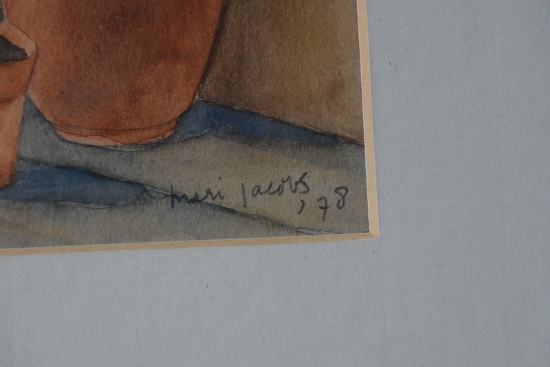 Ingelijste aquarel van Mari Jacobs. Uit 1978. In goede staat.