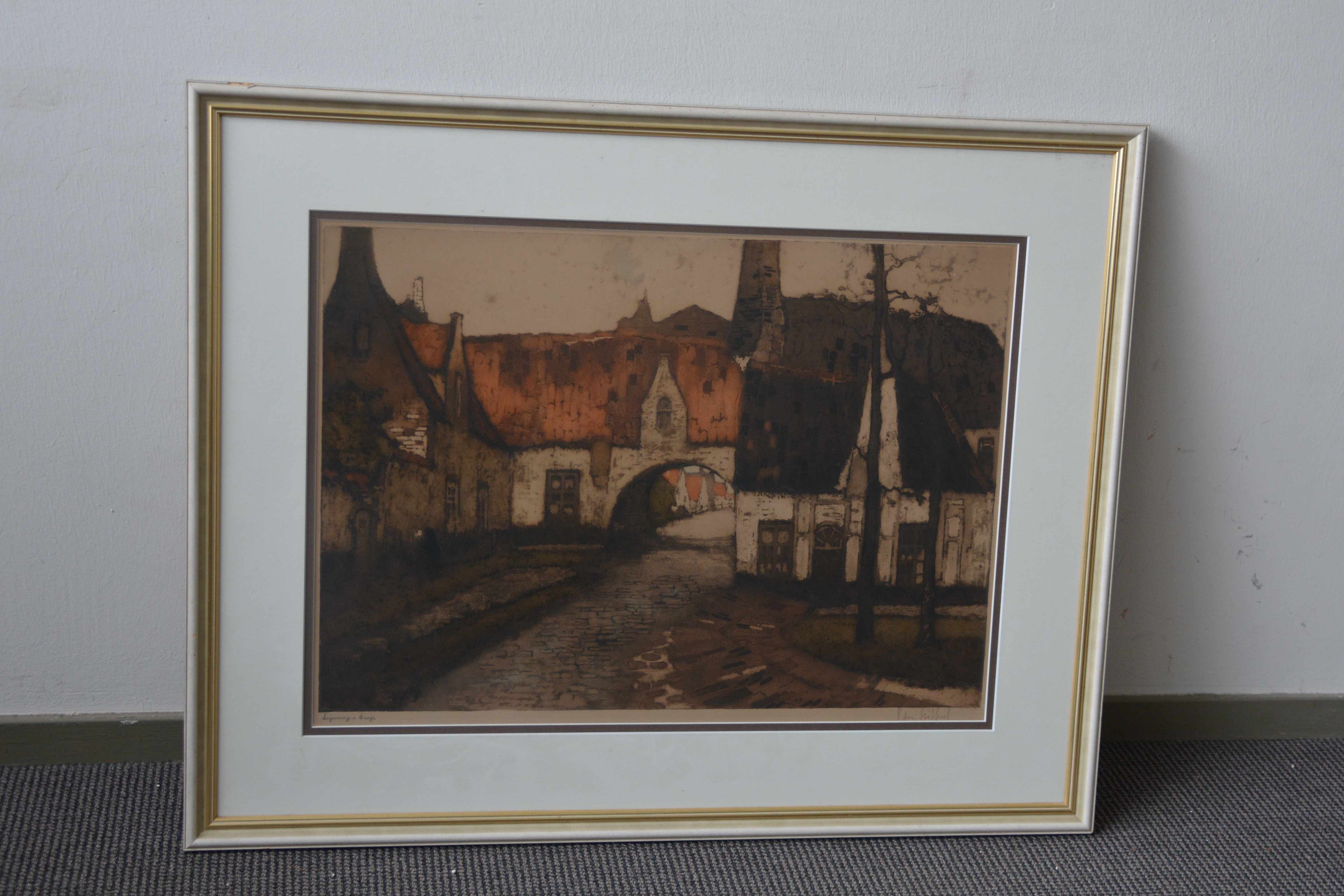 Ingelijste litho: Bageinhof te Brugge v A. van Neste