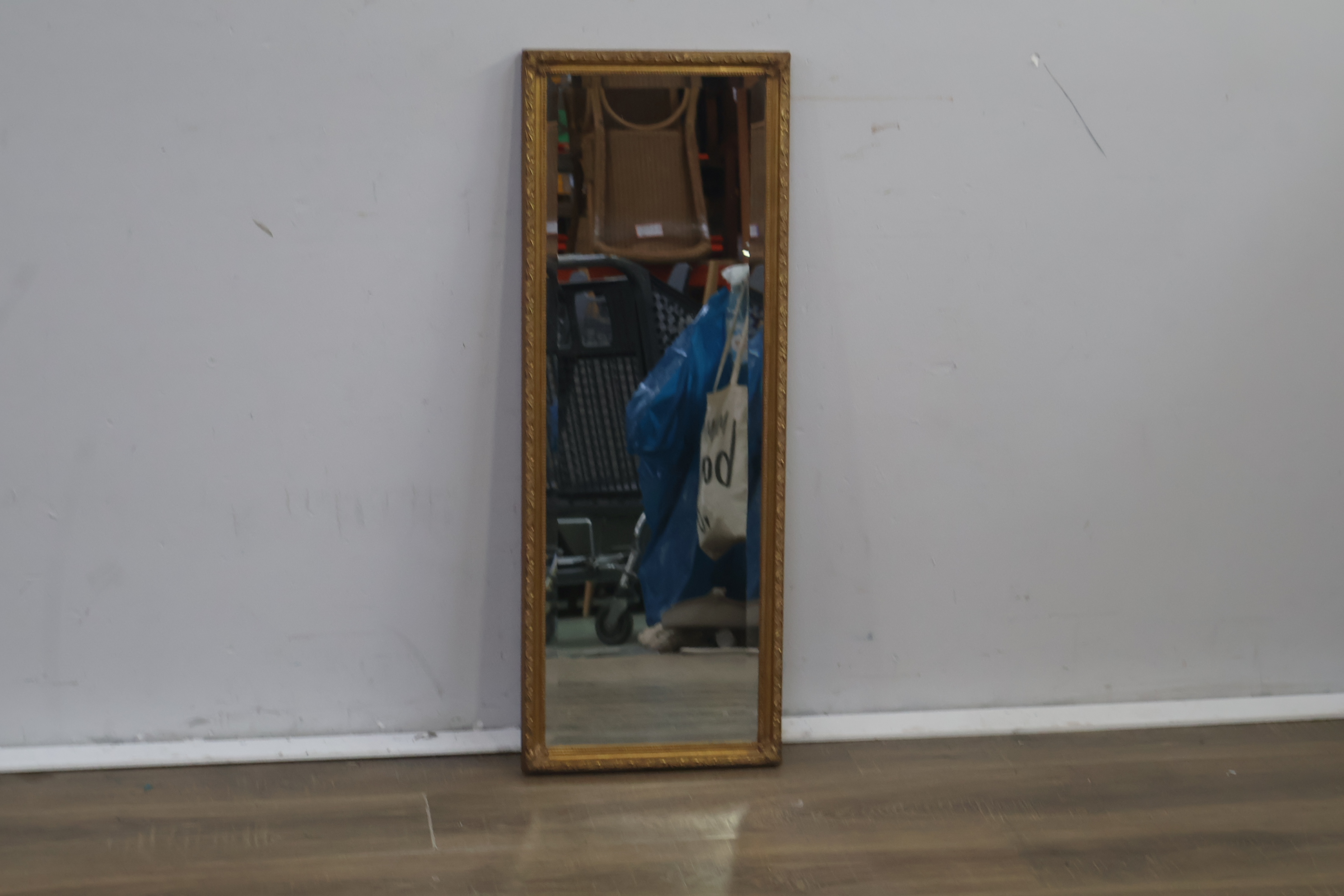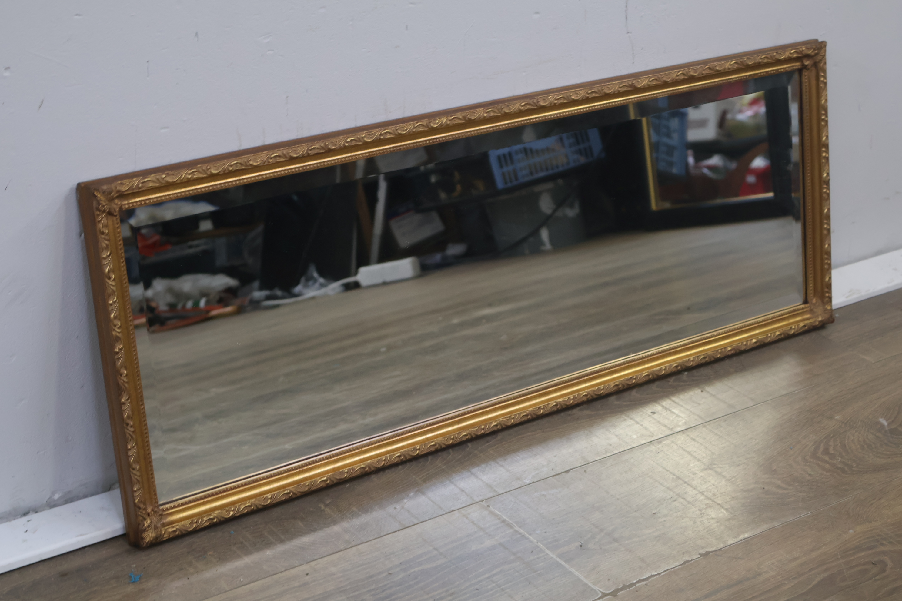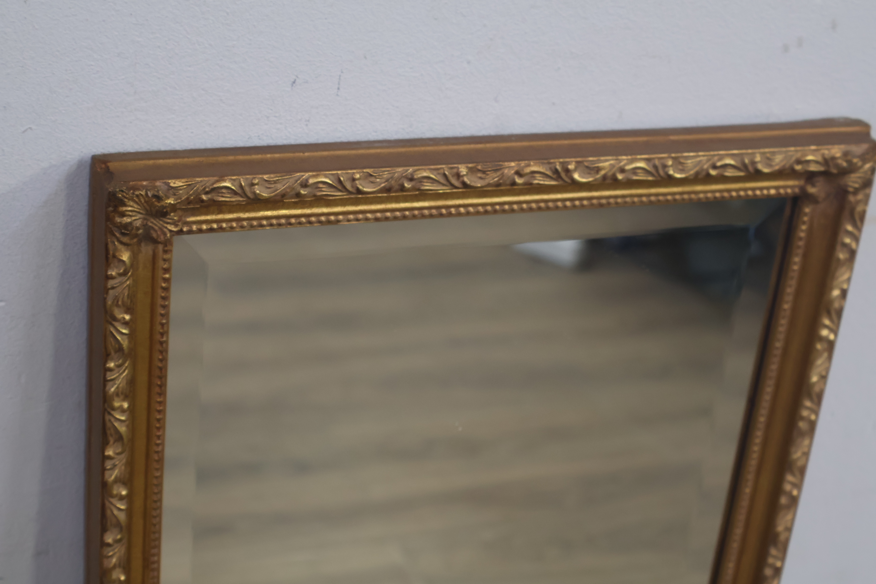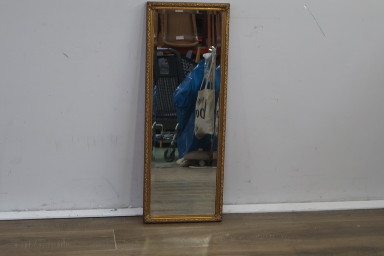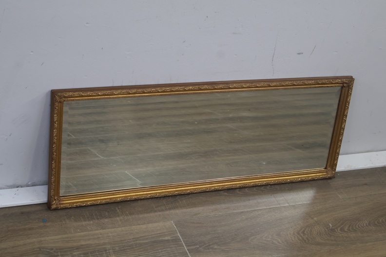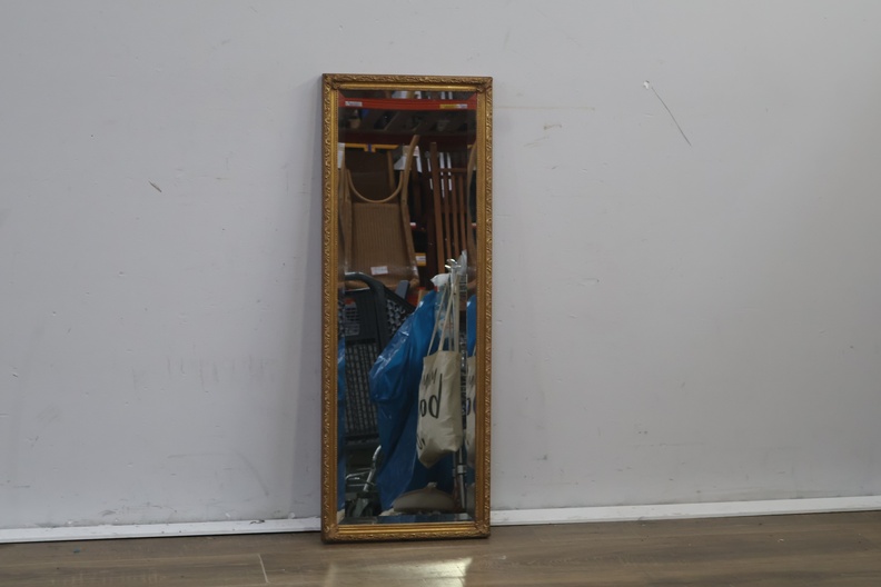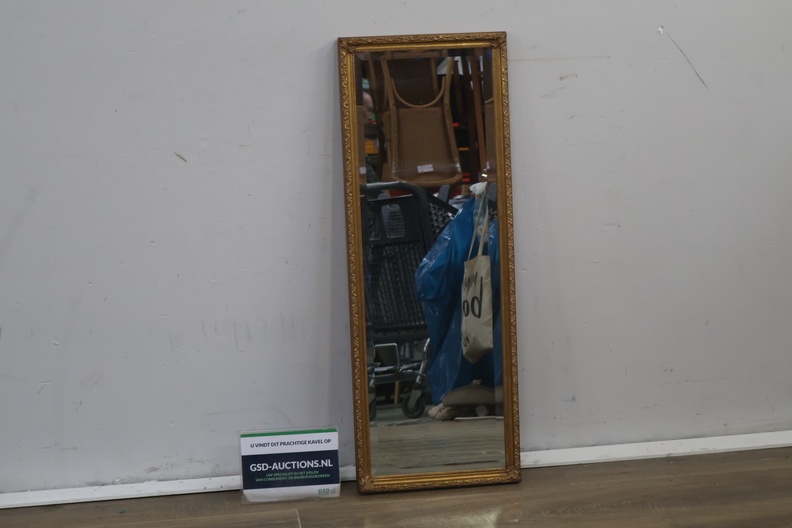 Brocante rechthoekige spiegel met gouden lijst