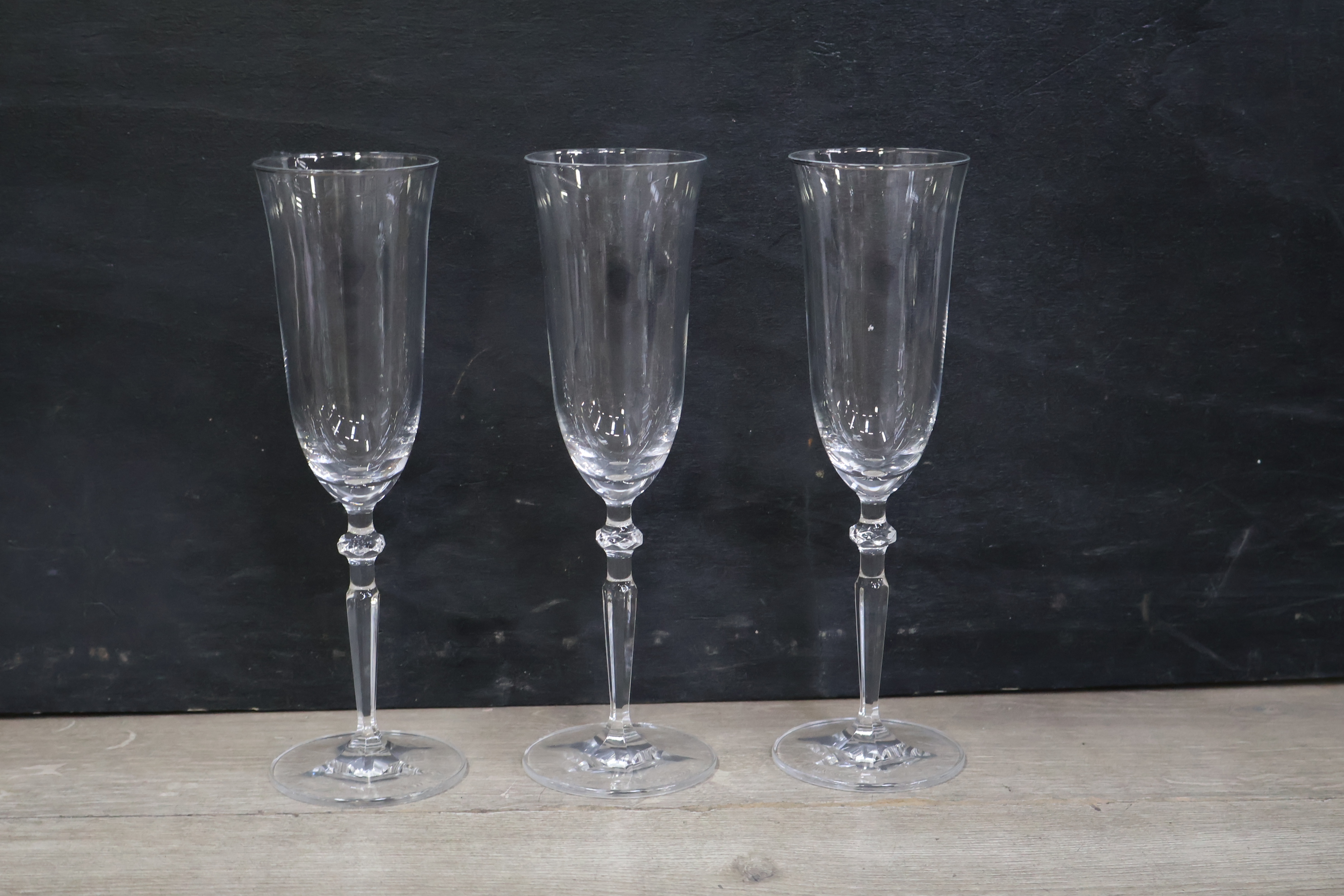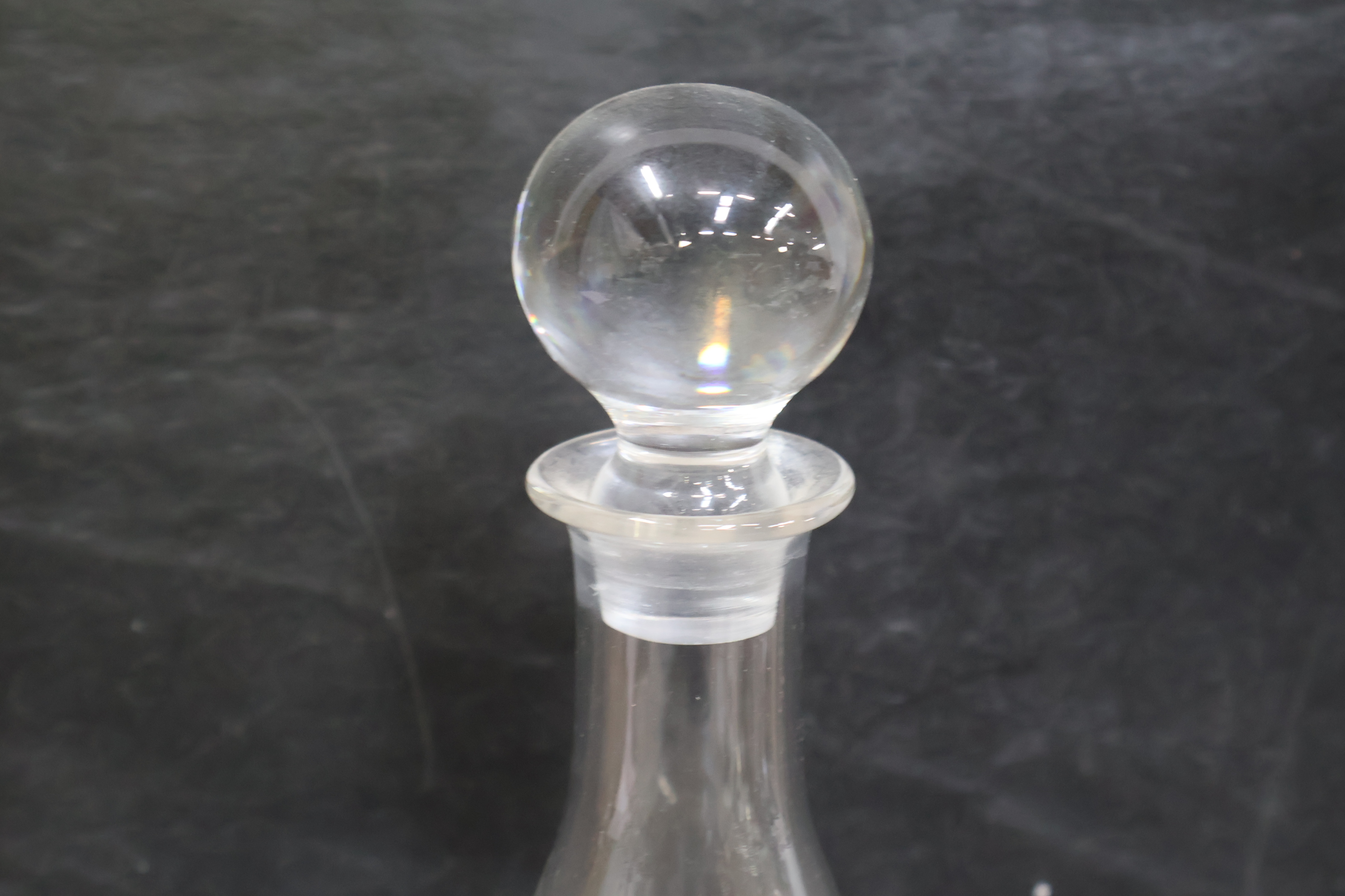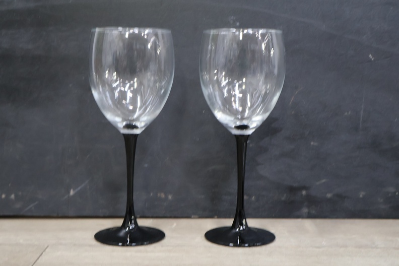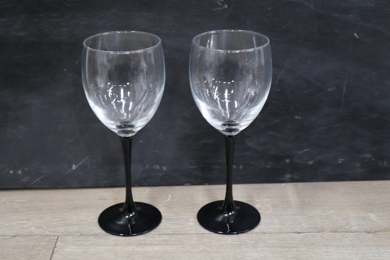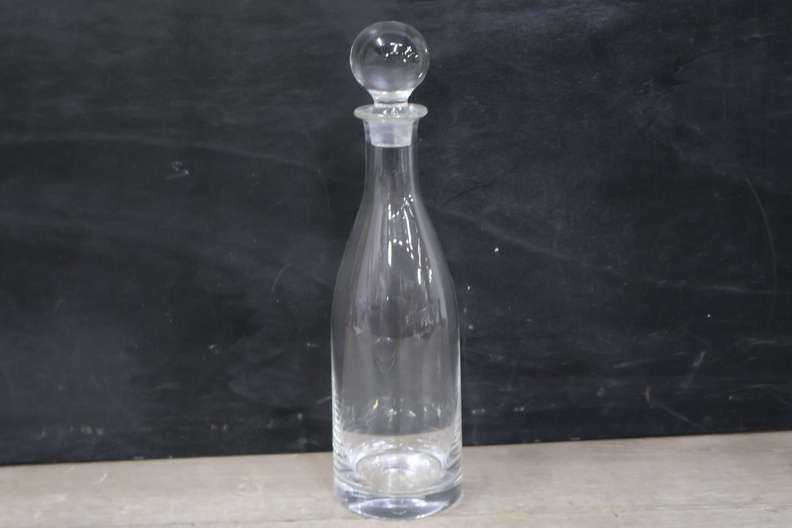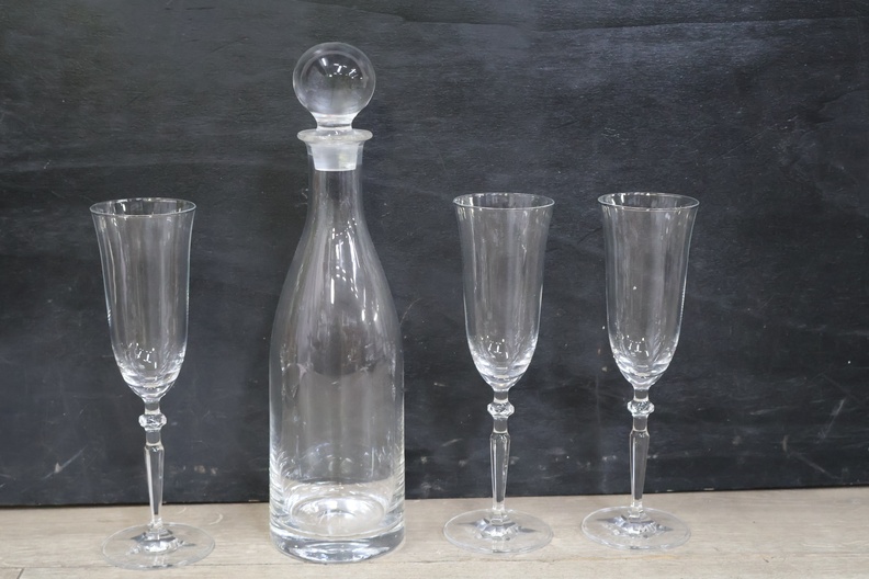 Glazen karaf met 5 wijnglazen op een dienblad'