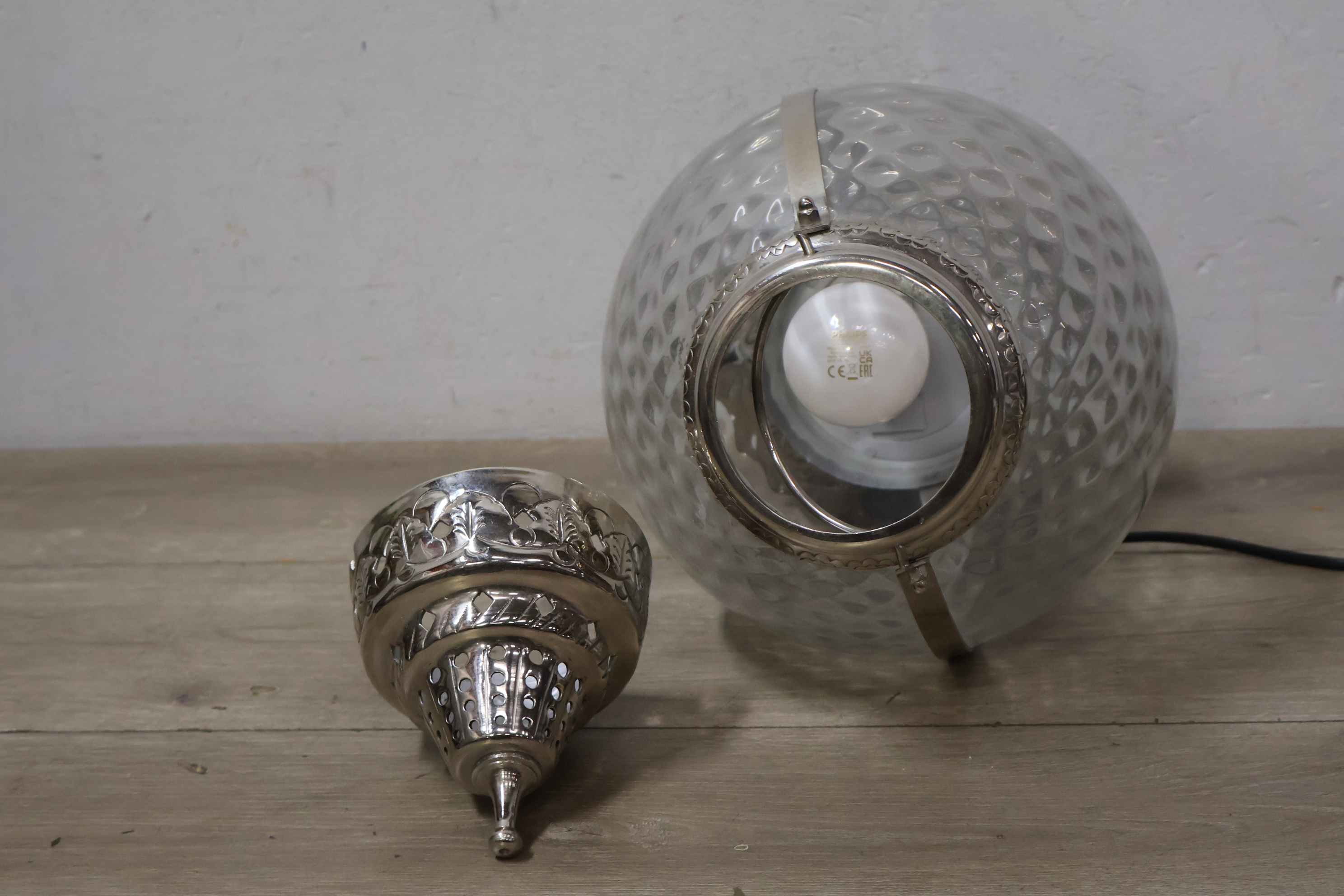 Marokkaanse tafellamp van metaal en glas