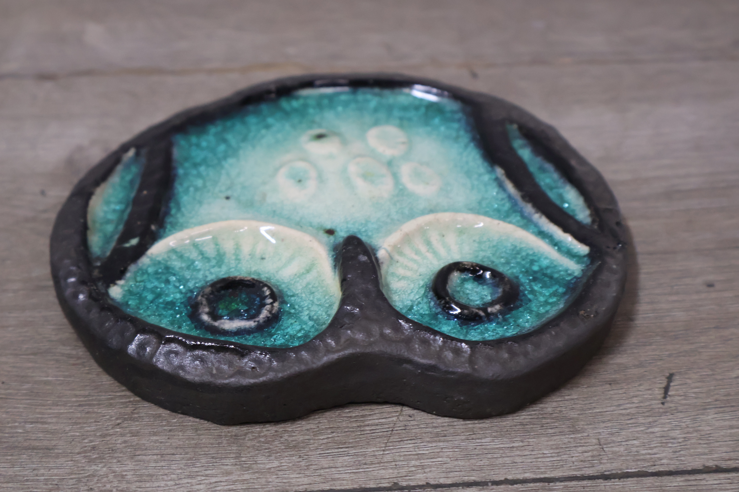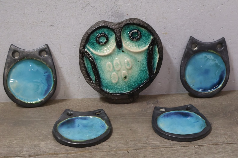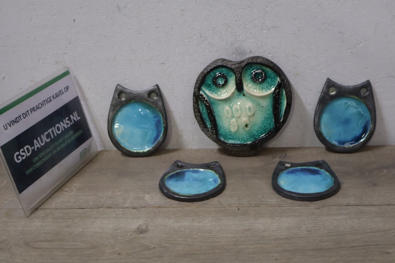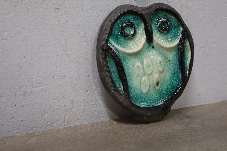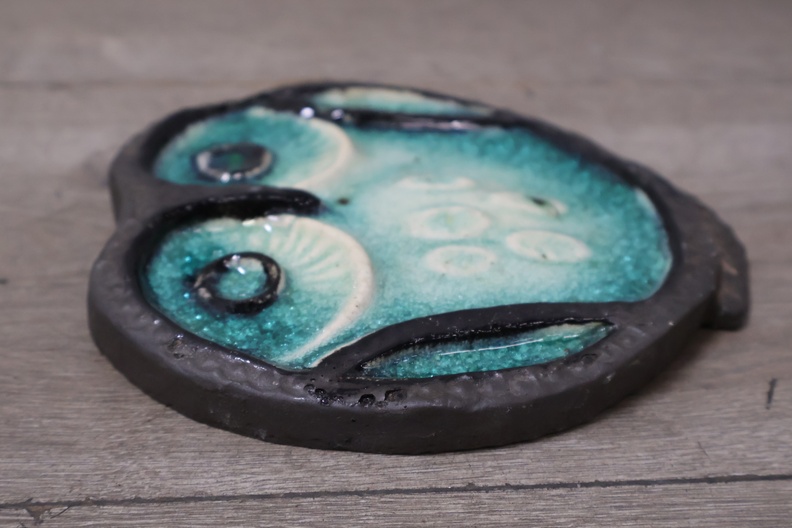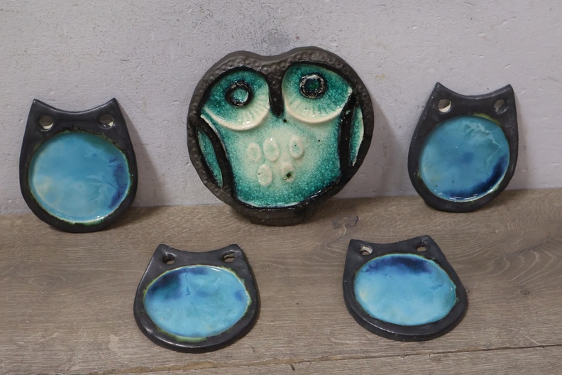 Vintage Keramisch Geglazuurde Helmut Uil met 4 Onderzetters