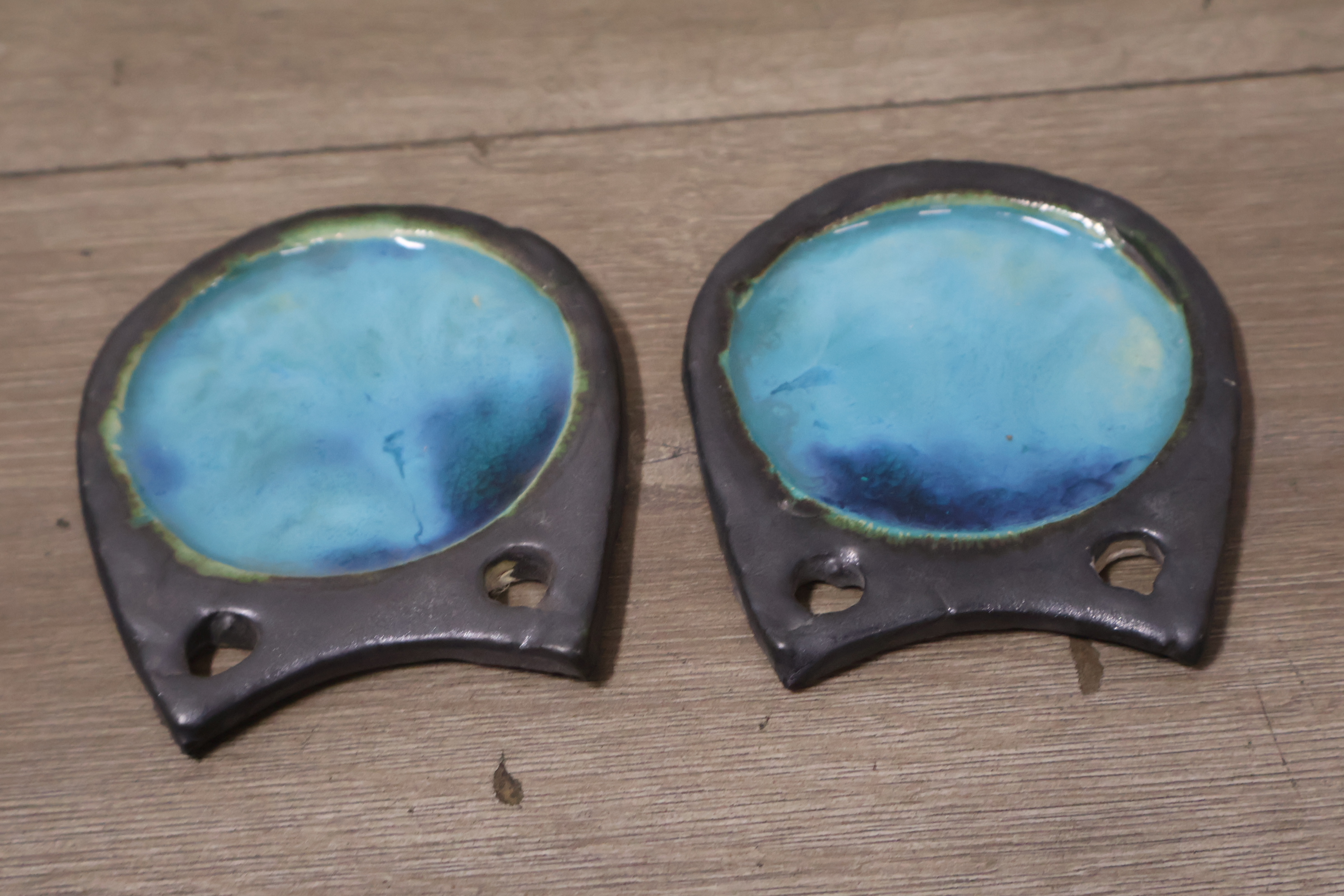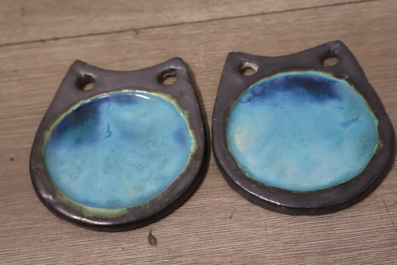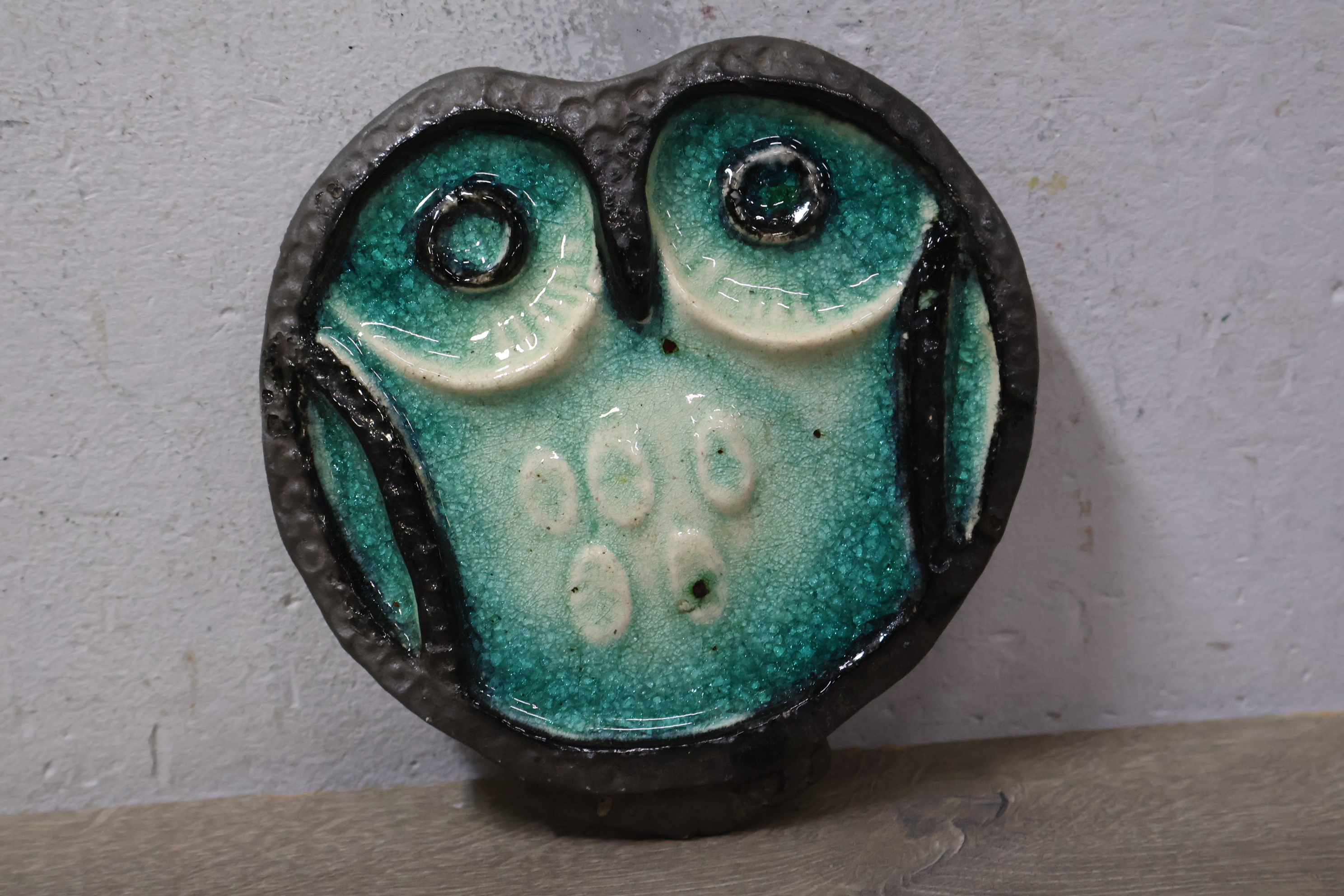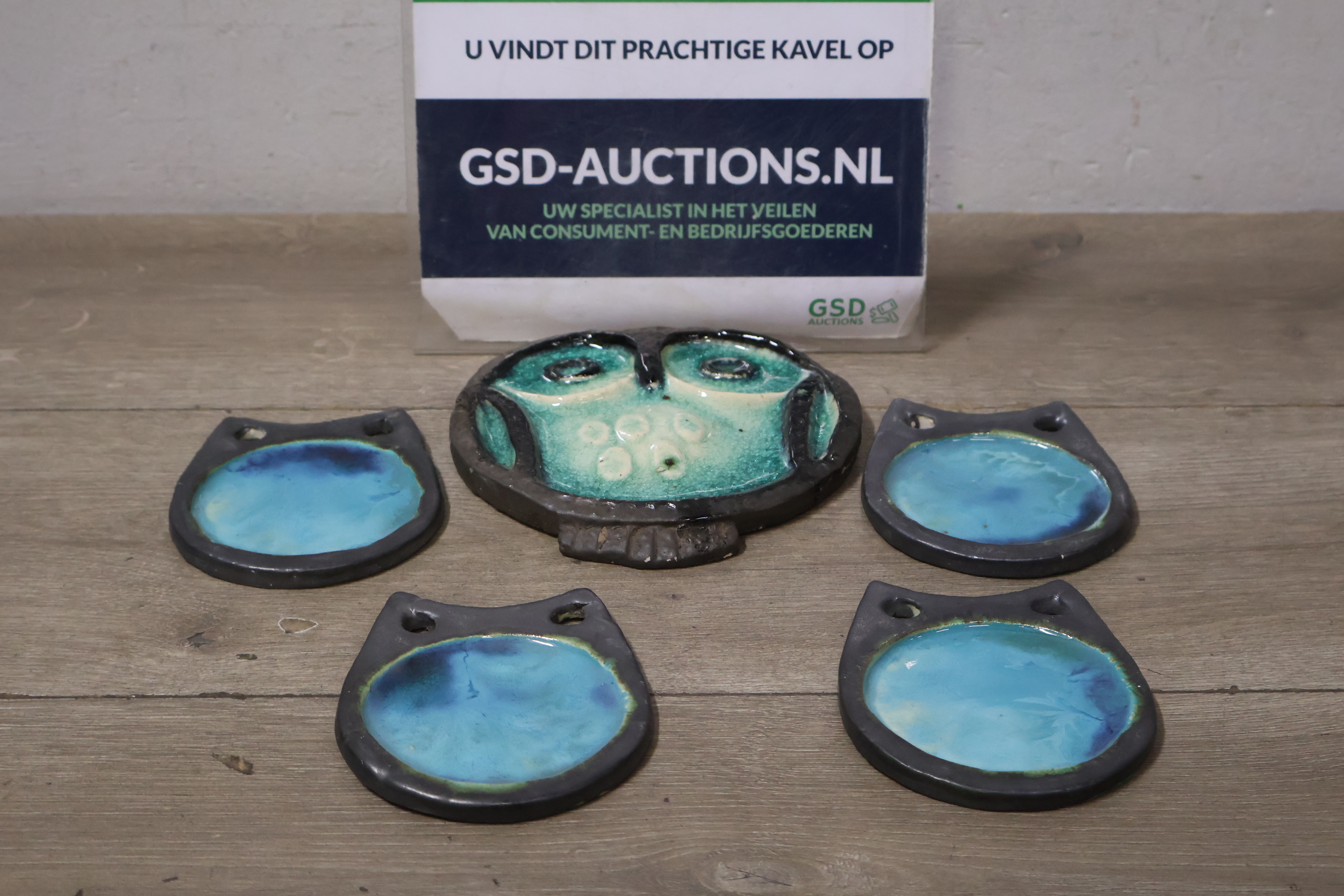 Vintage Keramisch Geglazuurde Helmut Uil met 4 Onderzetters