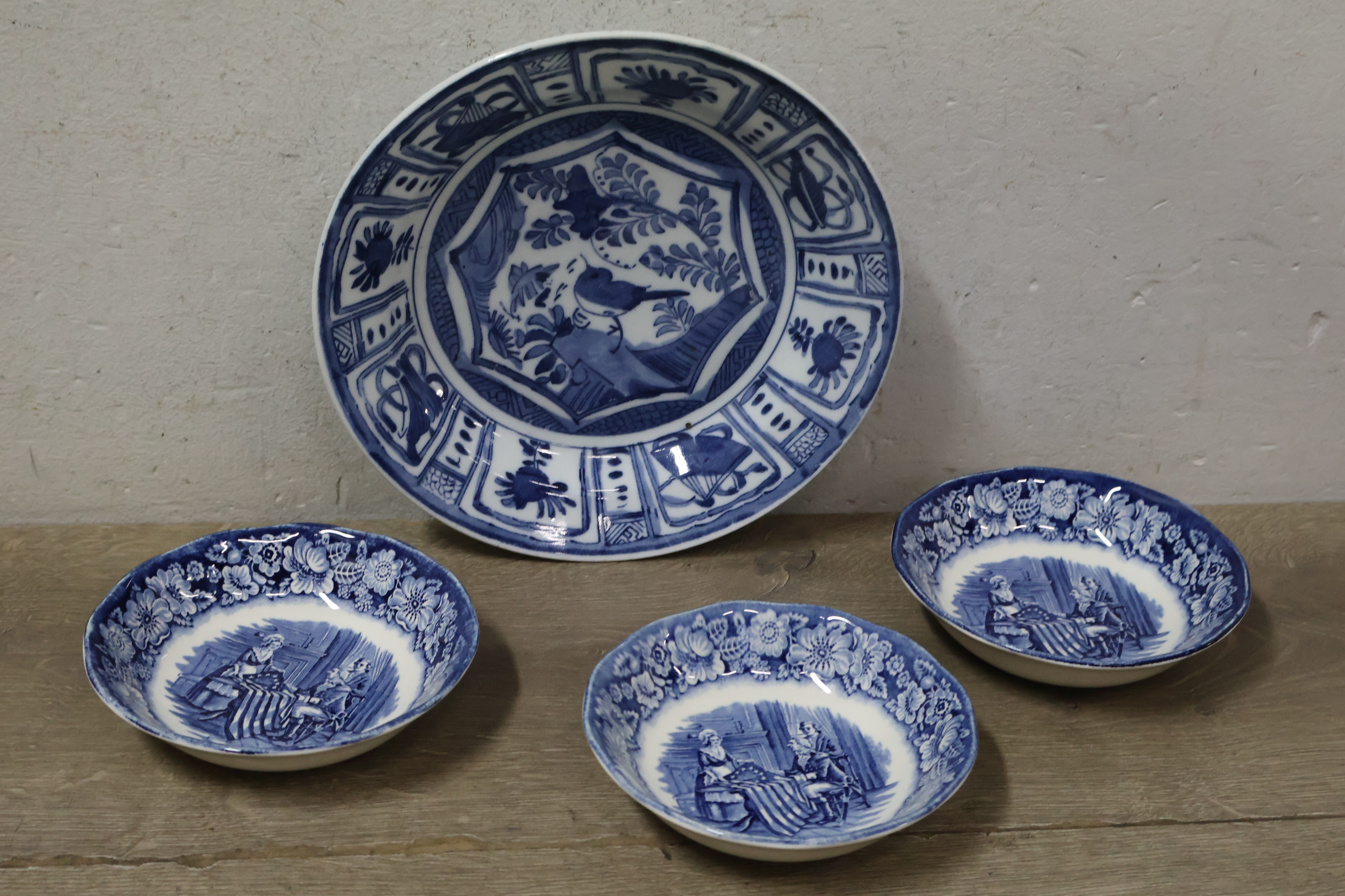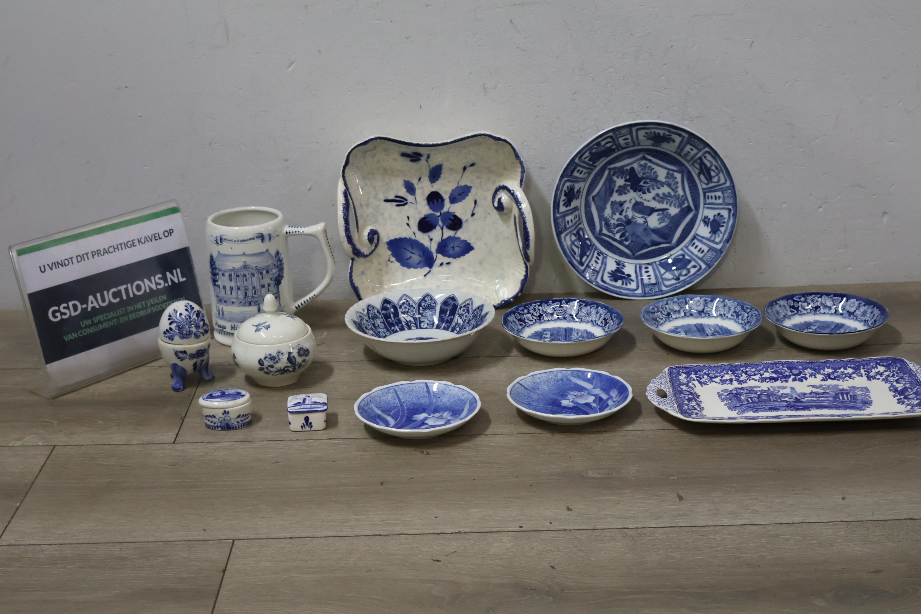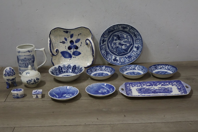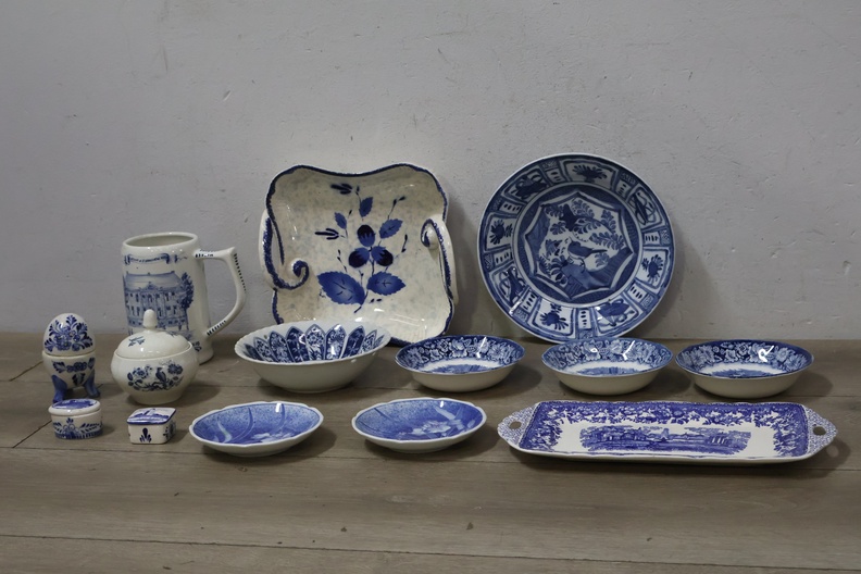 Mix van 14 Stuks Blauw/Wit Porselein